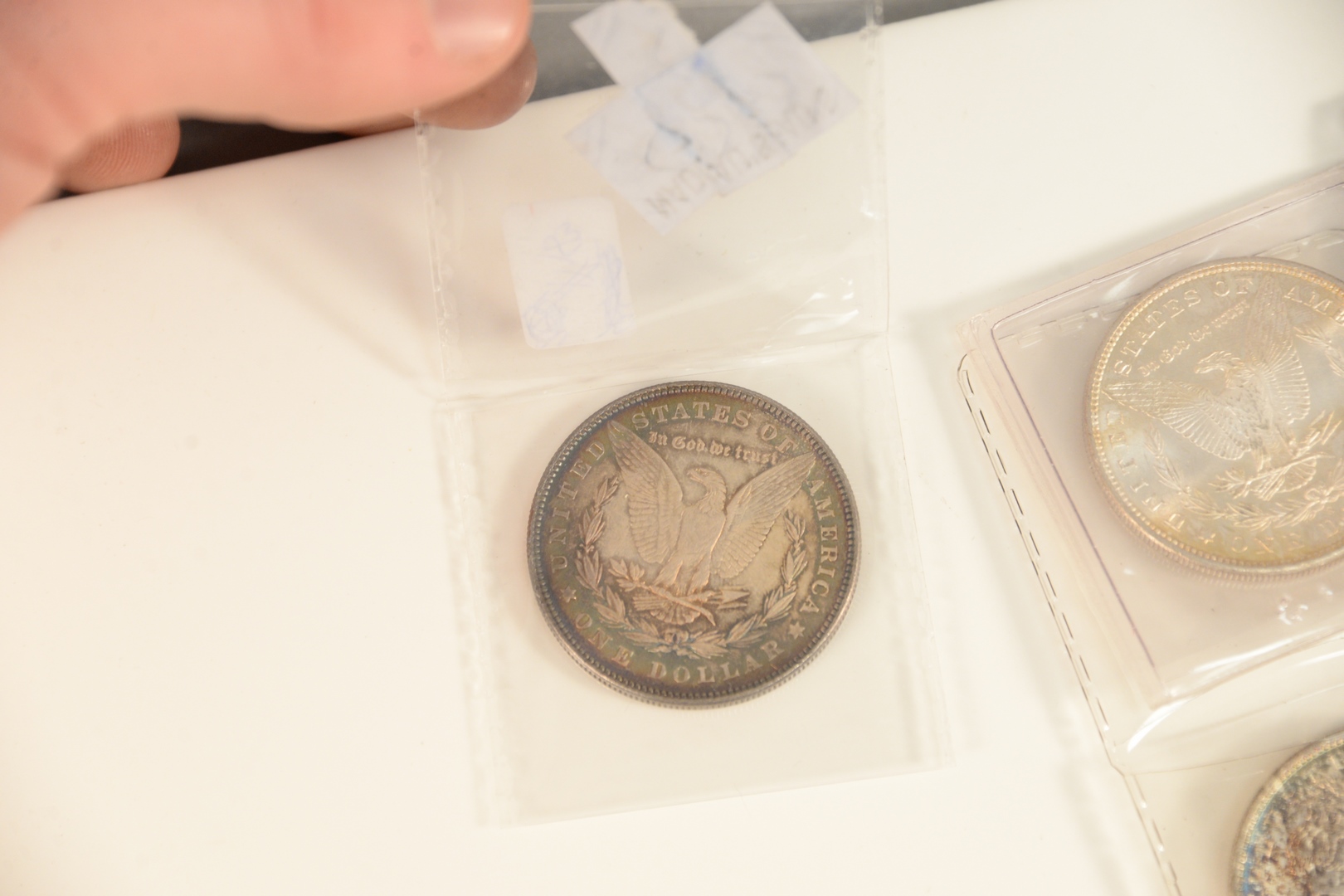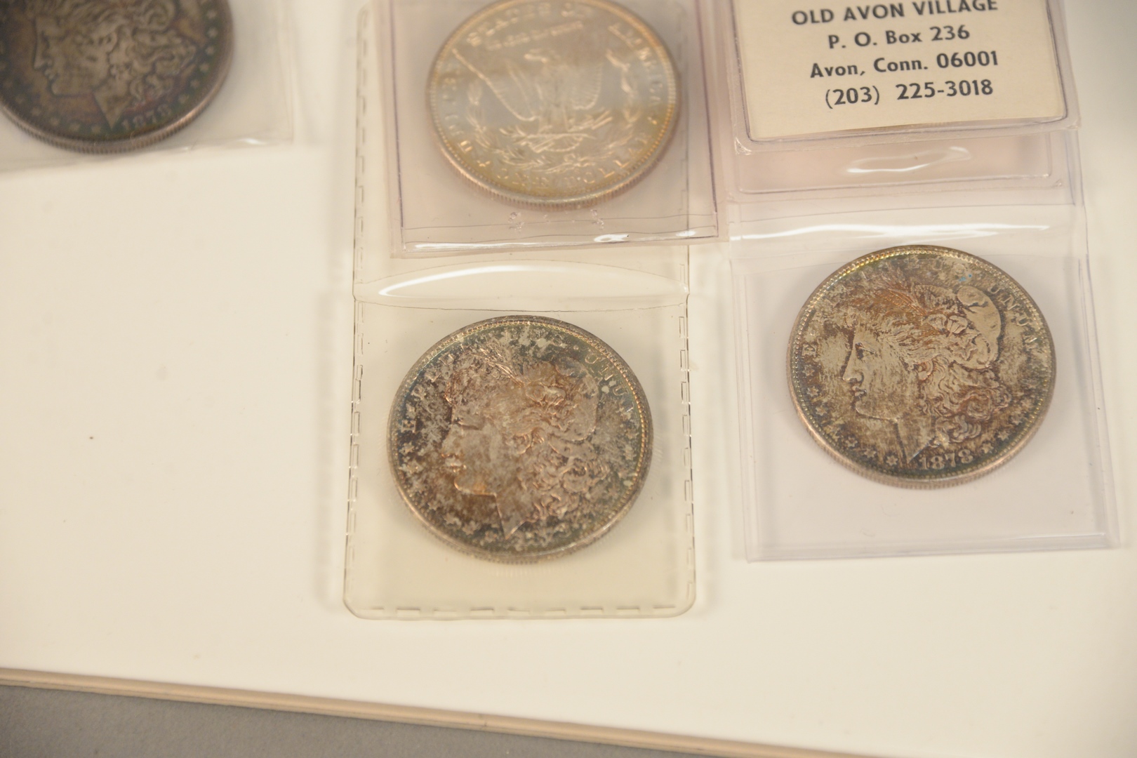 Lot 243: Five silver dollars all choice B.U., 2 – 1878 – S and 2 – 1880 – S, 1878.