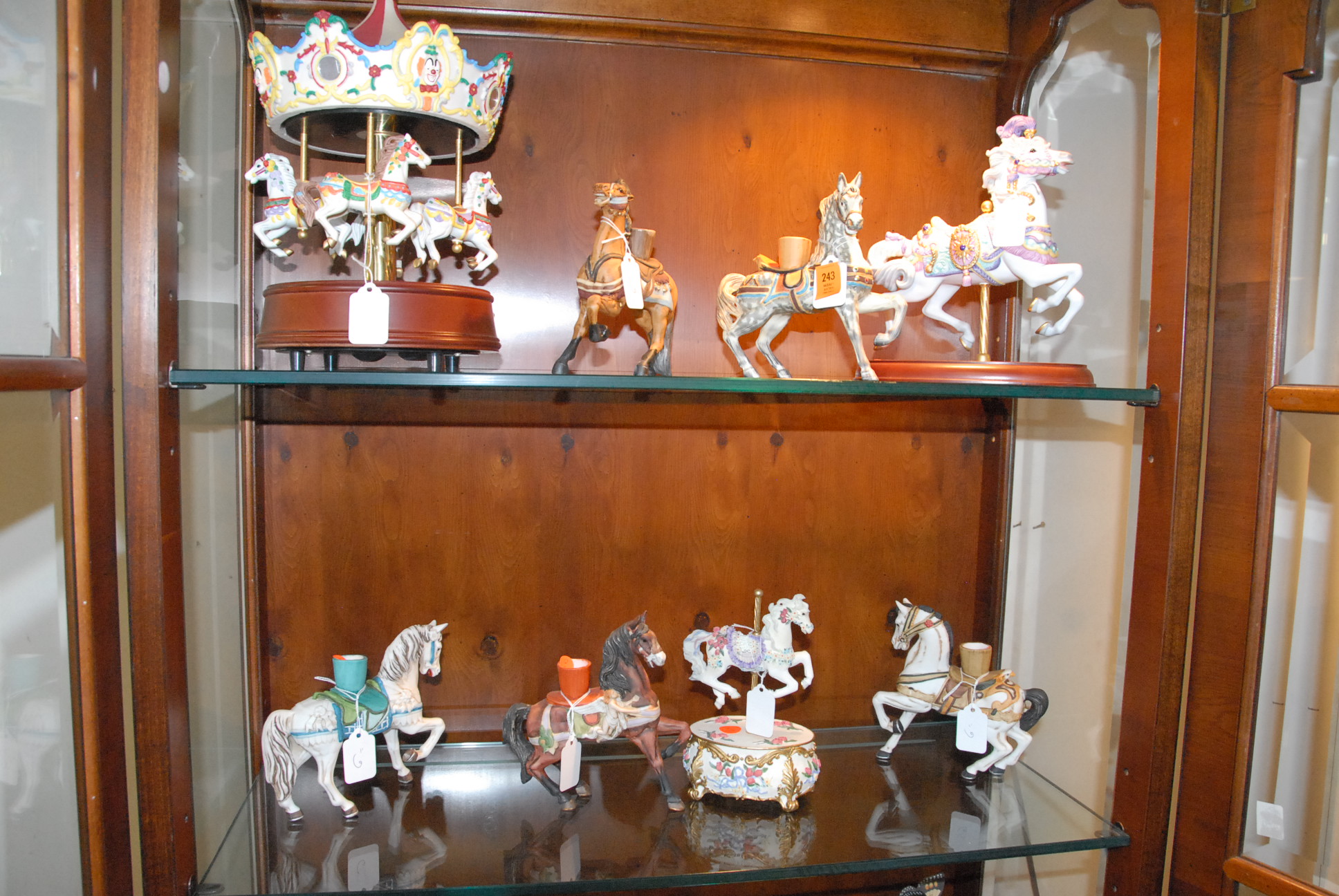 Fourteen carousel style bisque horse figures including one carousel.