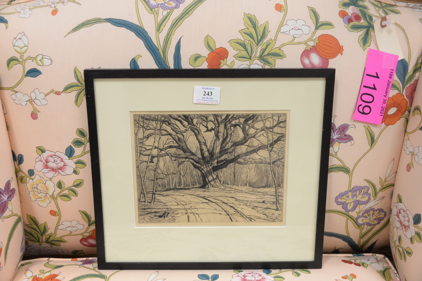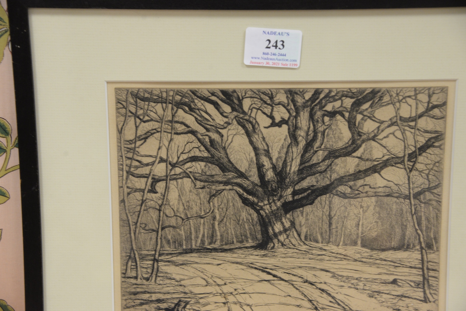 along with unsigned oak tree, sight size: 7 1/4 x 9 1/4