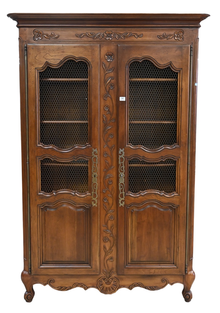 Lot 243: Henredon Contemporary Louis XV Style Cabinet, having molded edge top over pair of grillwork doors, raised on cabriole legs, interior…