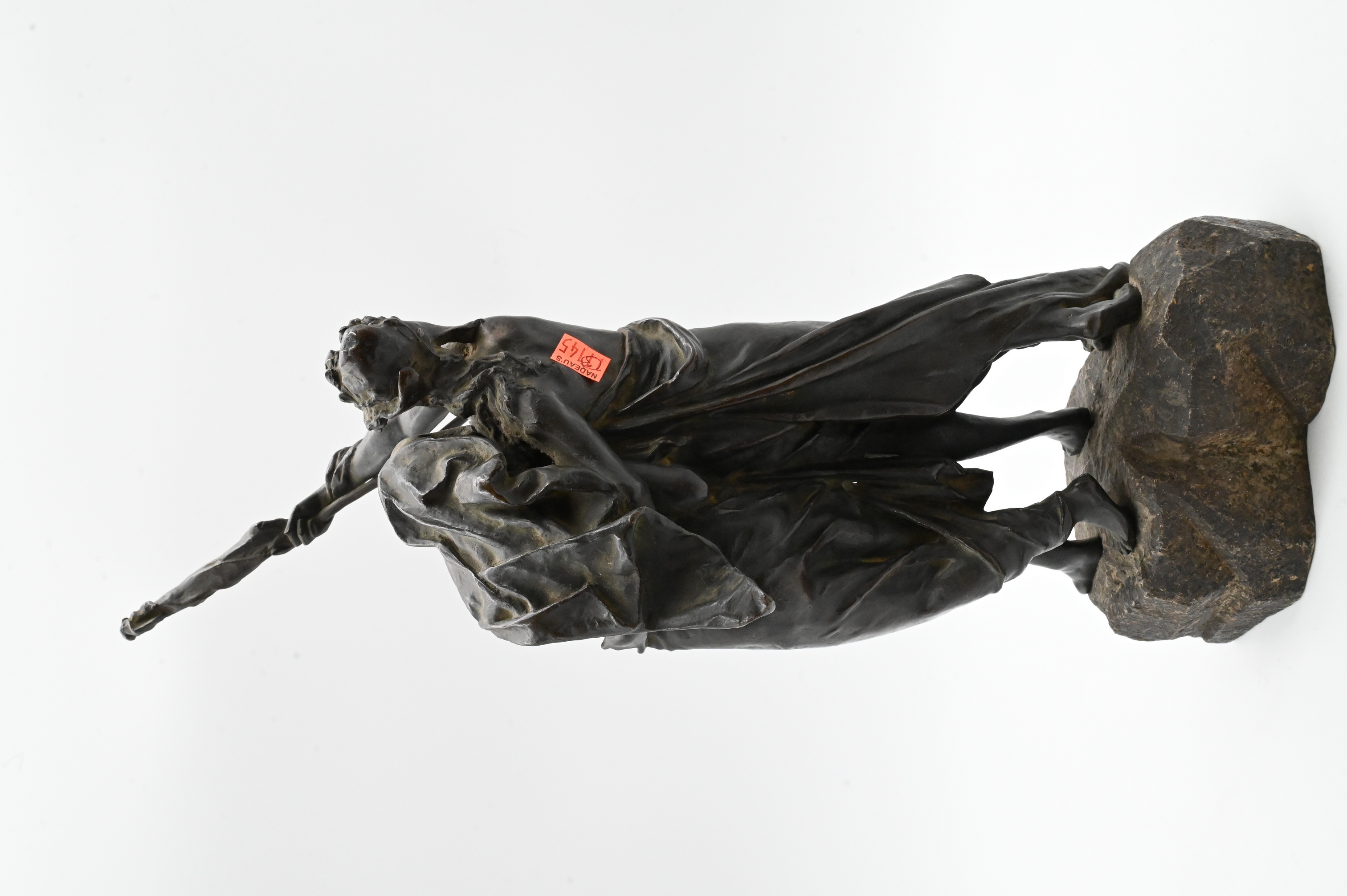 Patinated bronze, set on a naturalistic rocky base bearing a foundry stamp, numbered 91