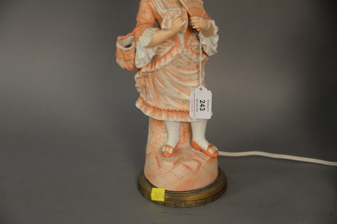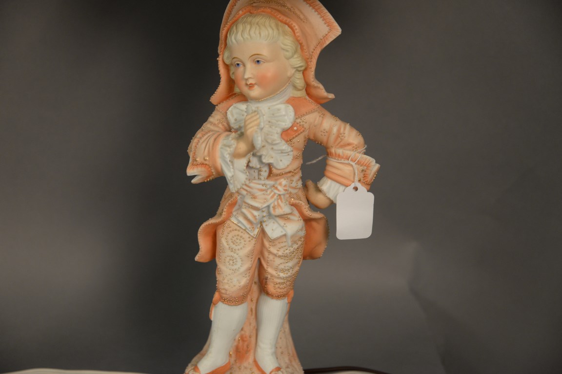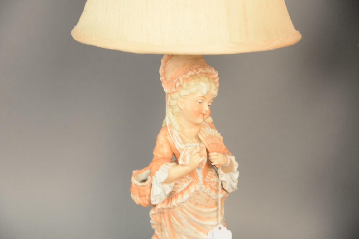 Pair of bisque figural lamps, height of figure 13 3/4 in.