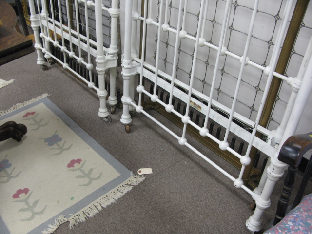 Pair of brass and iron twin beds, along with a paint decorated stand