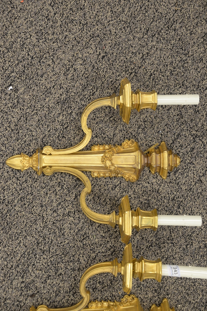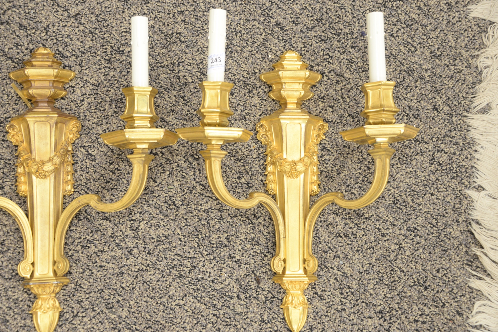 Lot 243: Pair of E.F. Caldwell Gilt Bronze Wall Sconces, each having two lights, length 18 inches, width 13 inches.