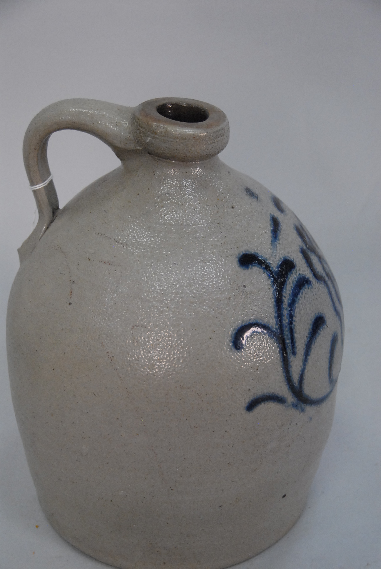 Stoneware two gallon jug with blue decoration. ht. 11 1/2in.