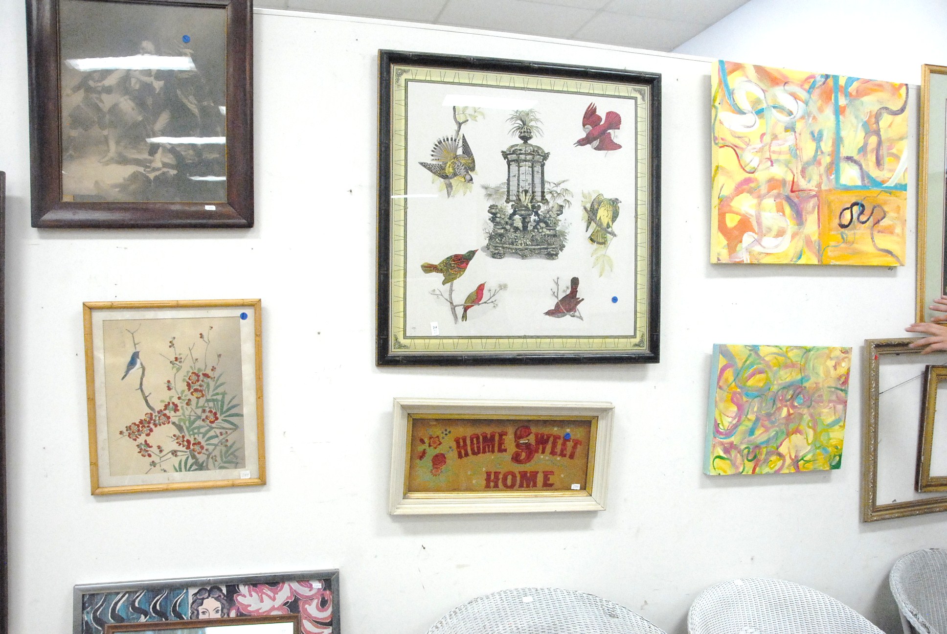 10 piece lot of prints and two paintings.