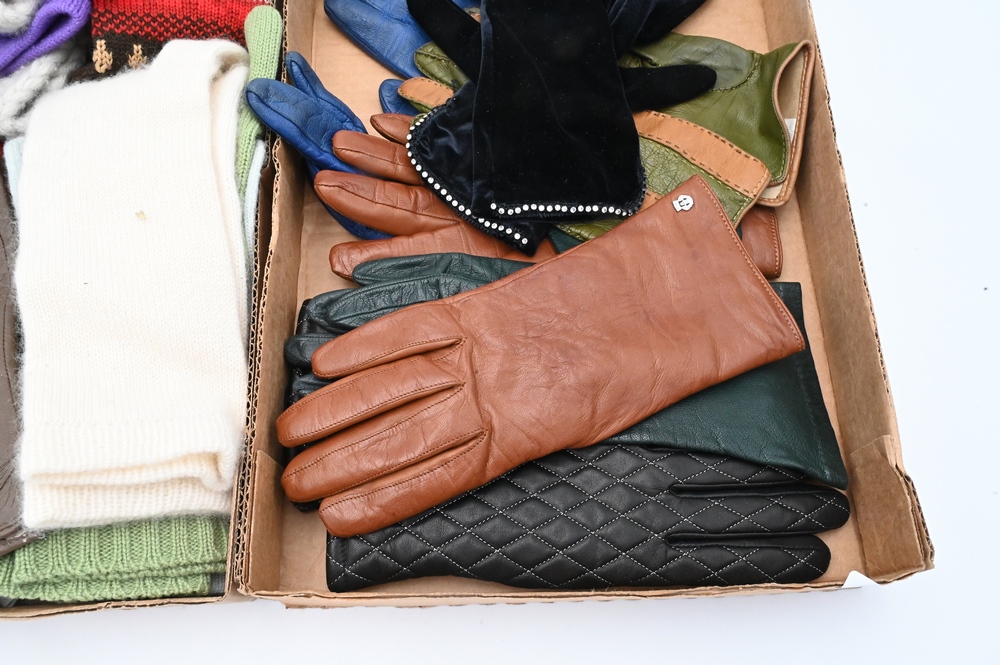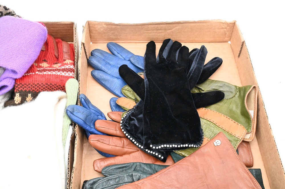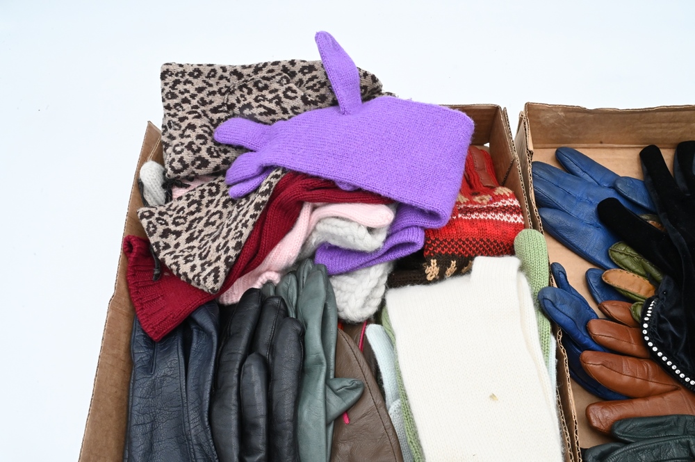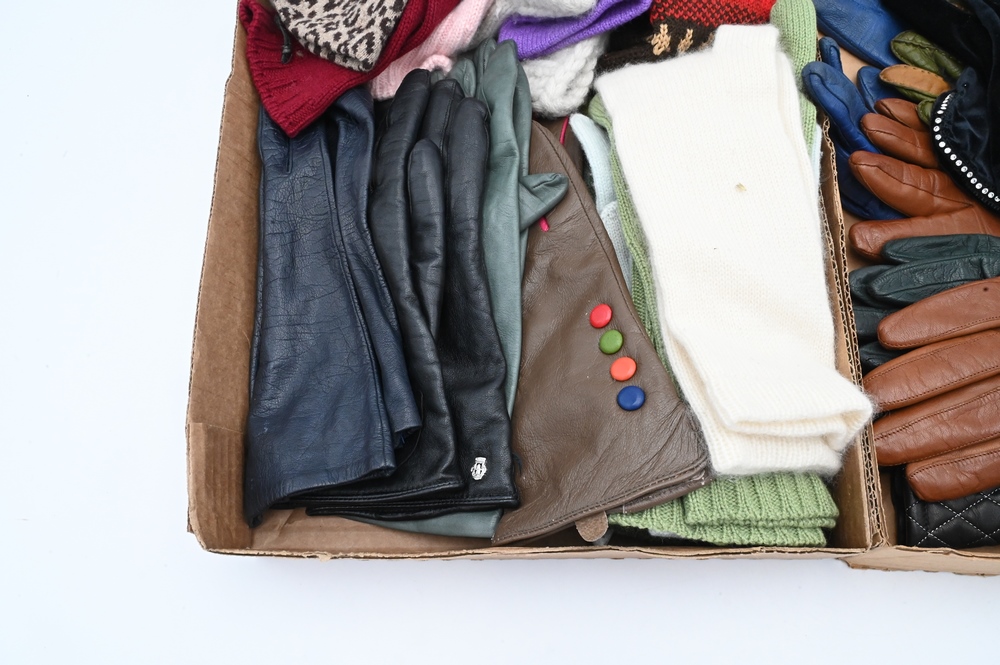 Lot 244: Group of Clothing Accessories, to include six hats, gloves, leather gloves, cashmere, Cire, along with size 7 Roeckl.