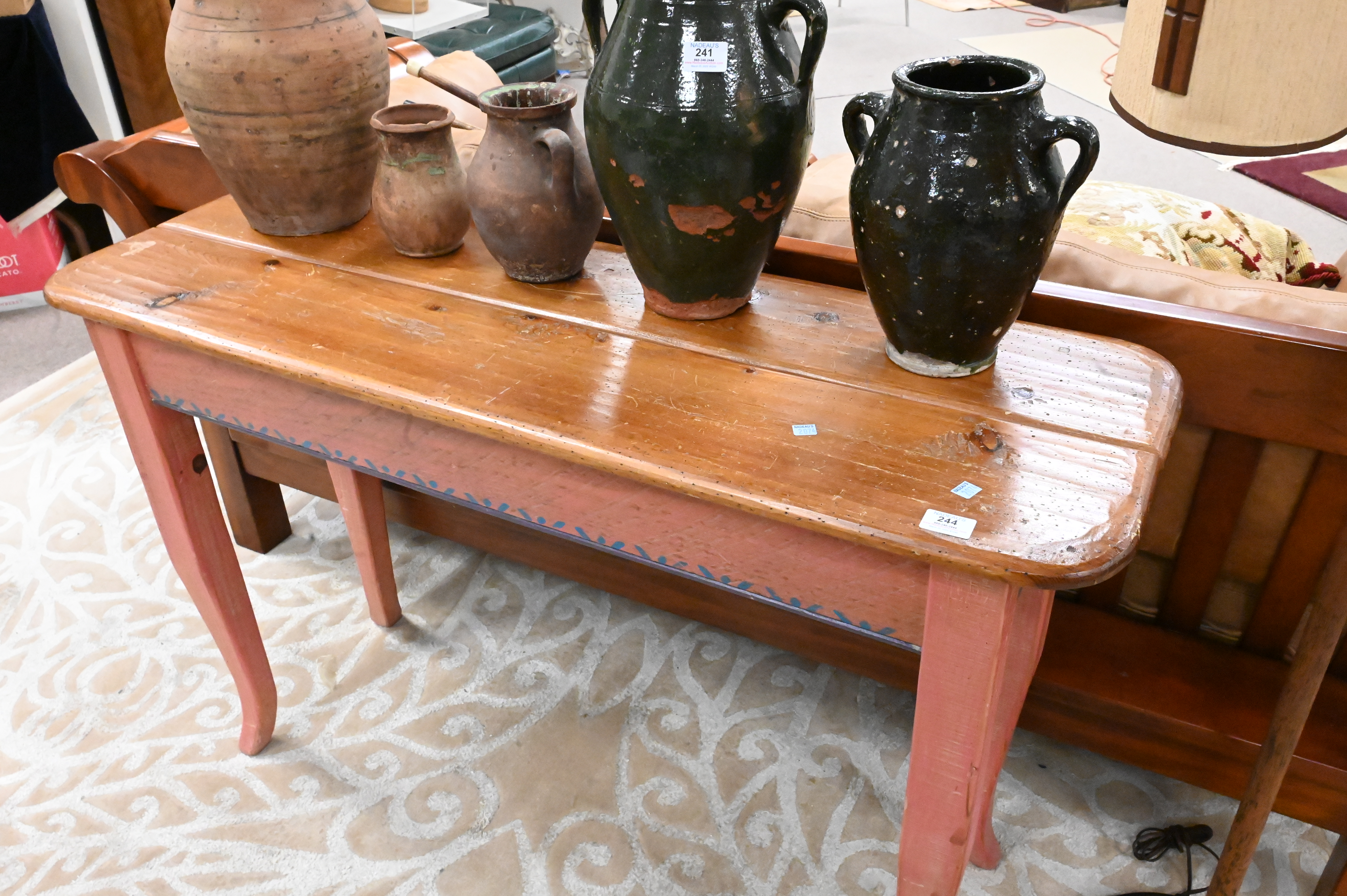 Shoestring Creations Hand Painted Sofa Table, minor scuffs to top, height 30 inches, top 16″ x 48″