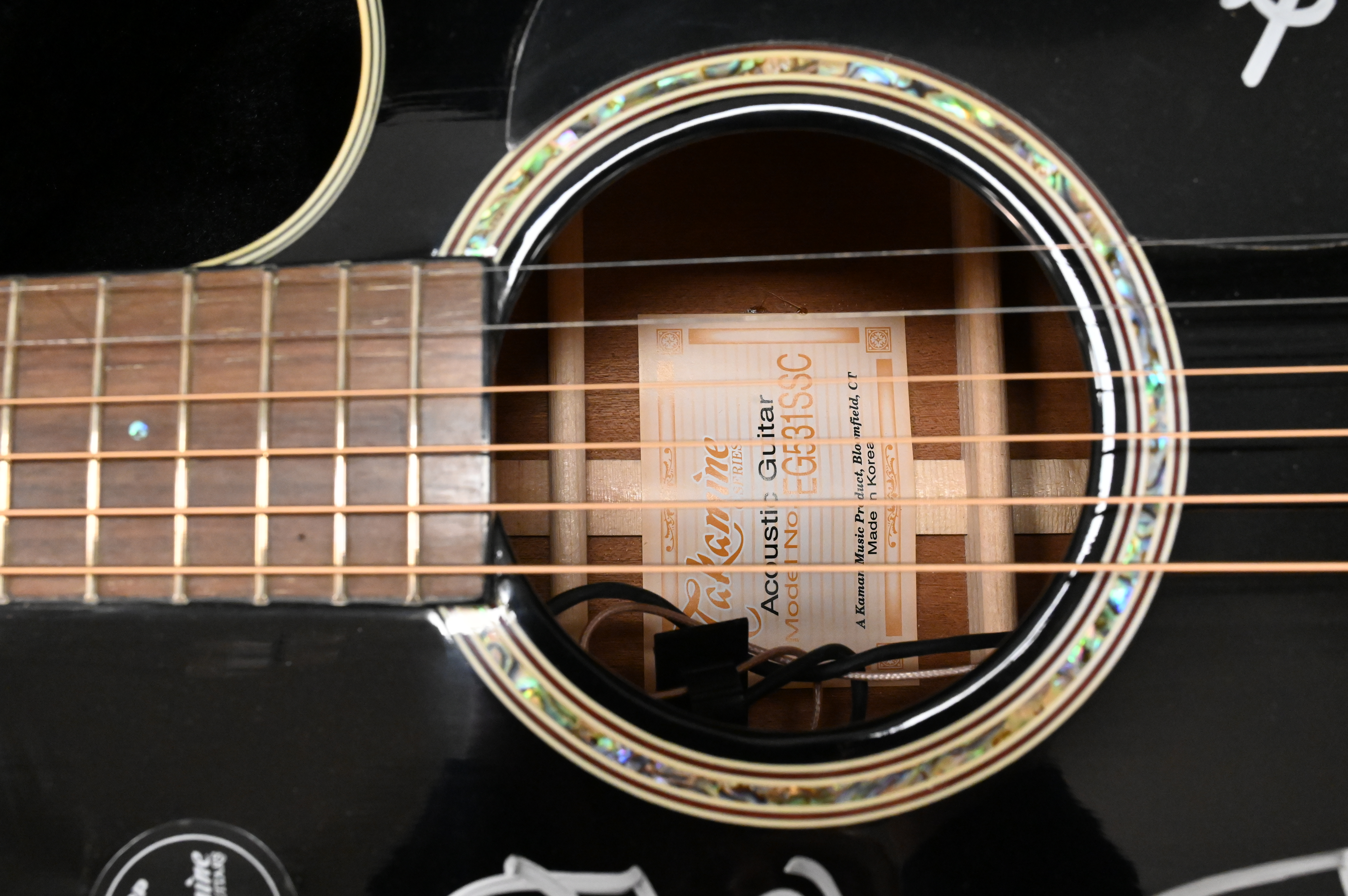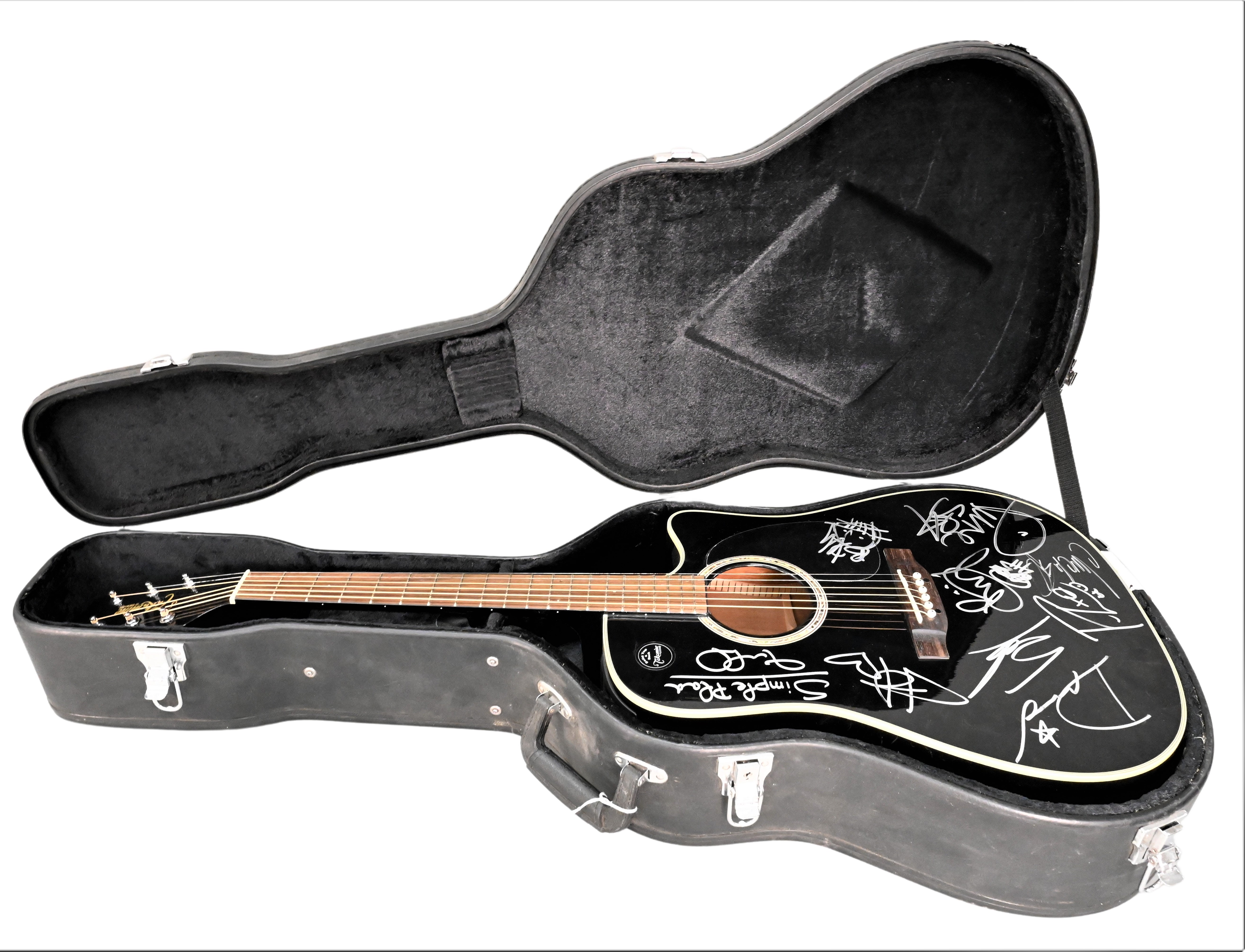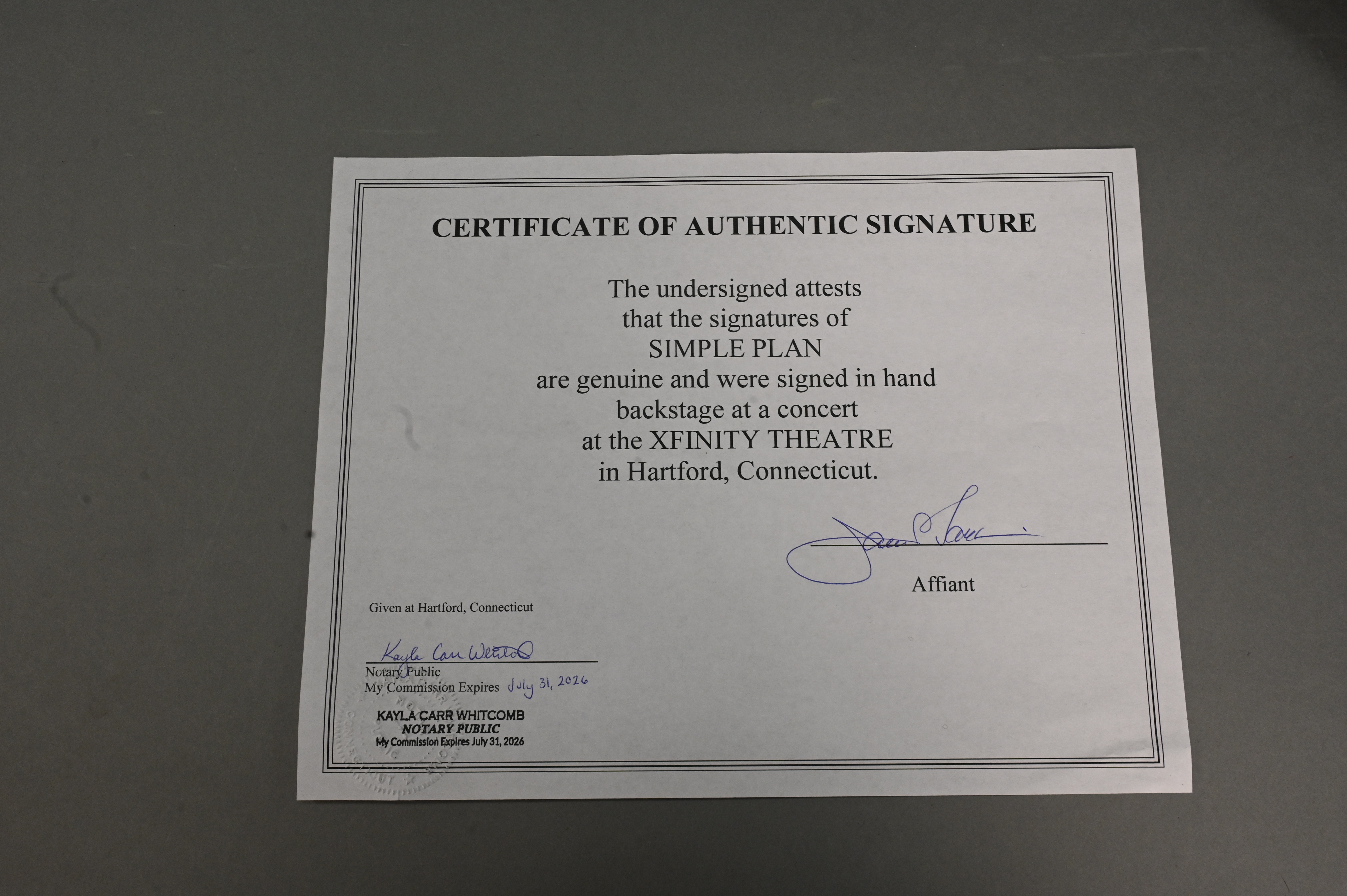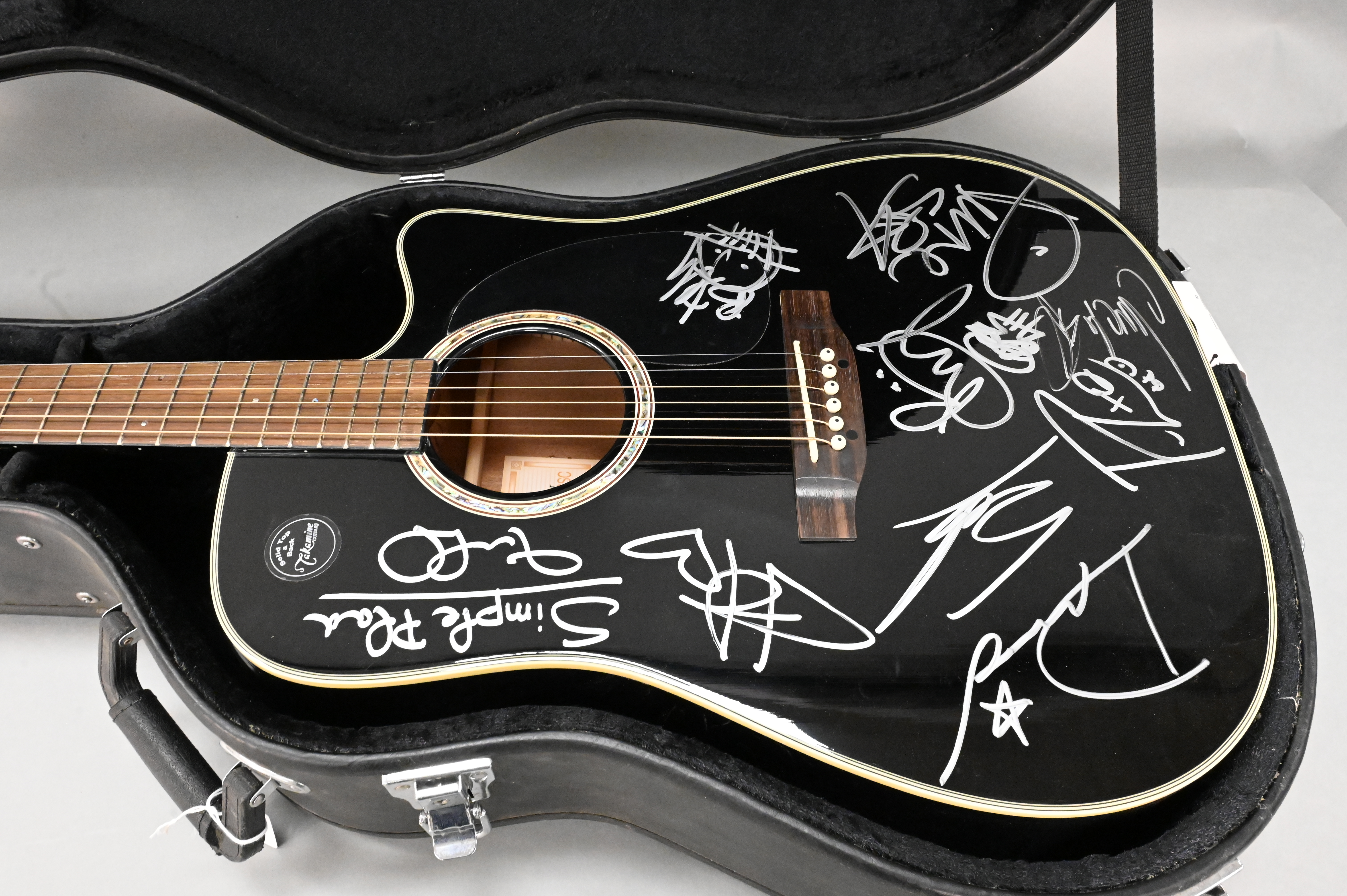 Simple Plan Autographed Kamine G Series Guitar, along with a certificate of authenticity and hard case, length 41 inches.