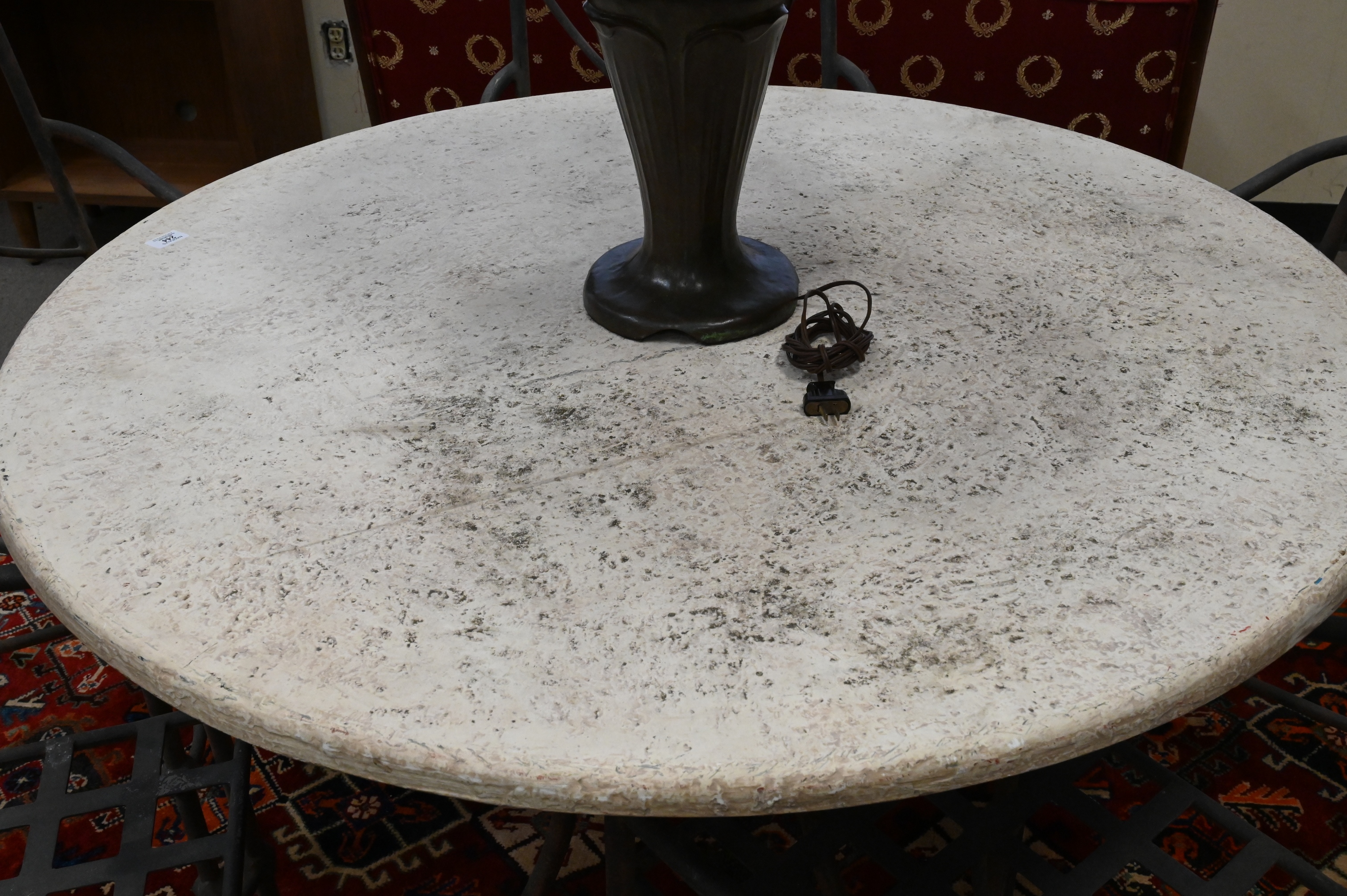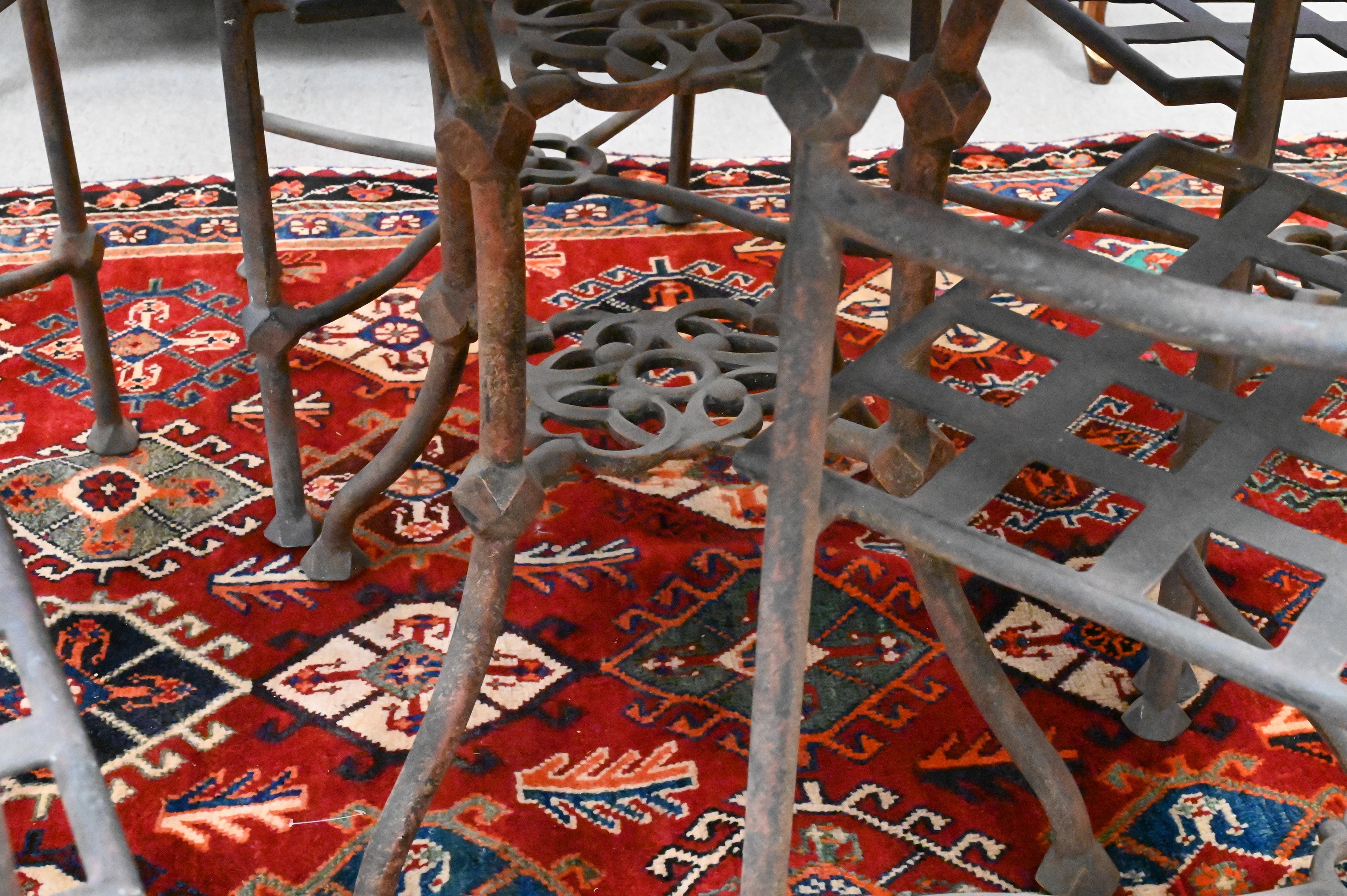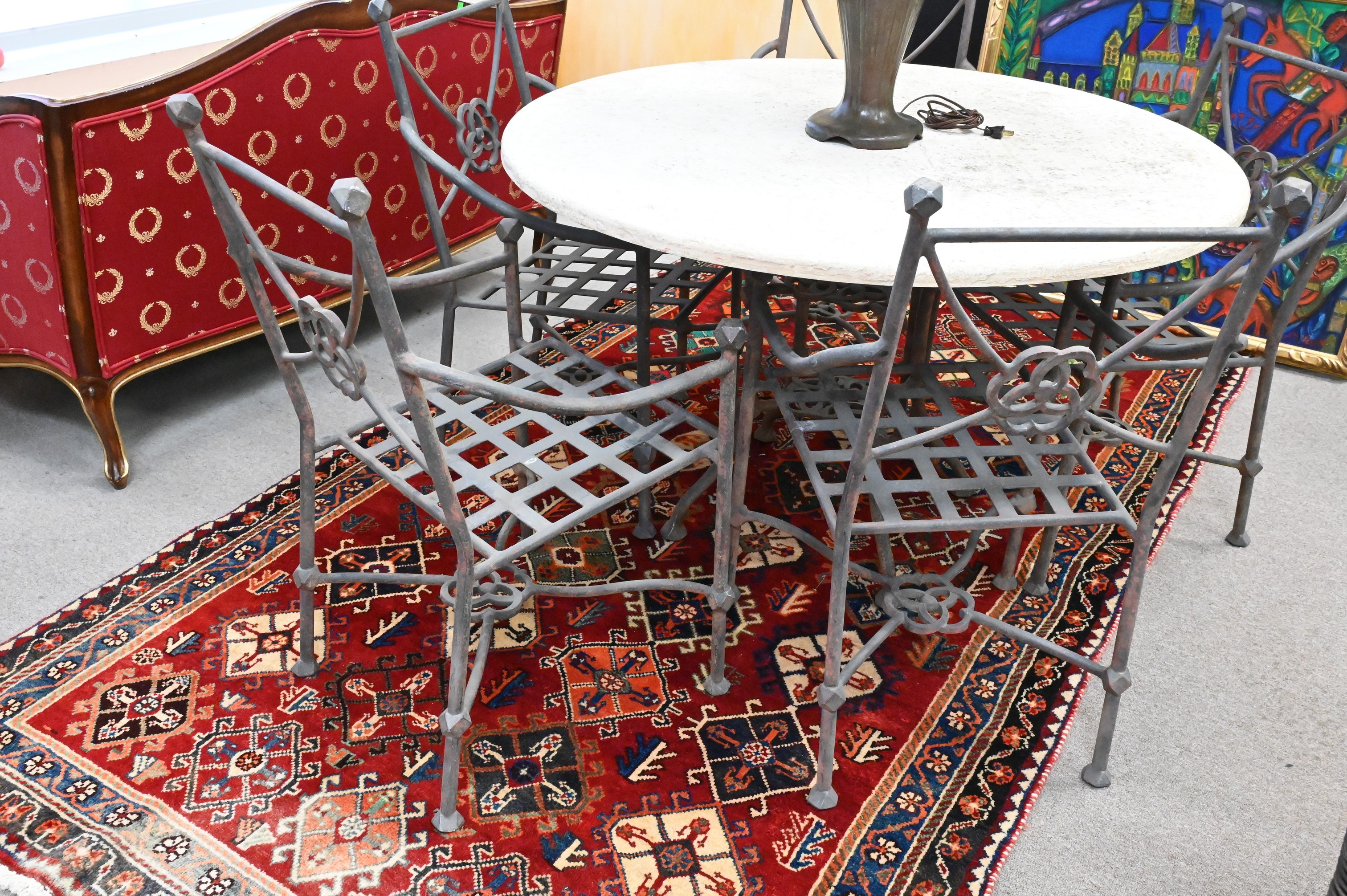 to include a round table and five metal arm chairs