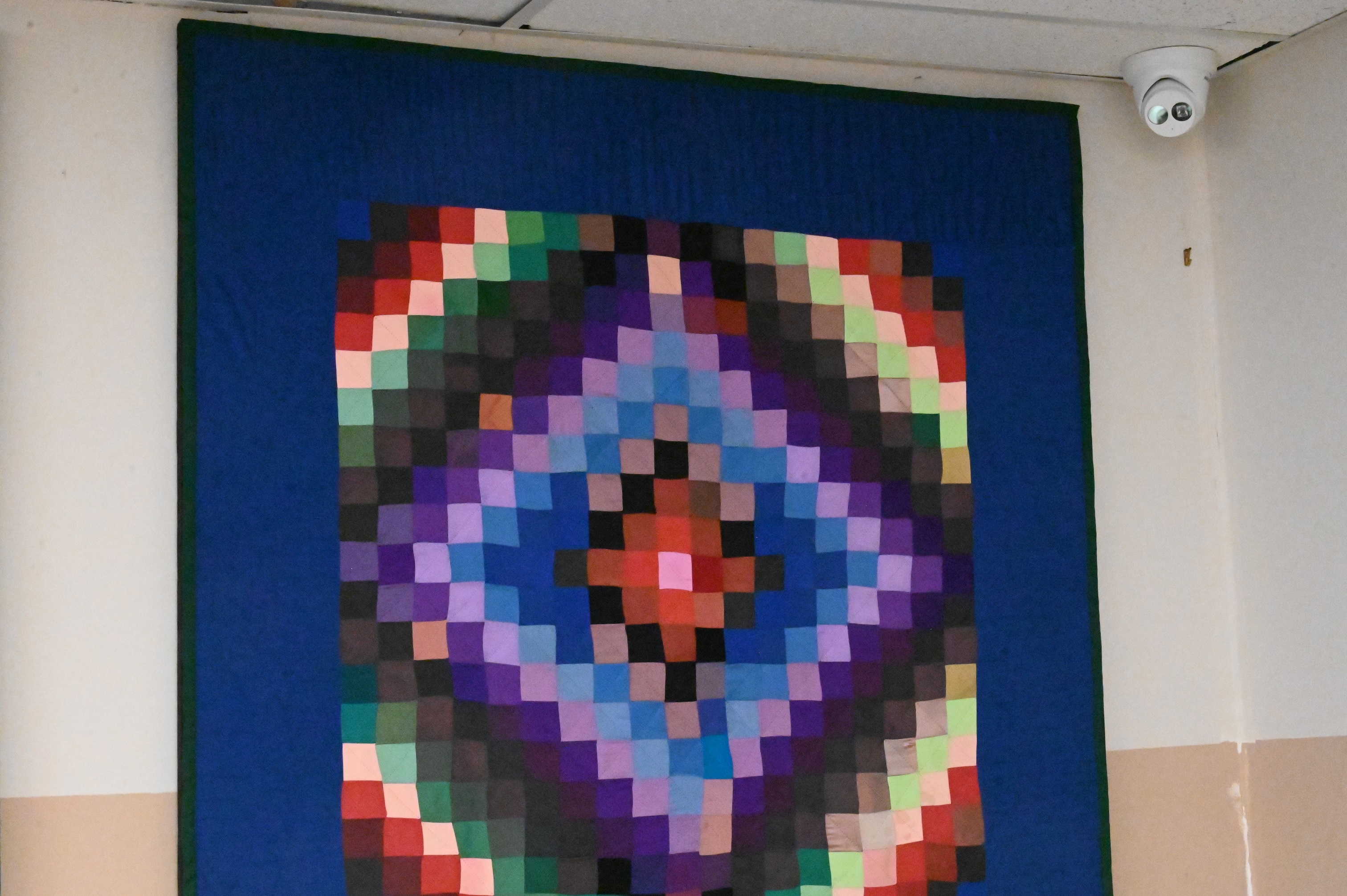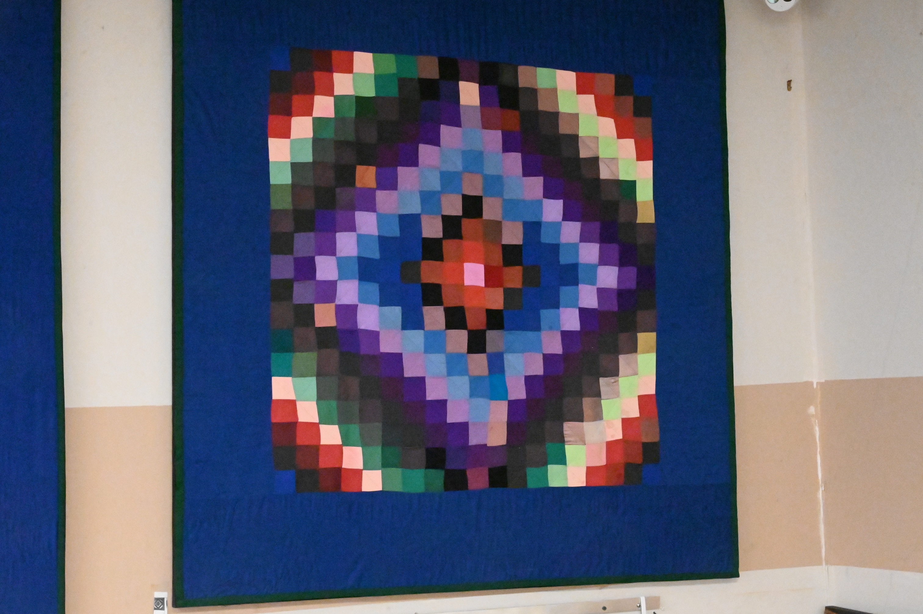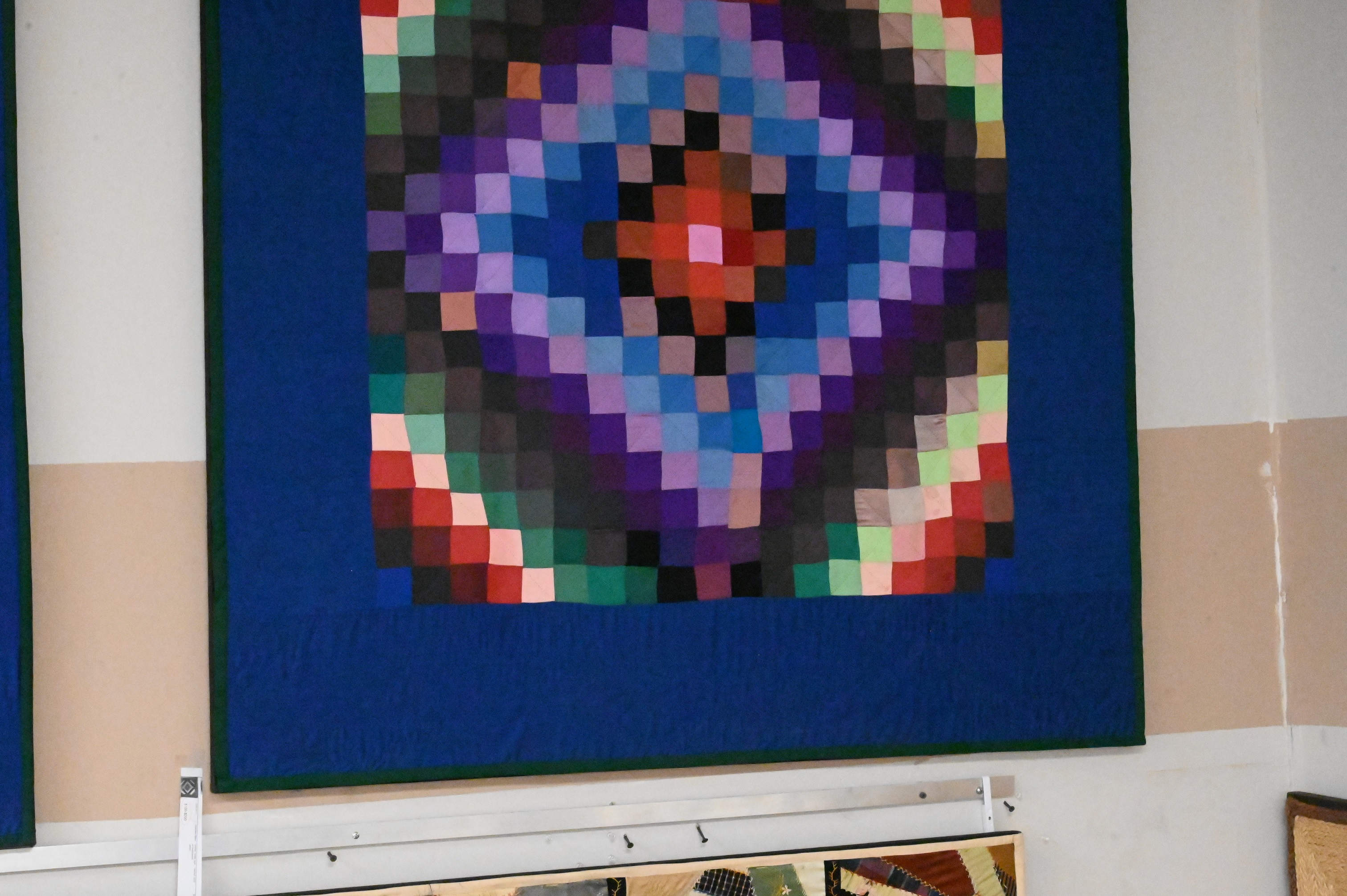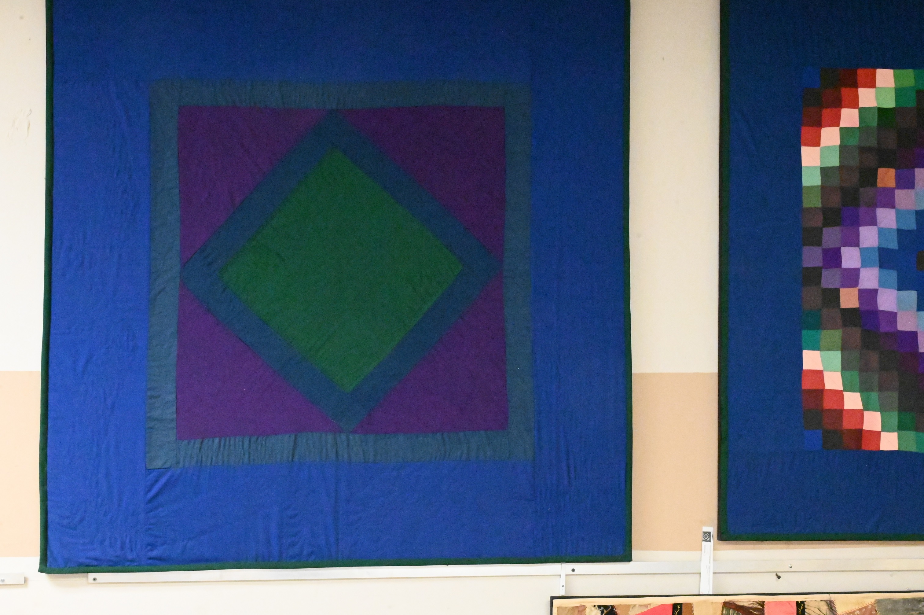 “Center Diamond” quilt circa 1900 Pennsylvania now mounted on stretcher bars, along with multi colored center diamond quilt