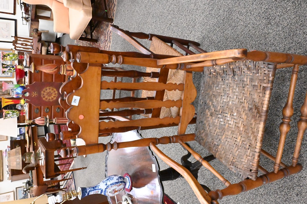 Two Bannister Back Armchairs, to include one having rush seat, along with one having woven seat, heights 47 1/2 and 45 1/2 inches. Provenance: Estate of Peter Tillou, Litchfield, Connecticut.