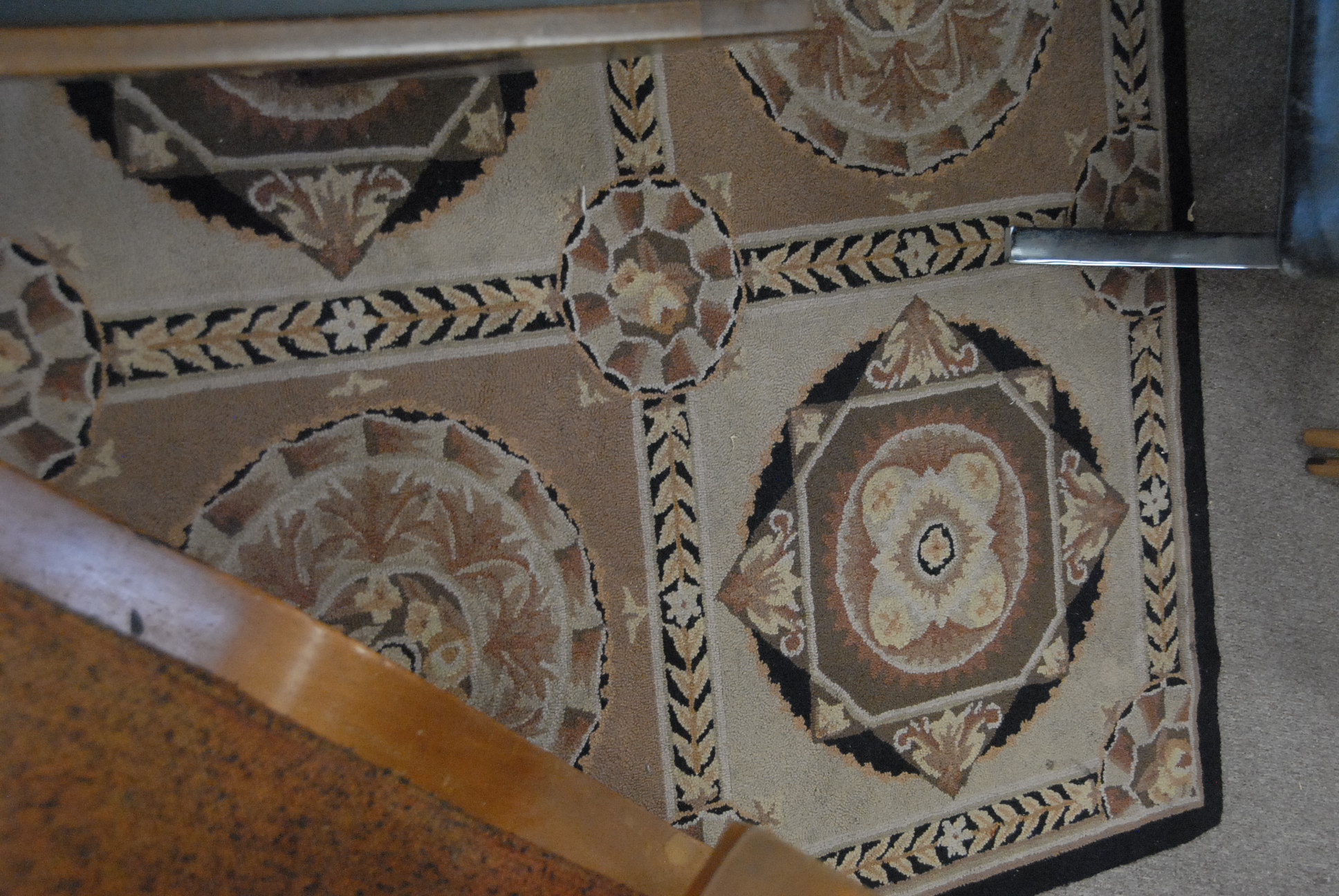 Two scatter rugs hooked rug and carpet with floral design 5’5 x 8’5 and 5’3 x 7’10.