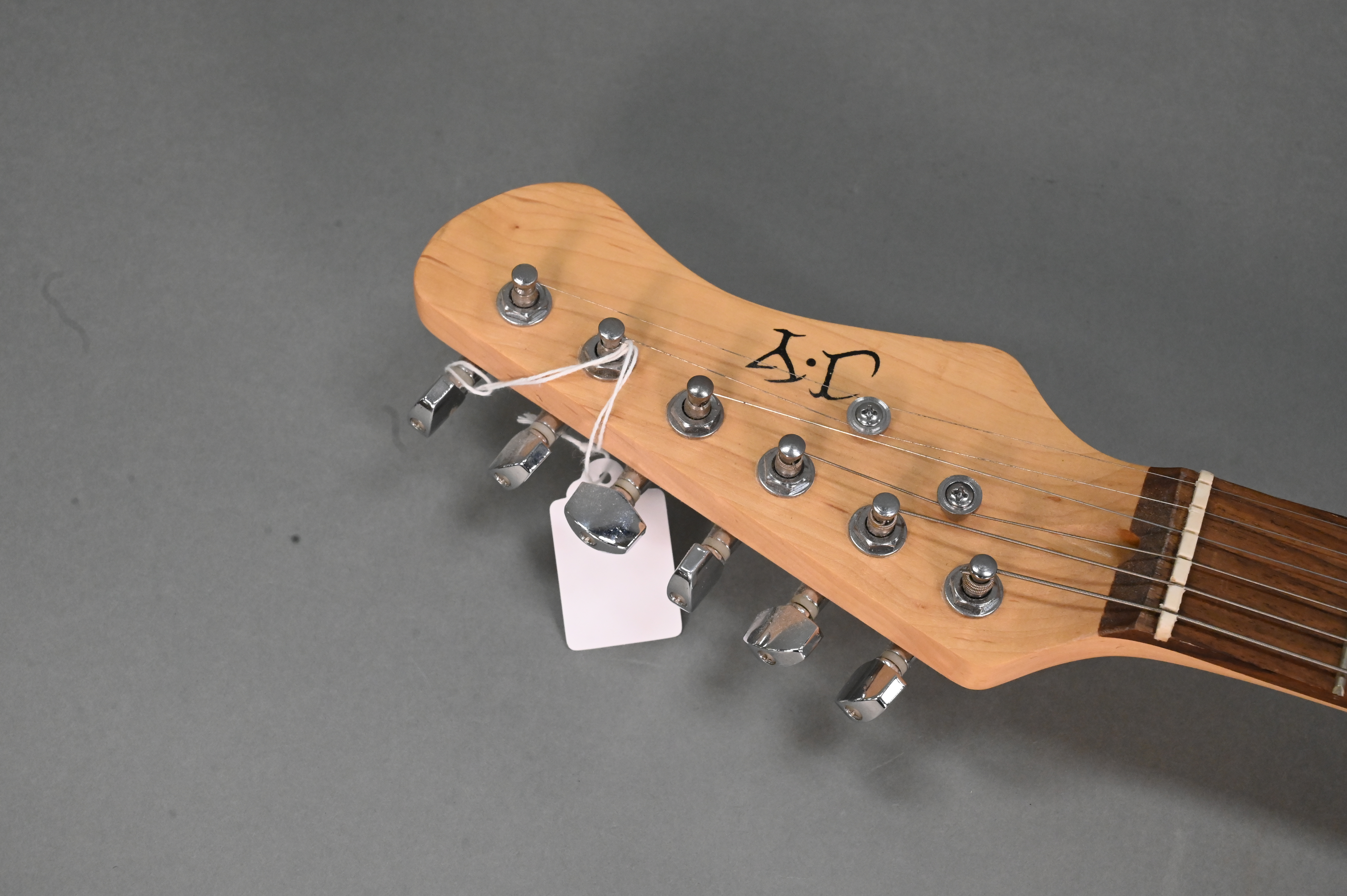 Autographed J.Y. Electric Guitar, to include various musicians such as Jack White of the White Stripes, etc., length 39 inches.