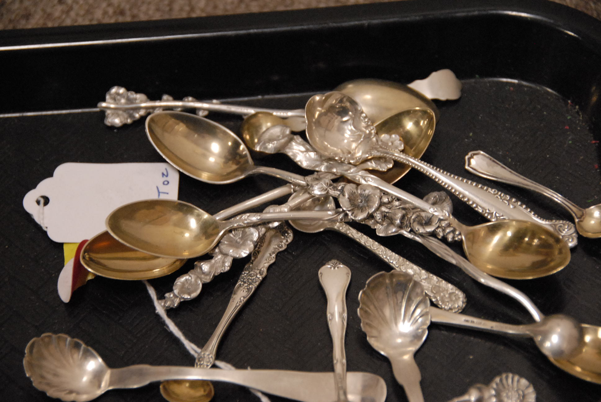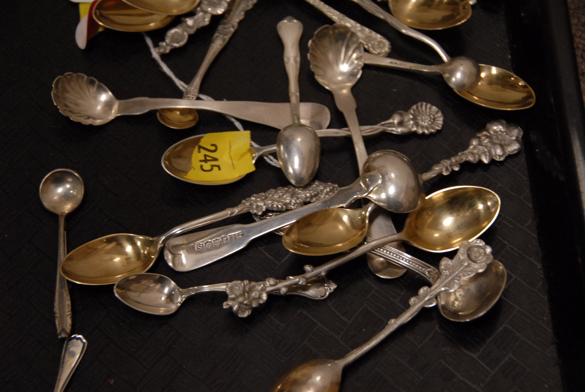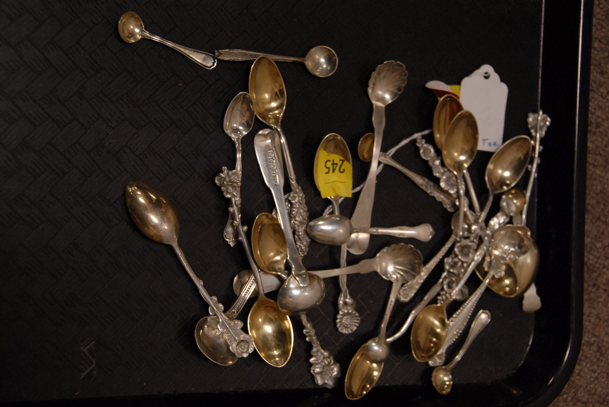 Group lot of silver demitasse and salt spoons, 25 pieces.