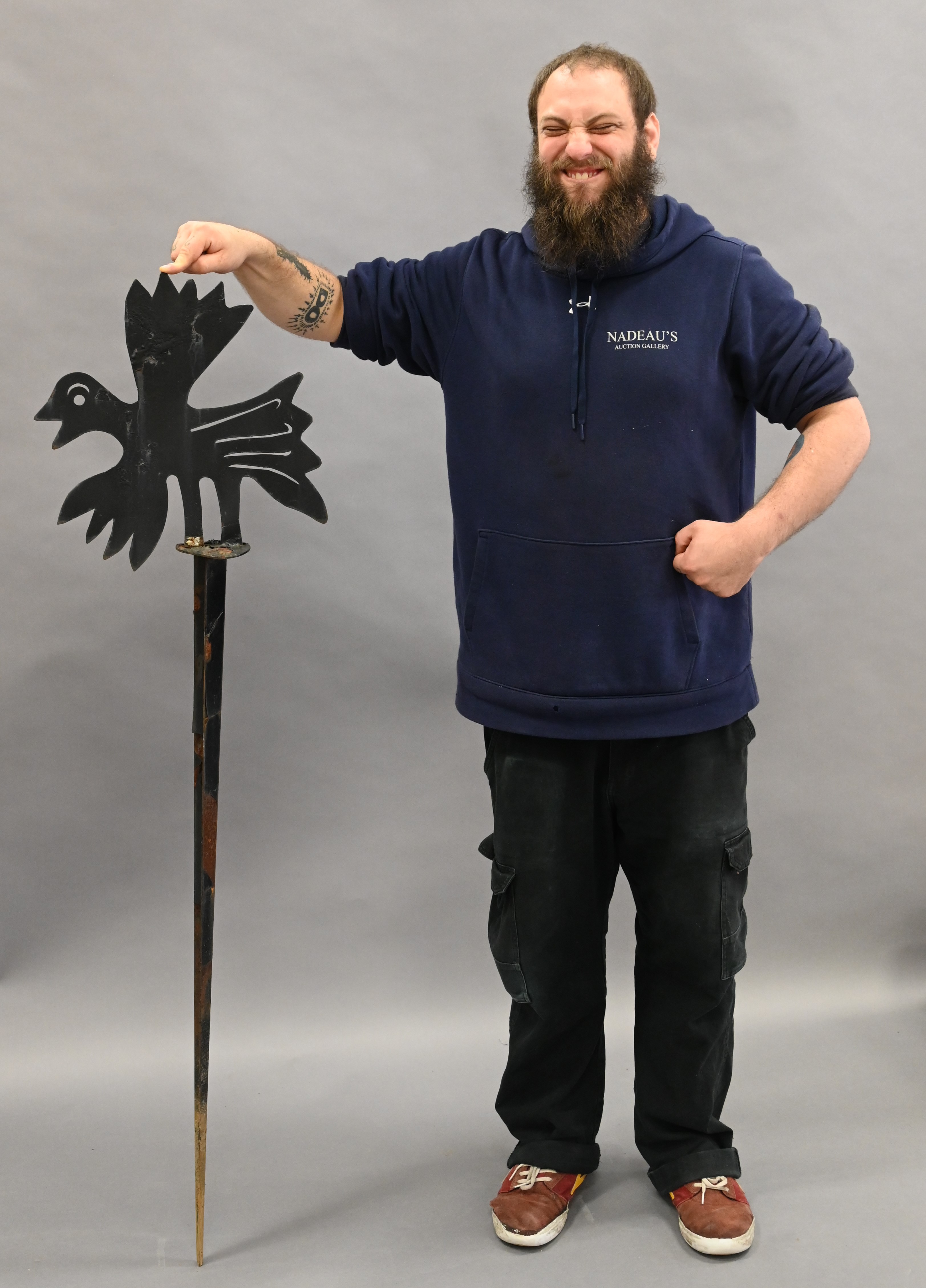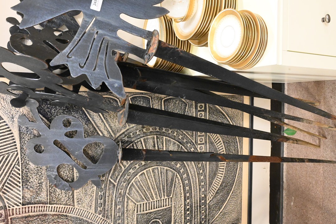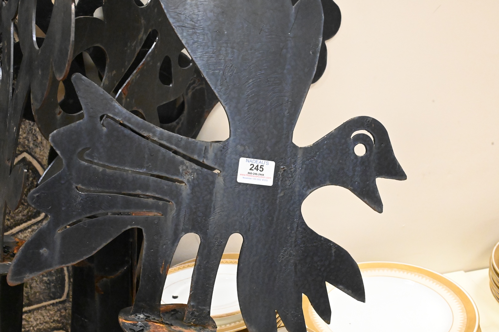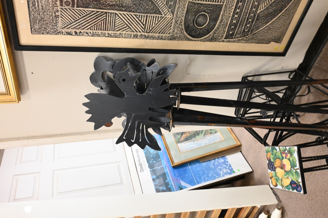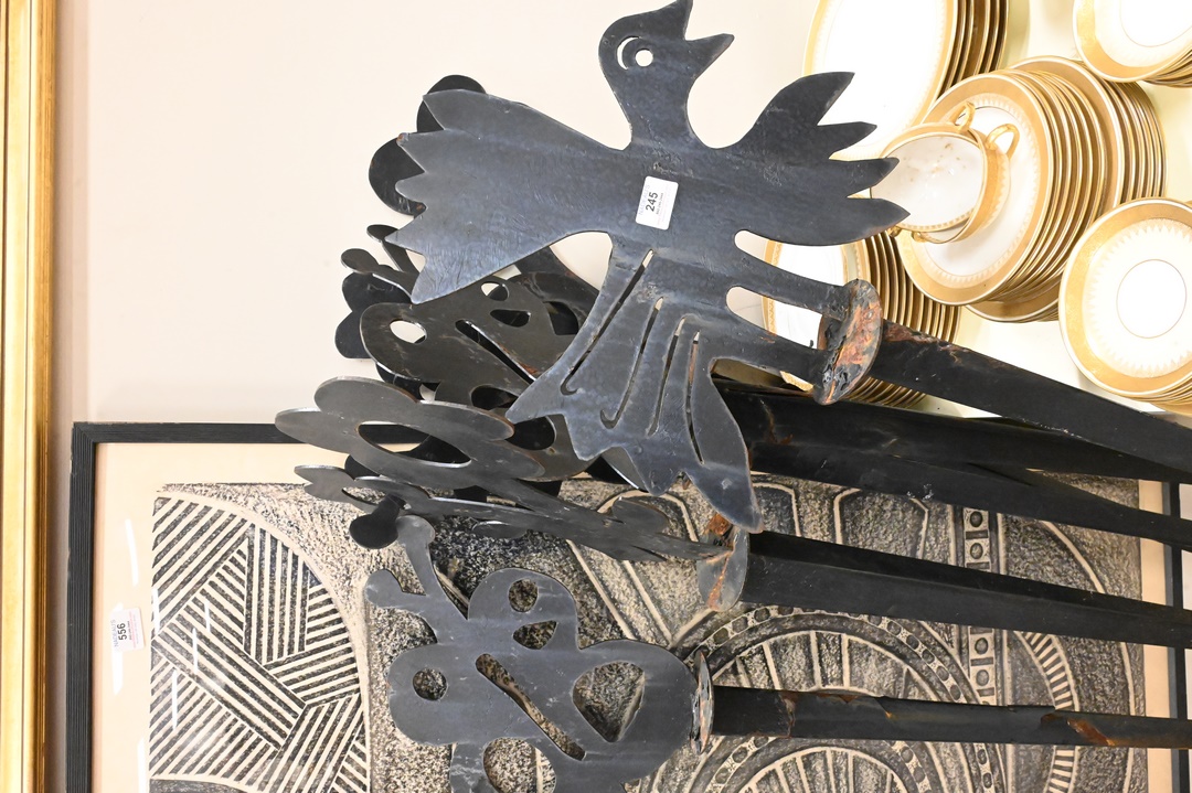 Group of 10 Steel Lawn Ornaments, in the form of birds, flowers and insects, height 56 inches.