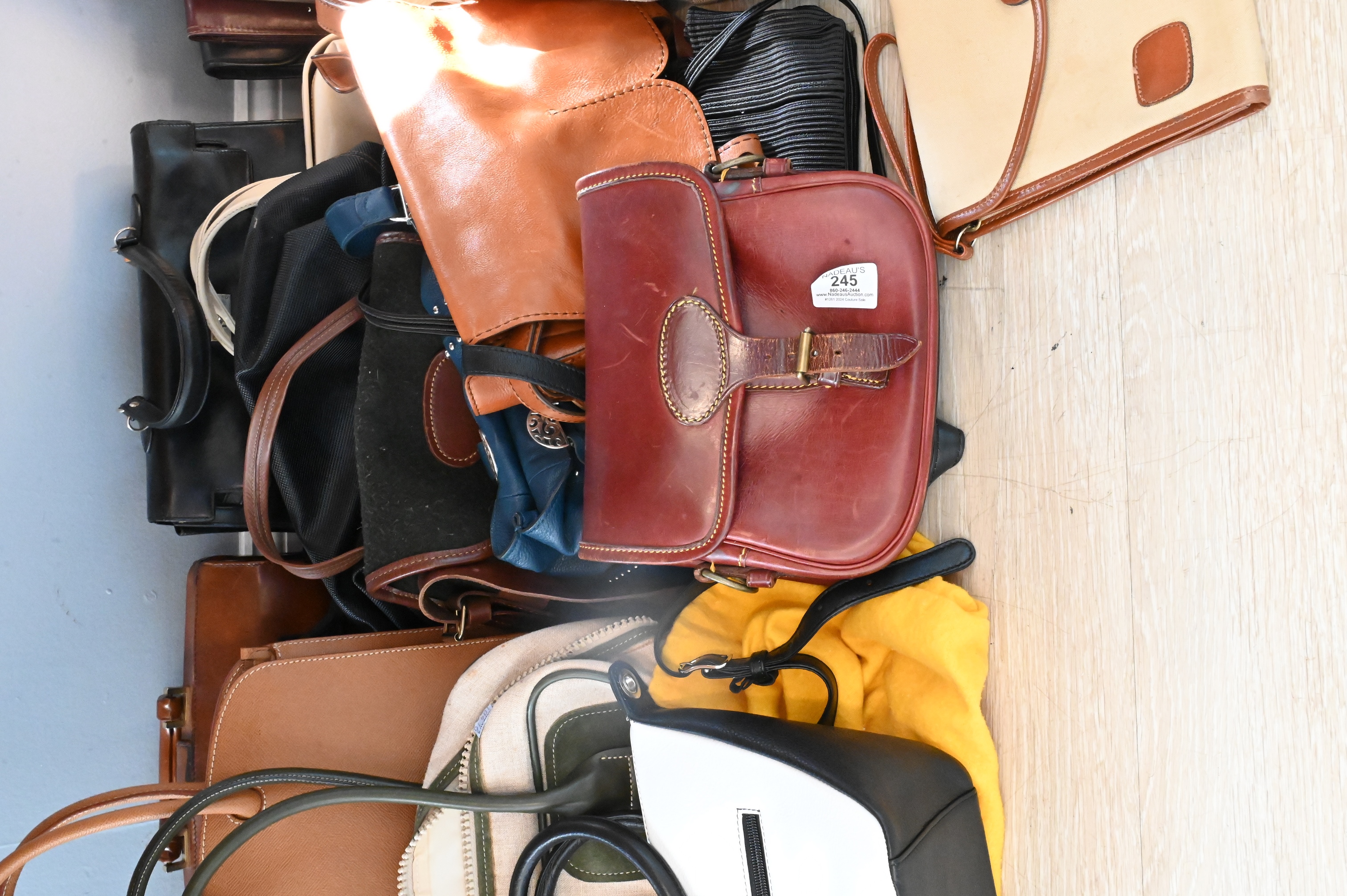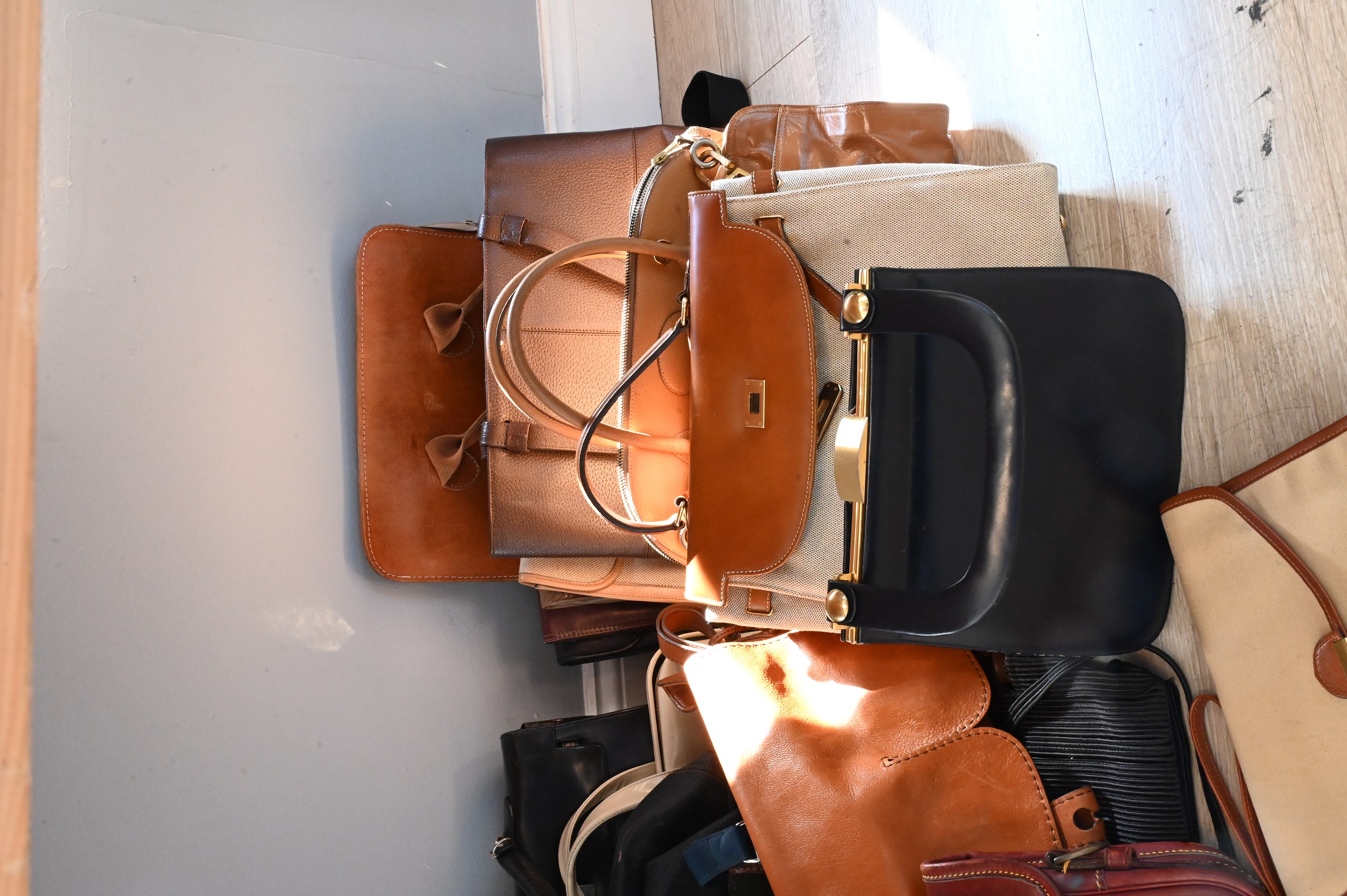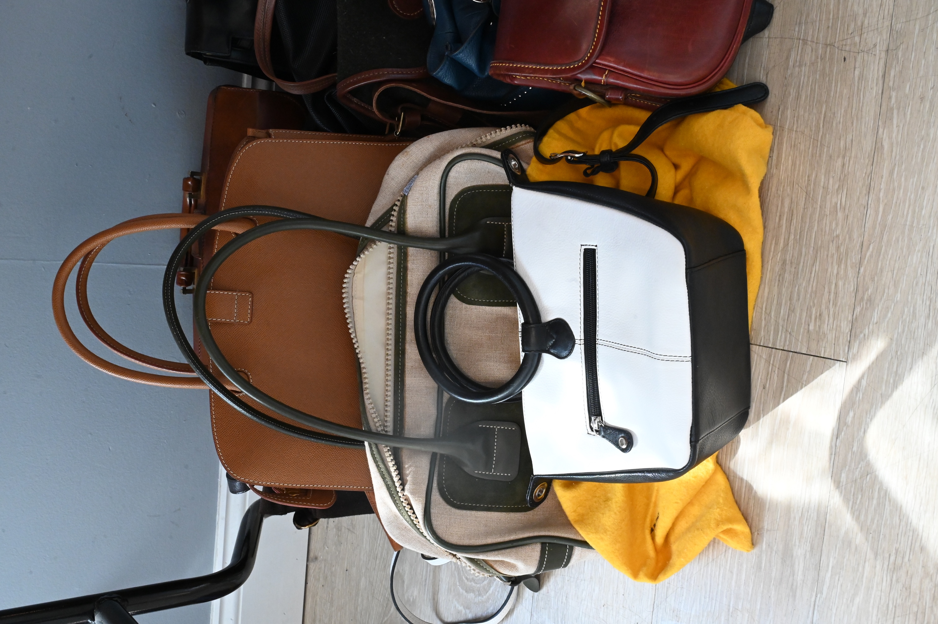 to include black, navy, brown leather, canvas and brands such as Marc Jacobs, Partridge, Brighton Hogan, etcetera