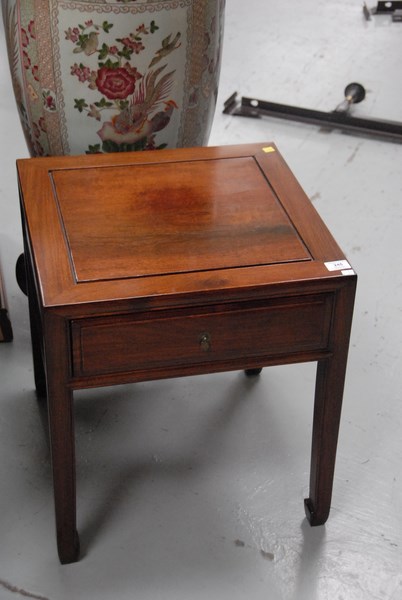 Pair of Chinese style one drawer stands, ht. 22in. top: 20 x 20.