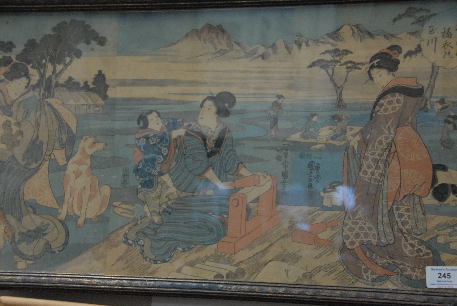 Six piece framed lot embroidery woodblocks including Elizabeth Keith 1887-1956 Forbidden.