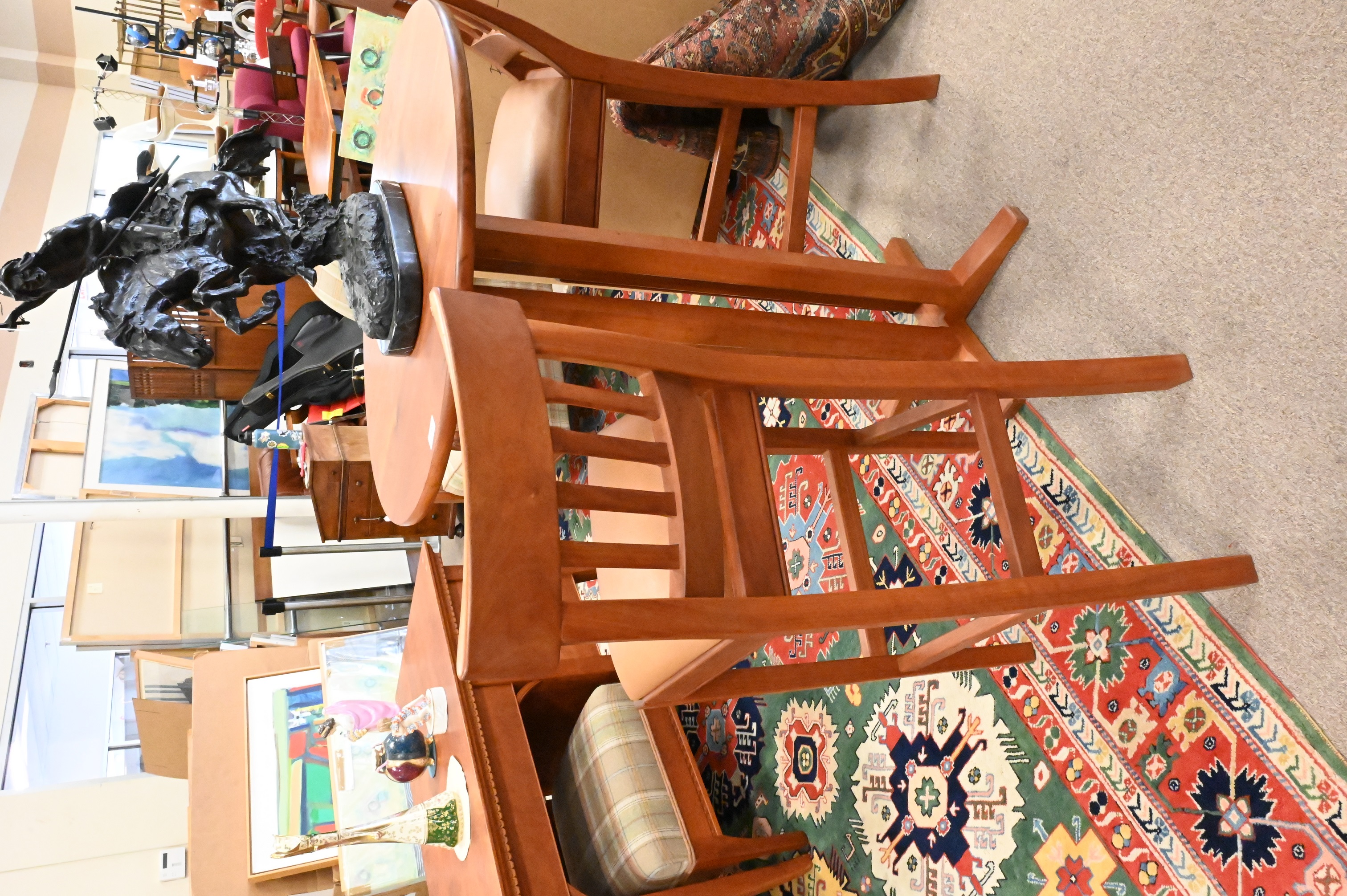 Lot 245: Thomas Shackleton Custom Cherry Macros Cocktail Table having Two Bar Stools