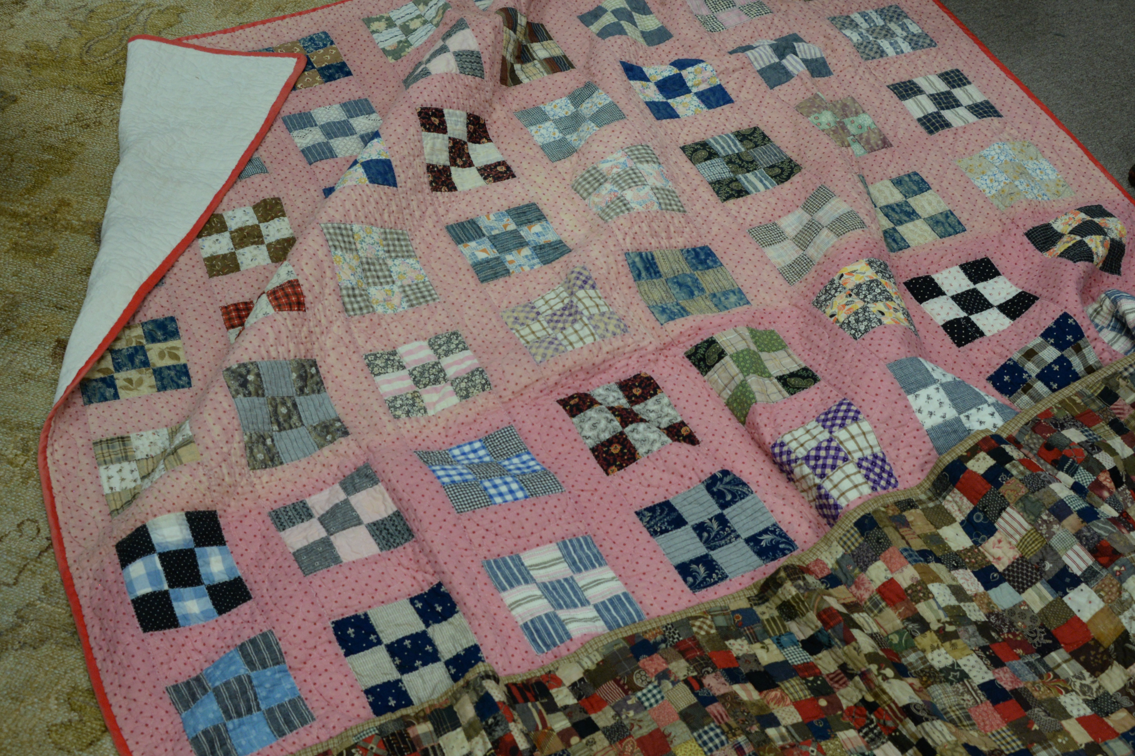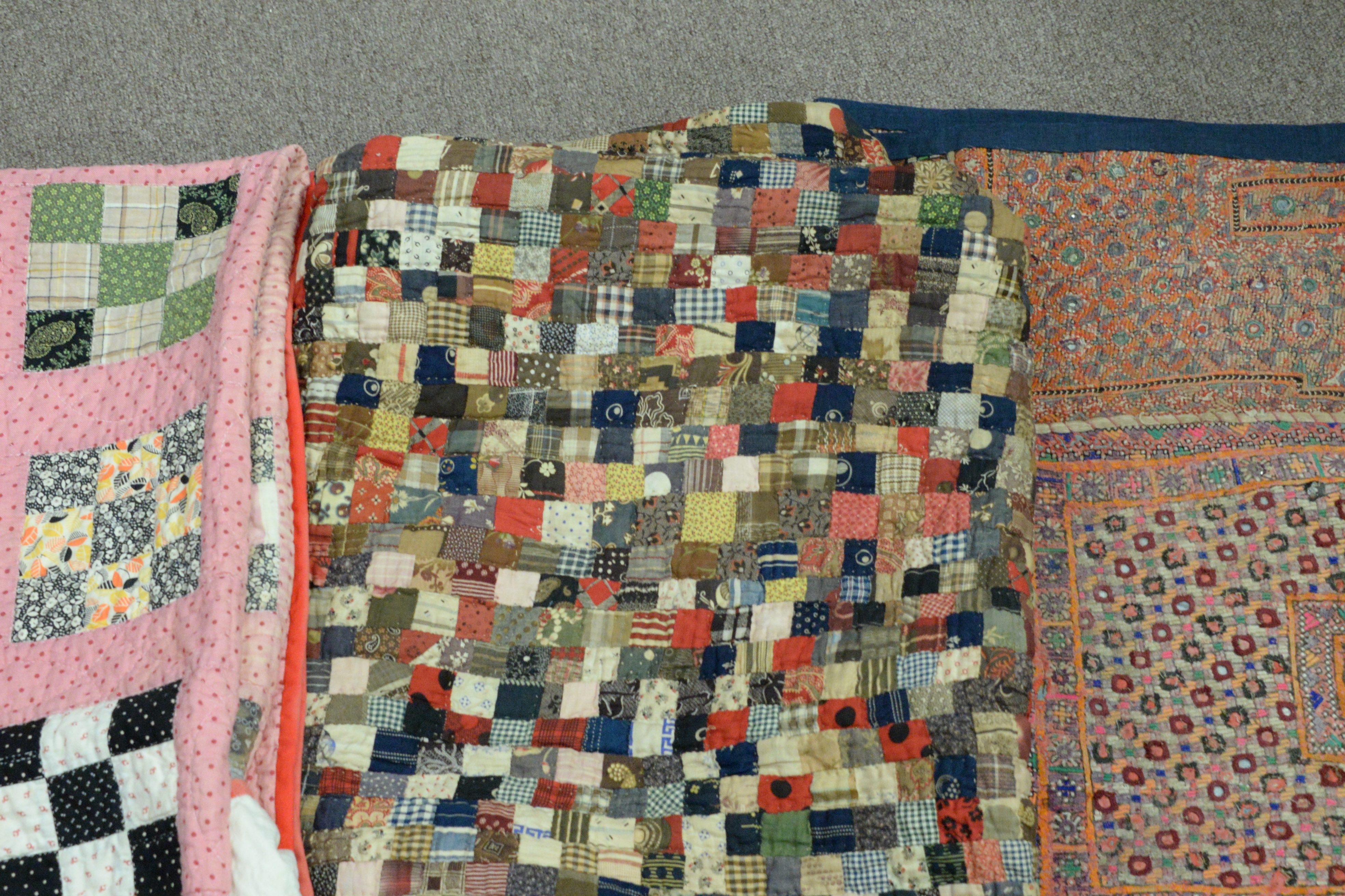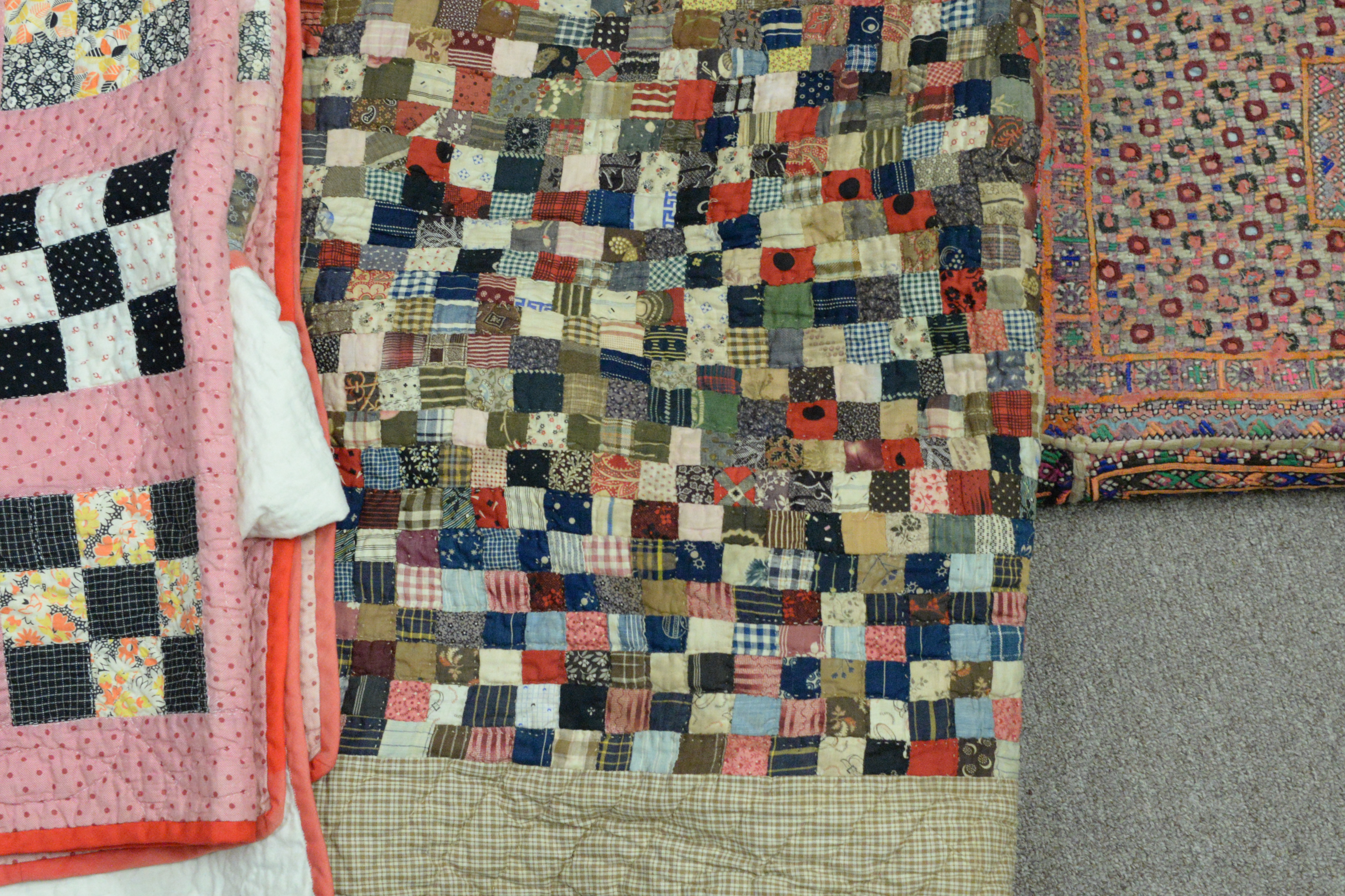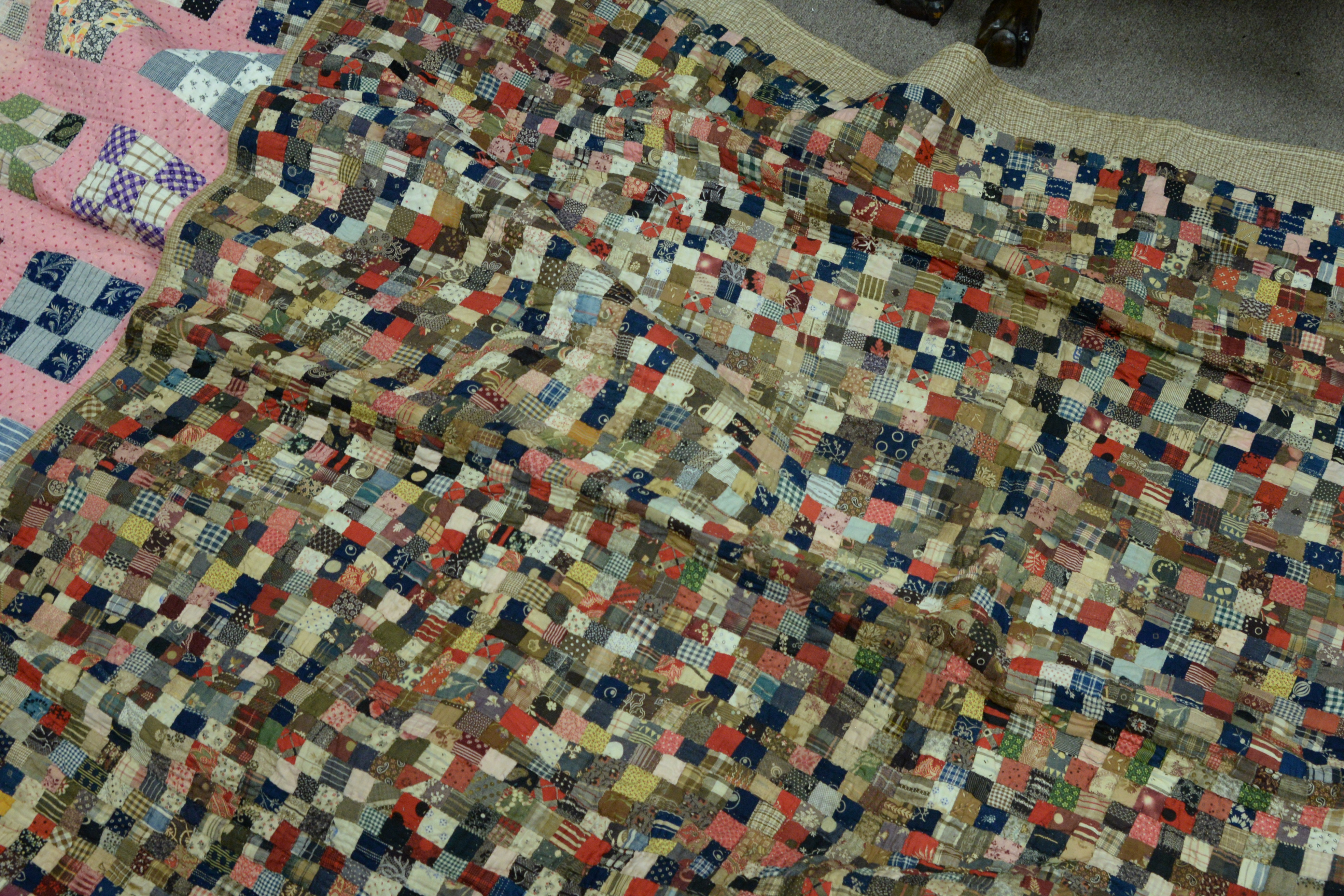 Three handmade patchwork quilts, largest 5’4″ x 5’10”