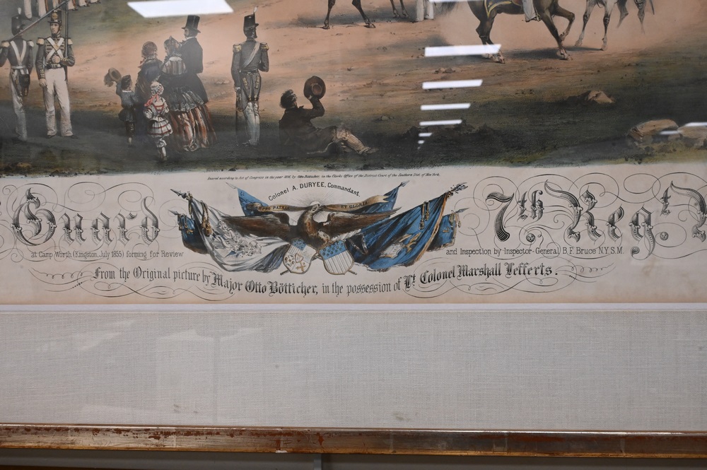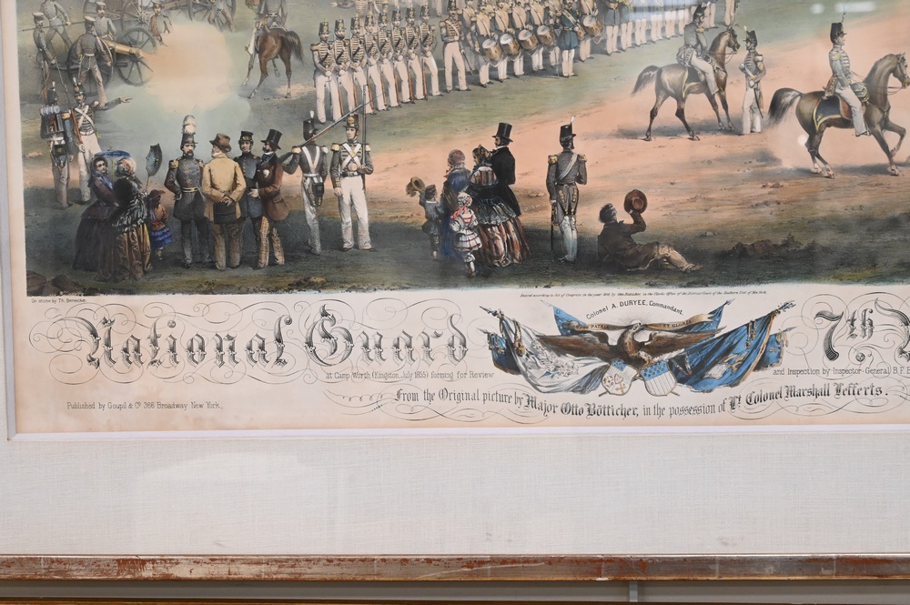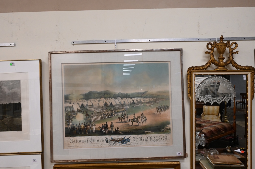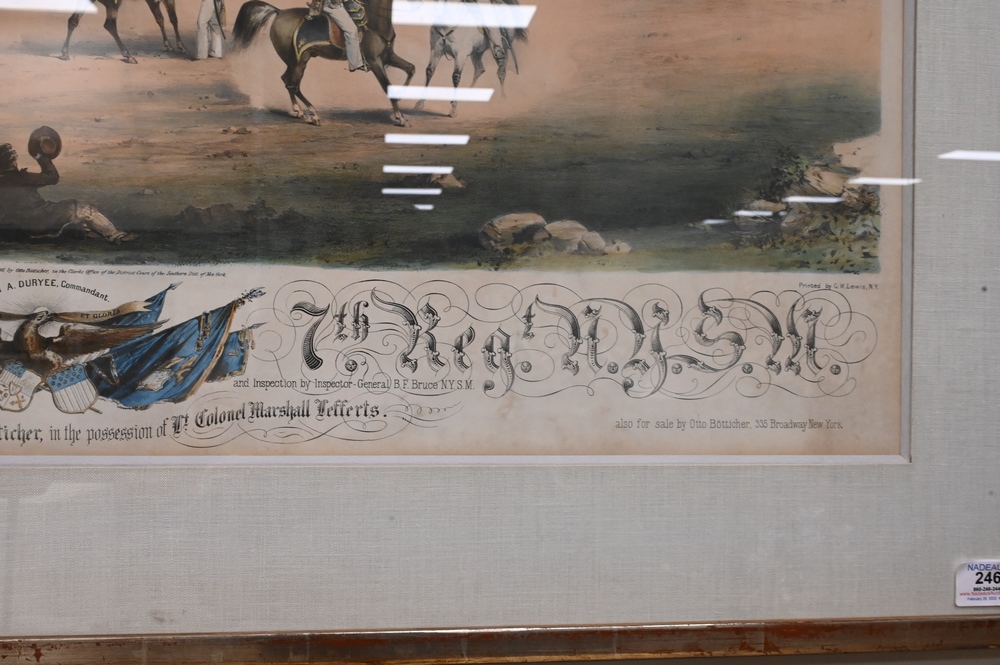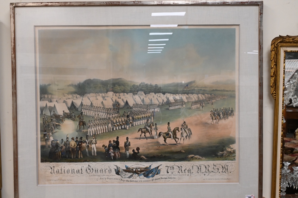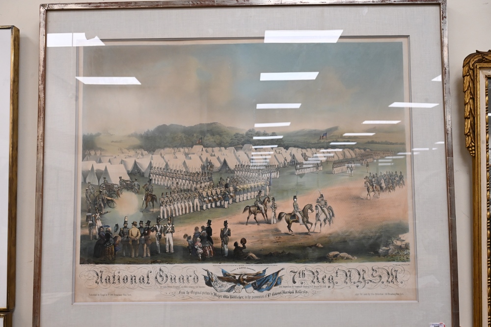 Lot 246: After Otto Boetticher, German/American, 1811 – 1886, “National Guard 7th Regiment and New York”, circa 1850, lithograph with hand coloring on paper, inscribed in plate throughout the lower margin, image size 24 x 35 inches; along with