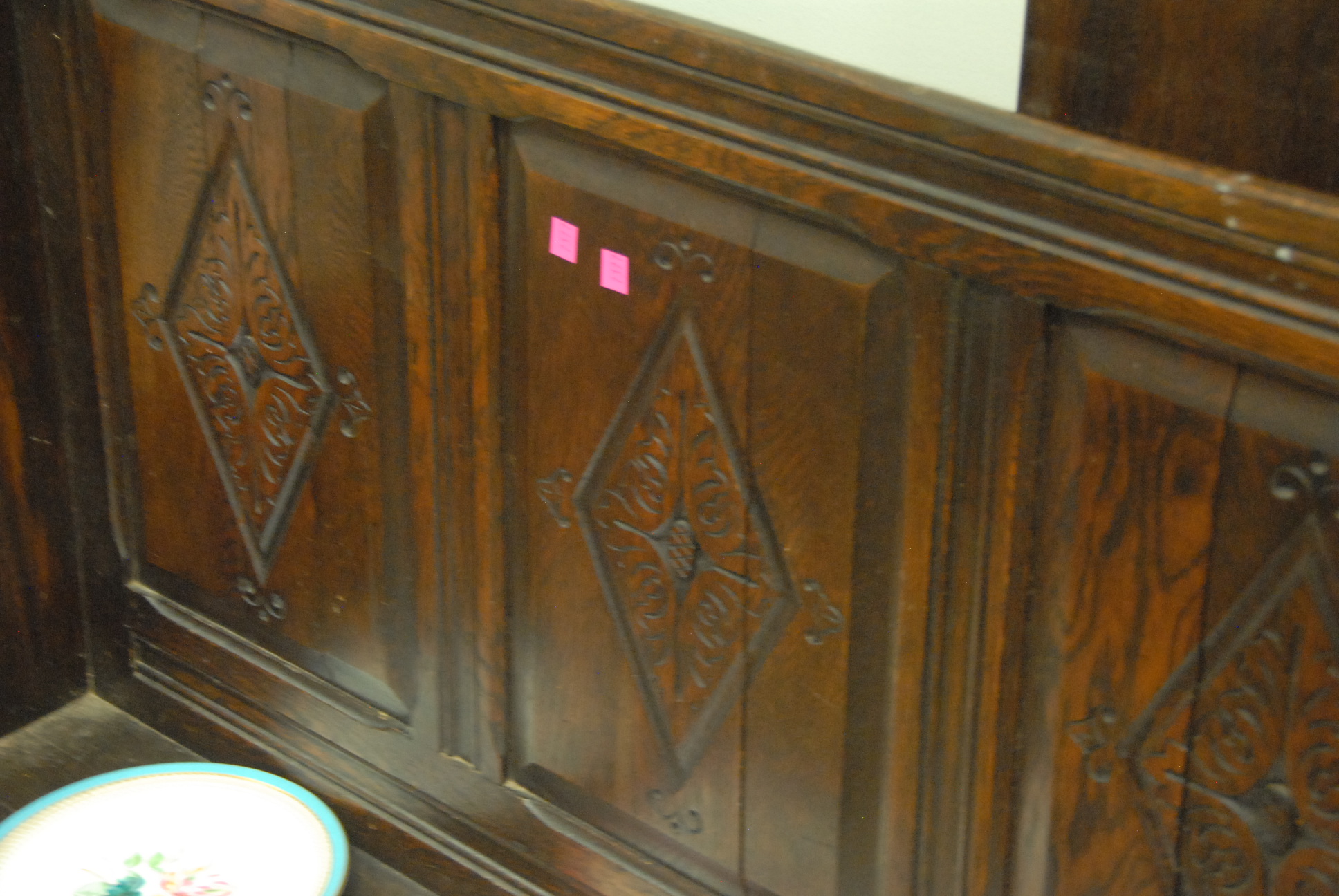 Lot 246: Carved oak bench. ht. 42 in. wd. 45 in.