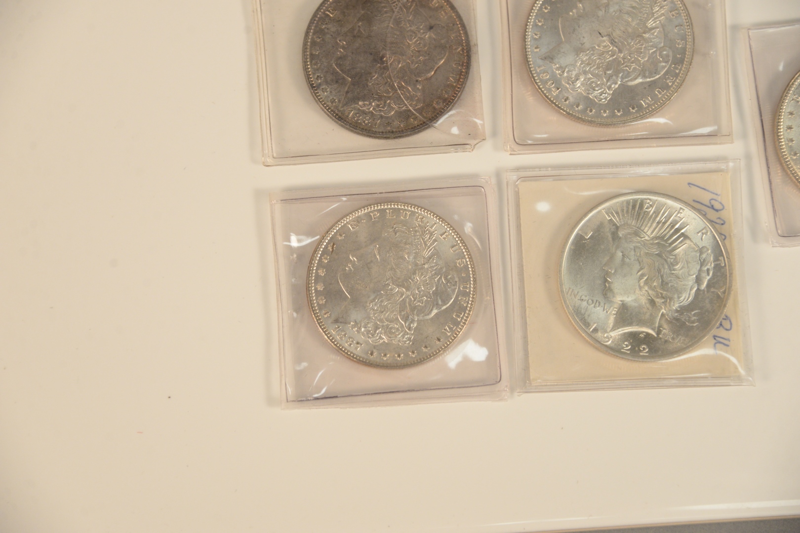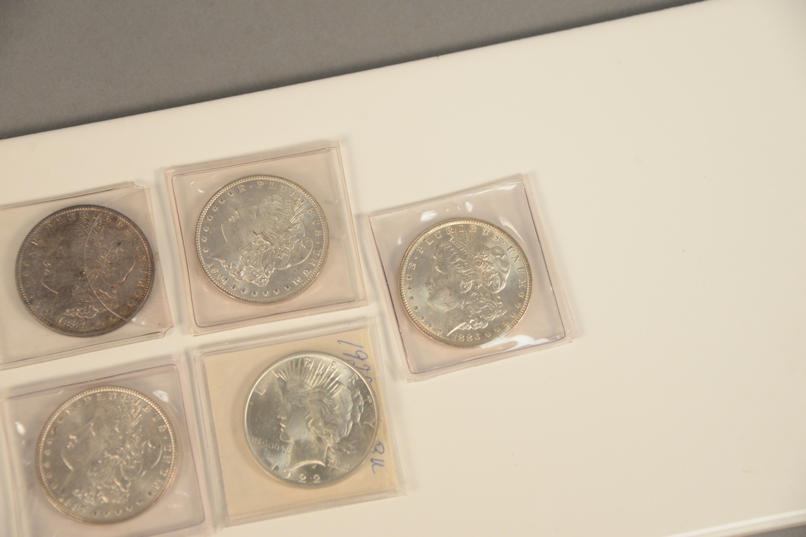 Five silver dollars all uncirculated to include 1 – 1886 2 – 1887 1 – 1904 – 1 – 1922.