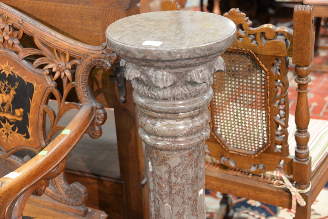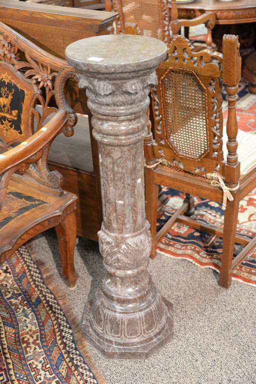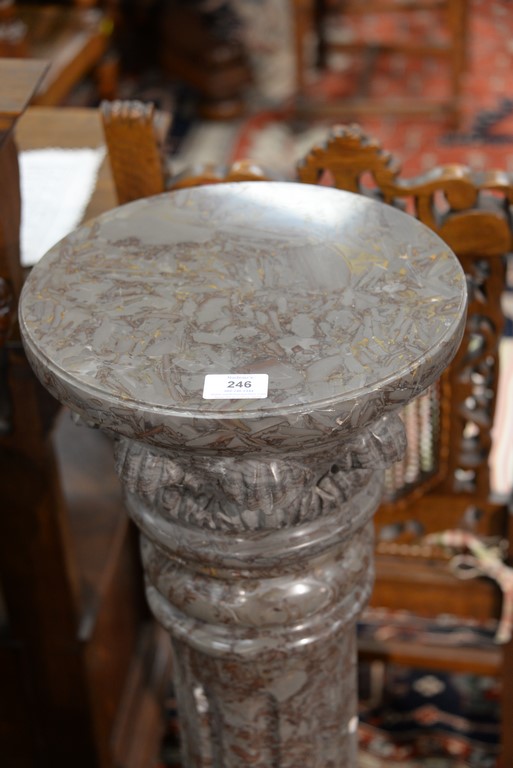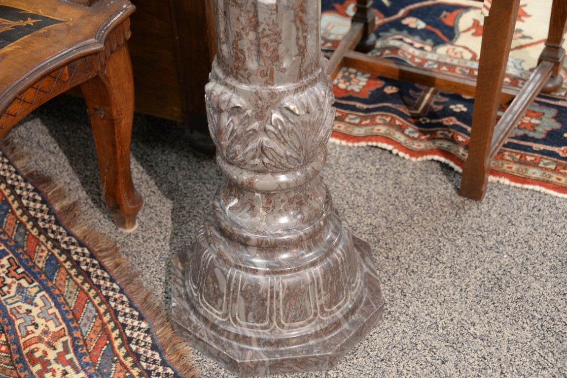 Grey marble pedestal in three parts with red veins. ht. 43 1/4 in.
