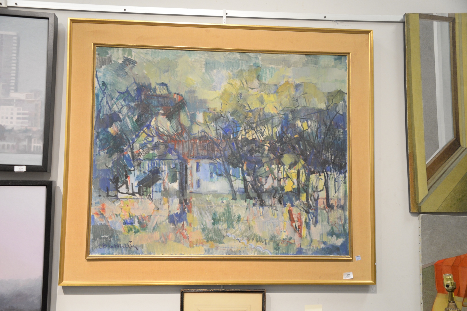 Lot 246: Irene Bataille (Belgian, 1913 – 1970), abstract landscape, oil on canvas, signed lower left I. Bataille, 32″ x 40″. Provenance: The Estate of Alina Roisen, Park Avenue, New York.