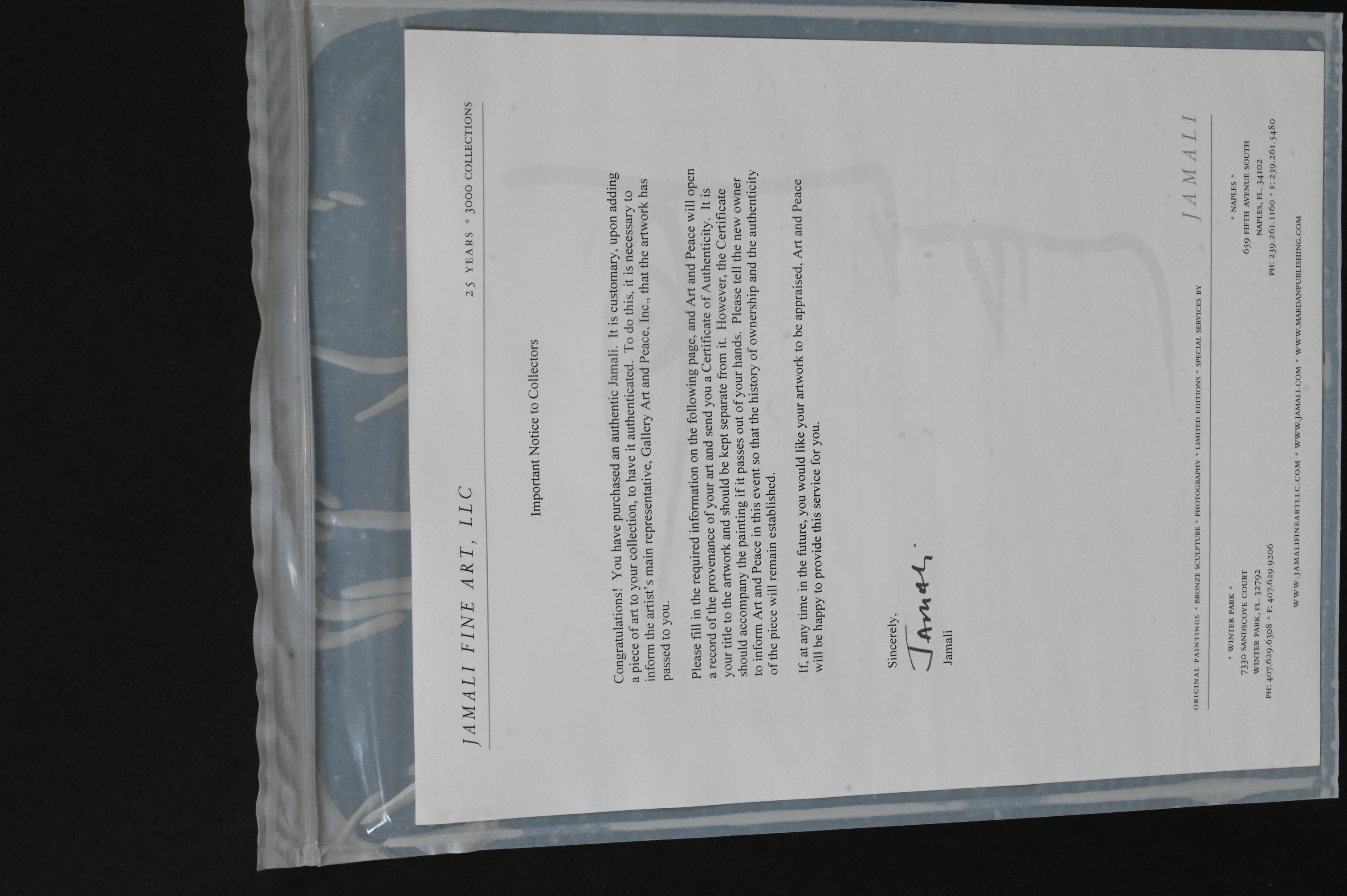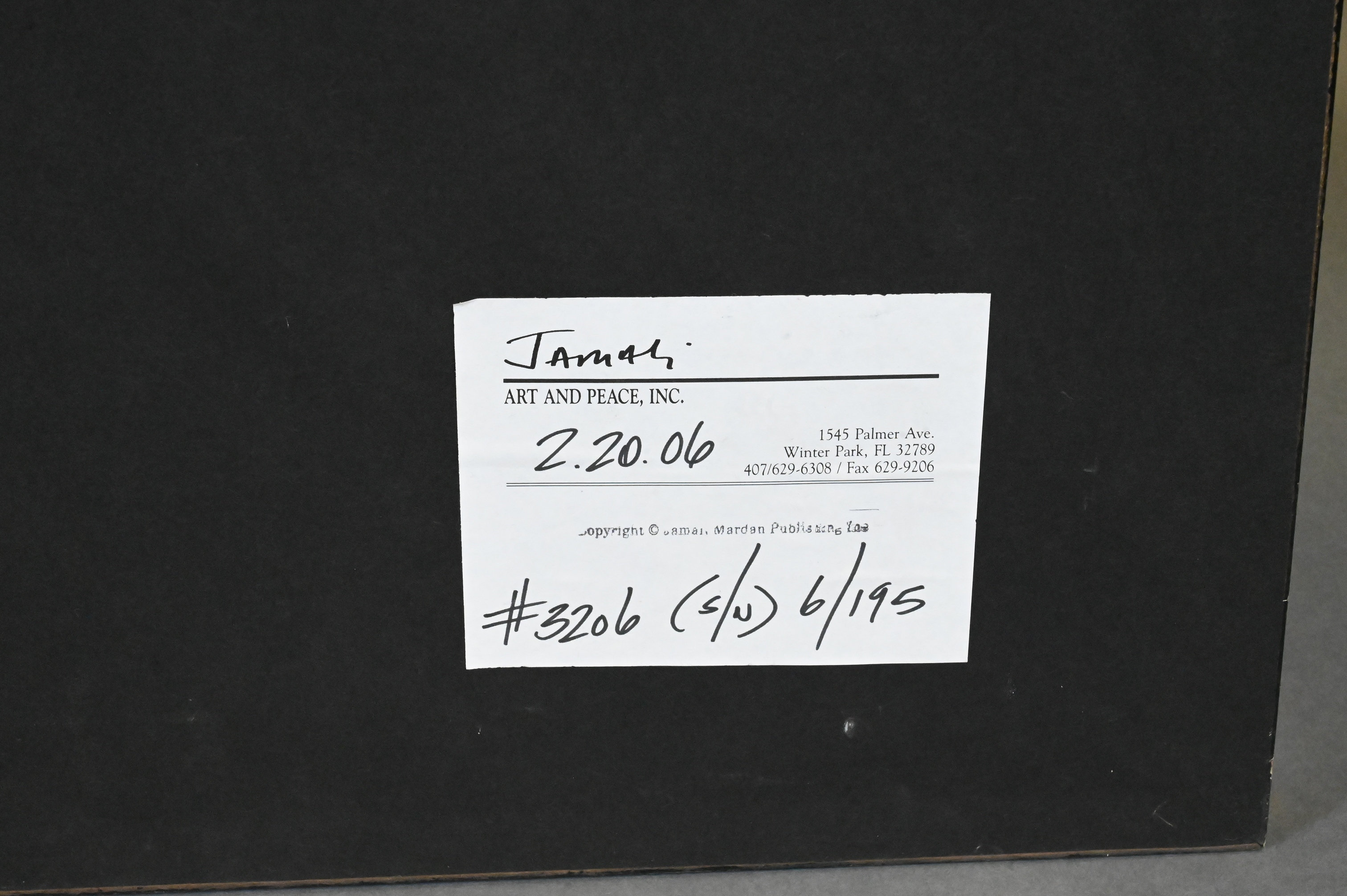 Provenance: Jamali, Art and Peace, Inc., 2/20/2006