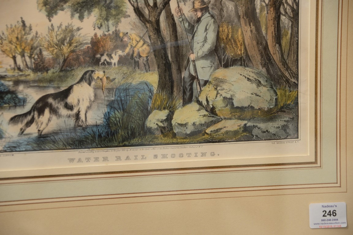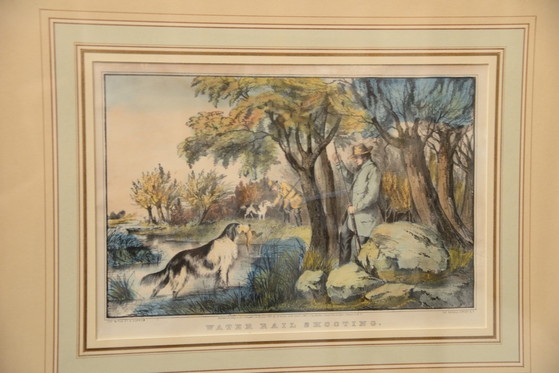 Nathaniel Currier, two hand colored lithographs, After F.F. Palmer 1852, Woodcock Shooting, by N. Currier, sight size 15 1/4 x 21 Water Rail Shooting, sight size 9 x 13 1/4 Provenance: Property from Credit Suisse’s Americana Collection