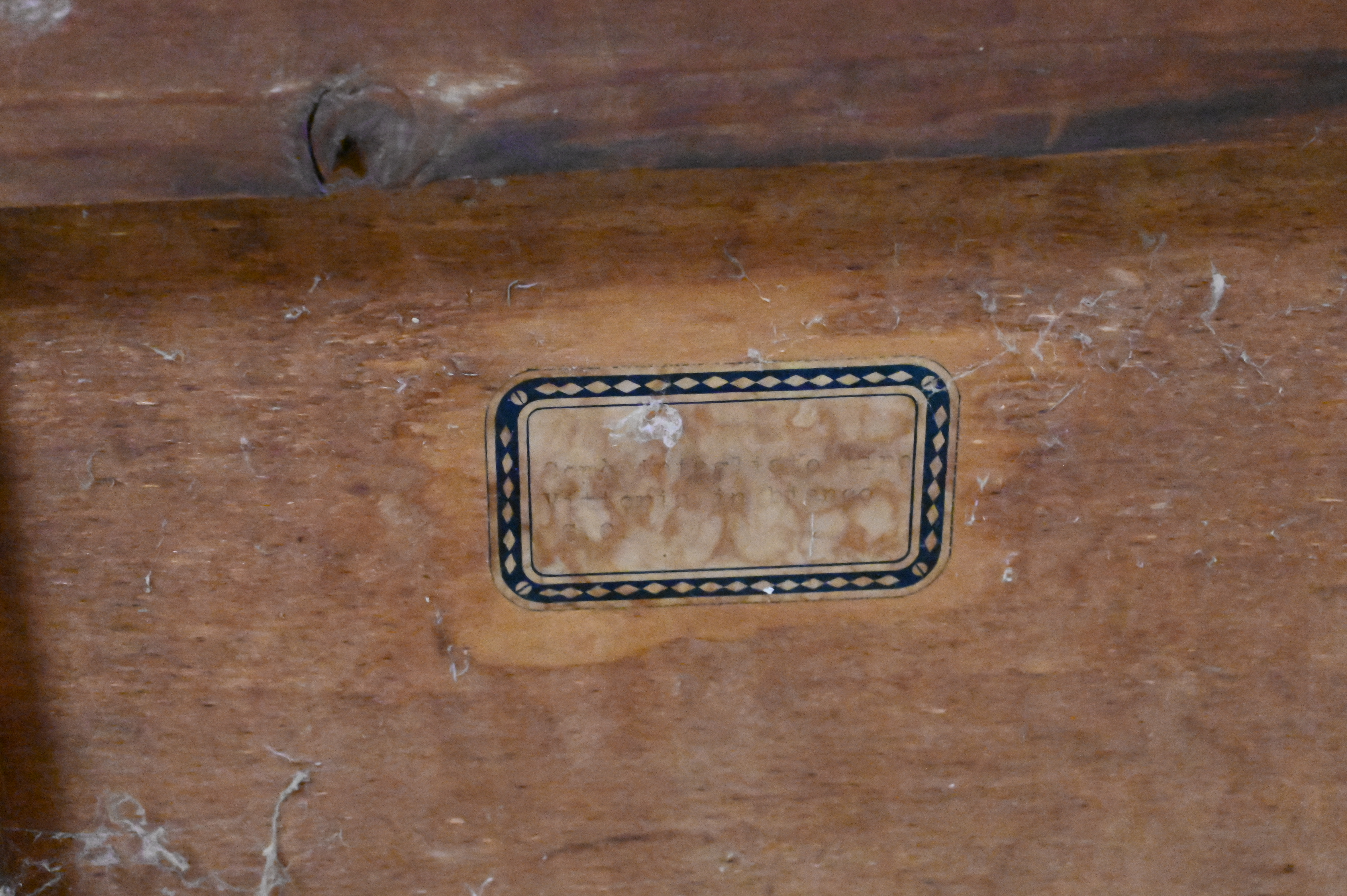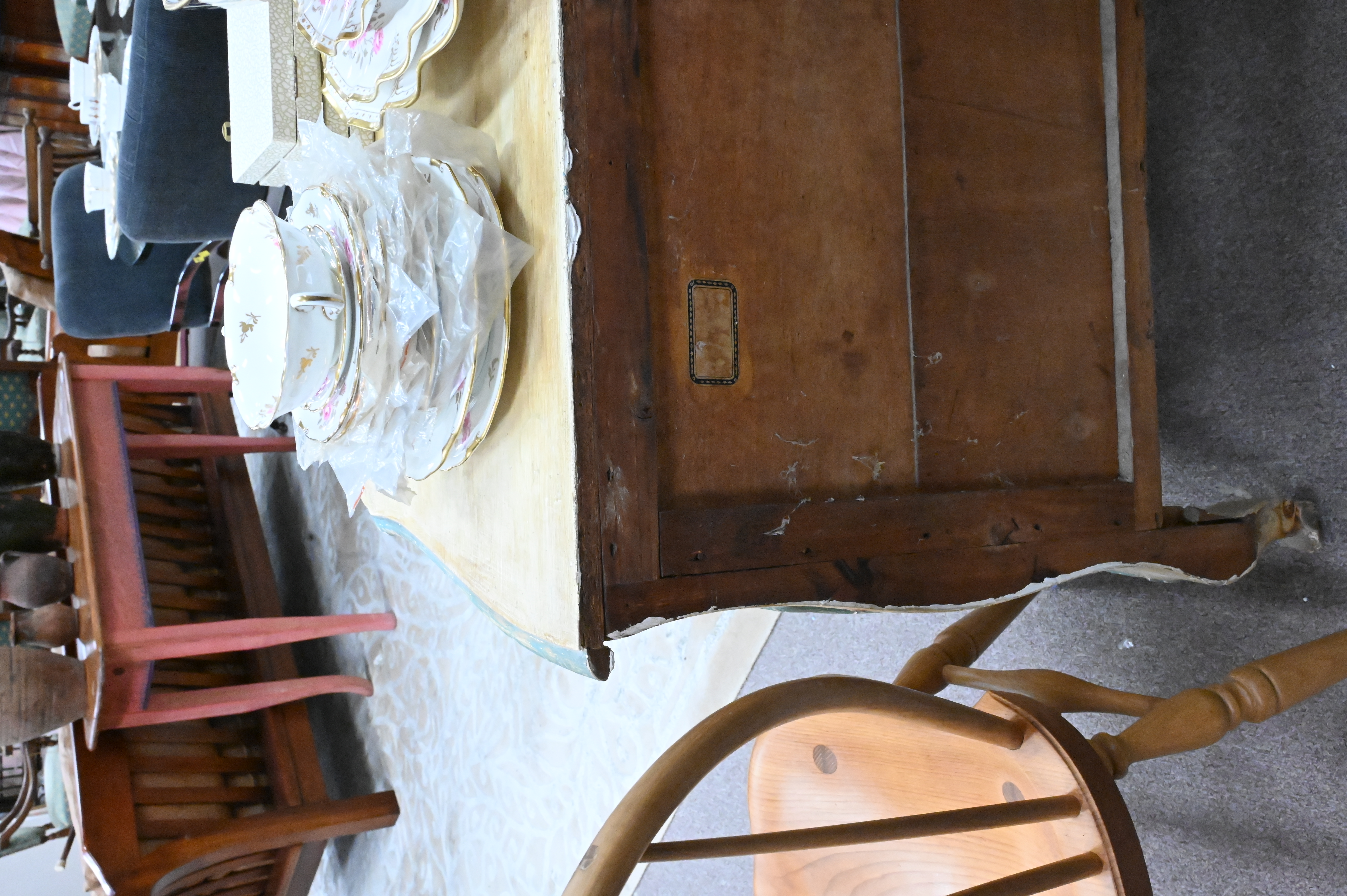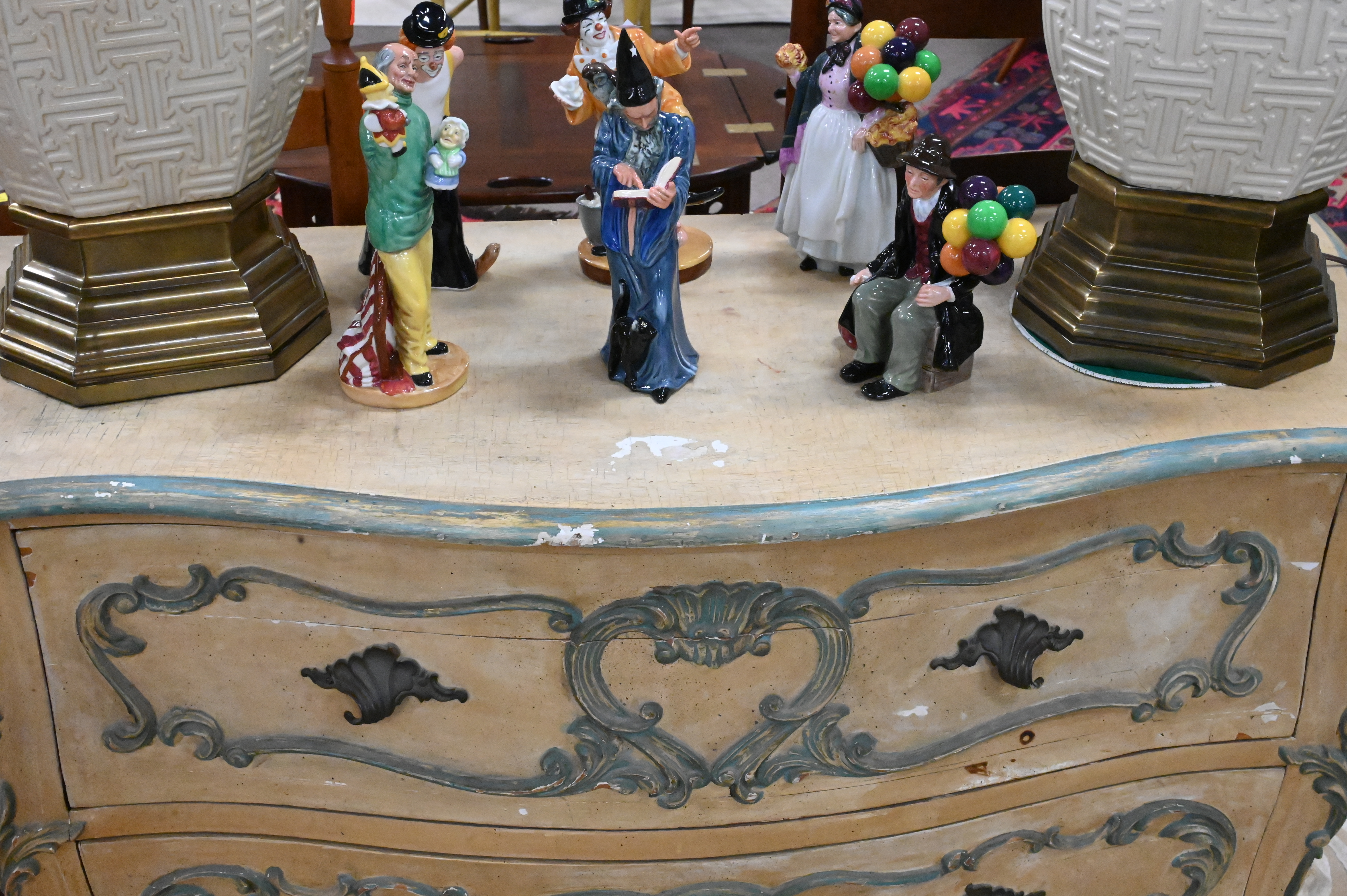 Pair of Louis XV Style Painted Commodes, each having shaped top over two large drawers set on cabriole legs, height 31 inches, having old paper label on back, top 17″ x 45″.
