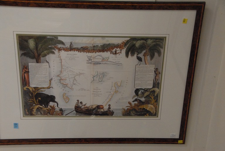 Lot 246: Pair of reproduction framed maps with burl wood inlay frames, 15 x 23 sight size
