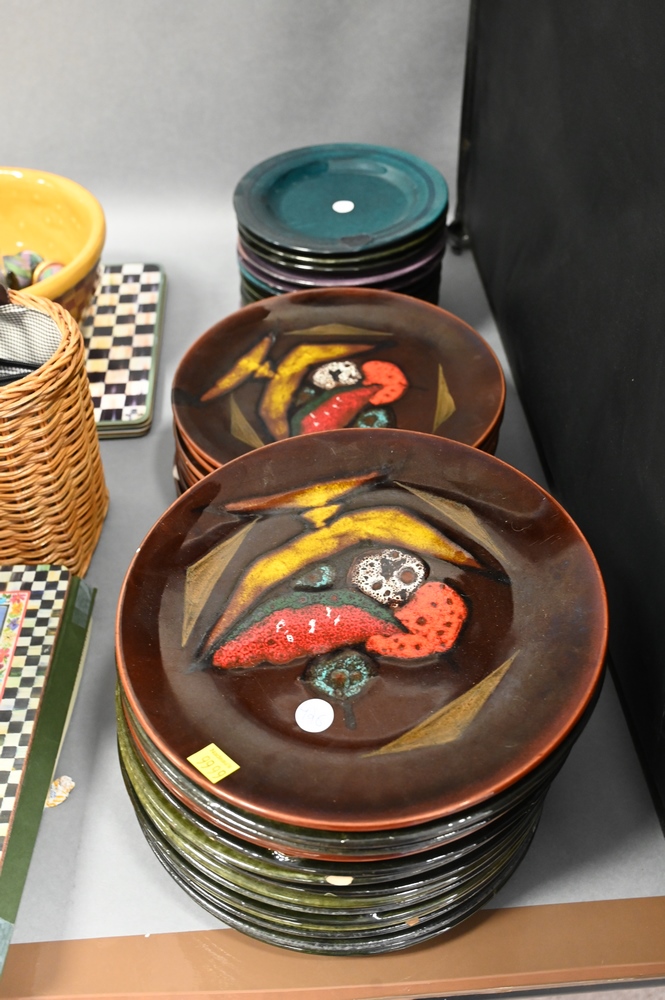 Three Sets of Ceramic Plates, to include 12 dinner, 13 luncheon; Baldelli plates; along with a set of enameled plates, dinner dia 11 inches.