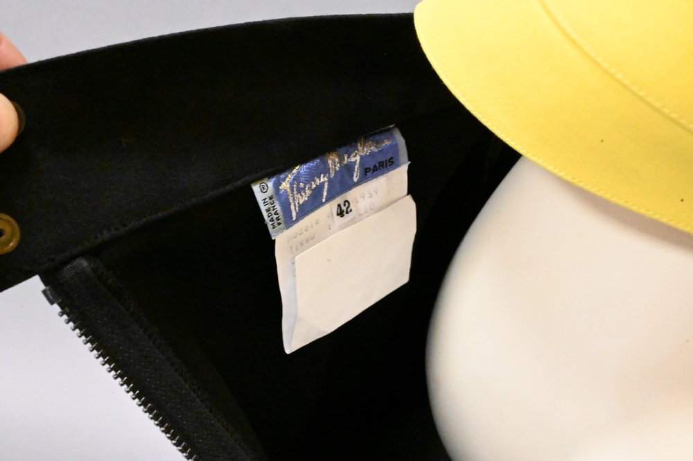 Two Piece Lot, to include vintage Thierry Mugler Paris women’s blazer, size 42, having Fred Hayman Beverly Hills tag, length 25 inches, along with Thierry Mugler skirt.