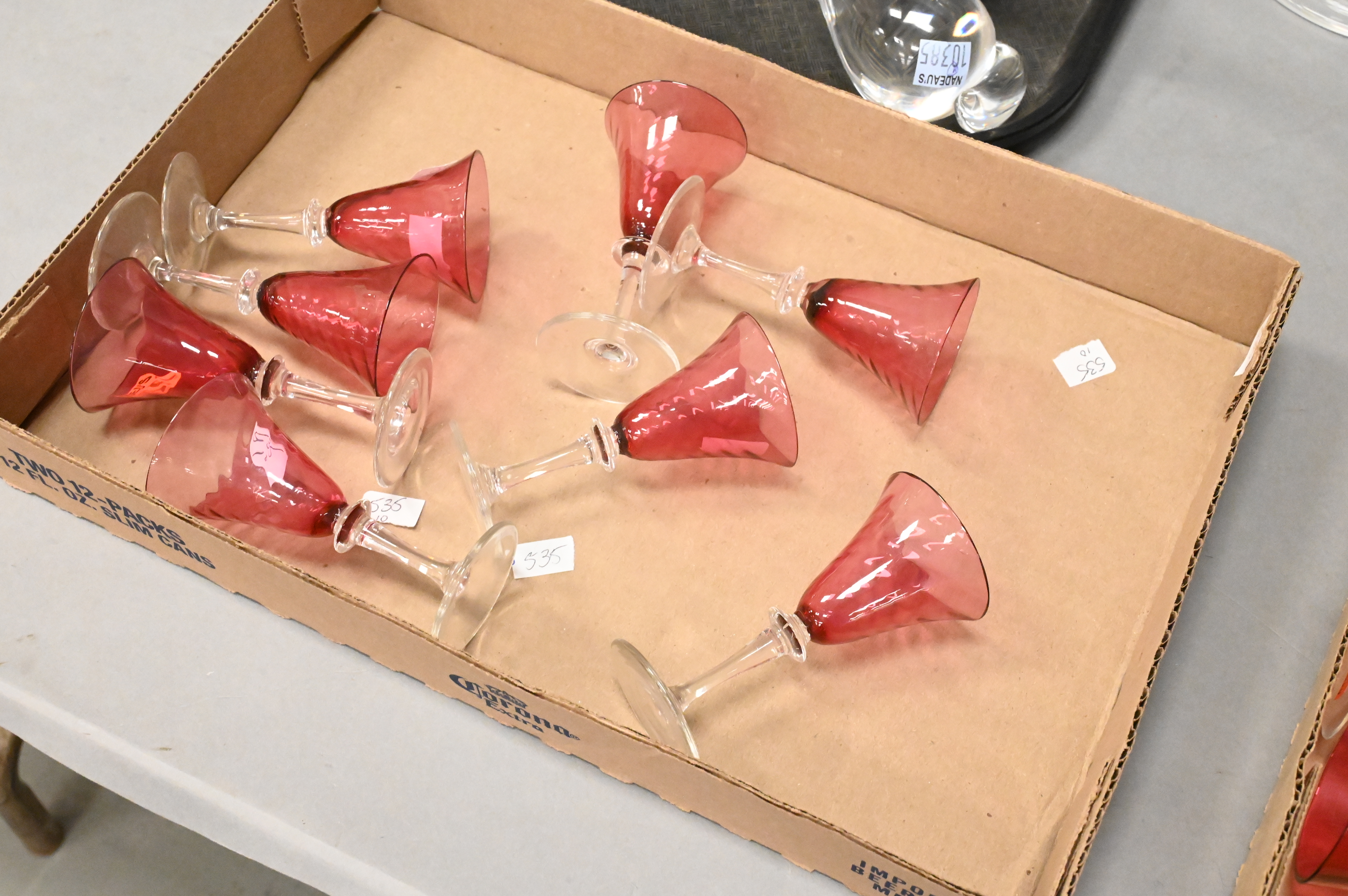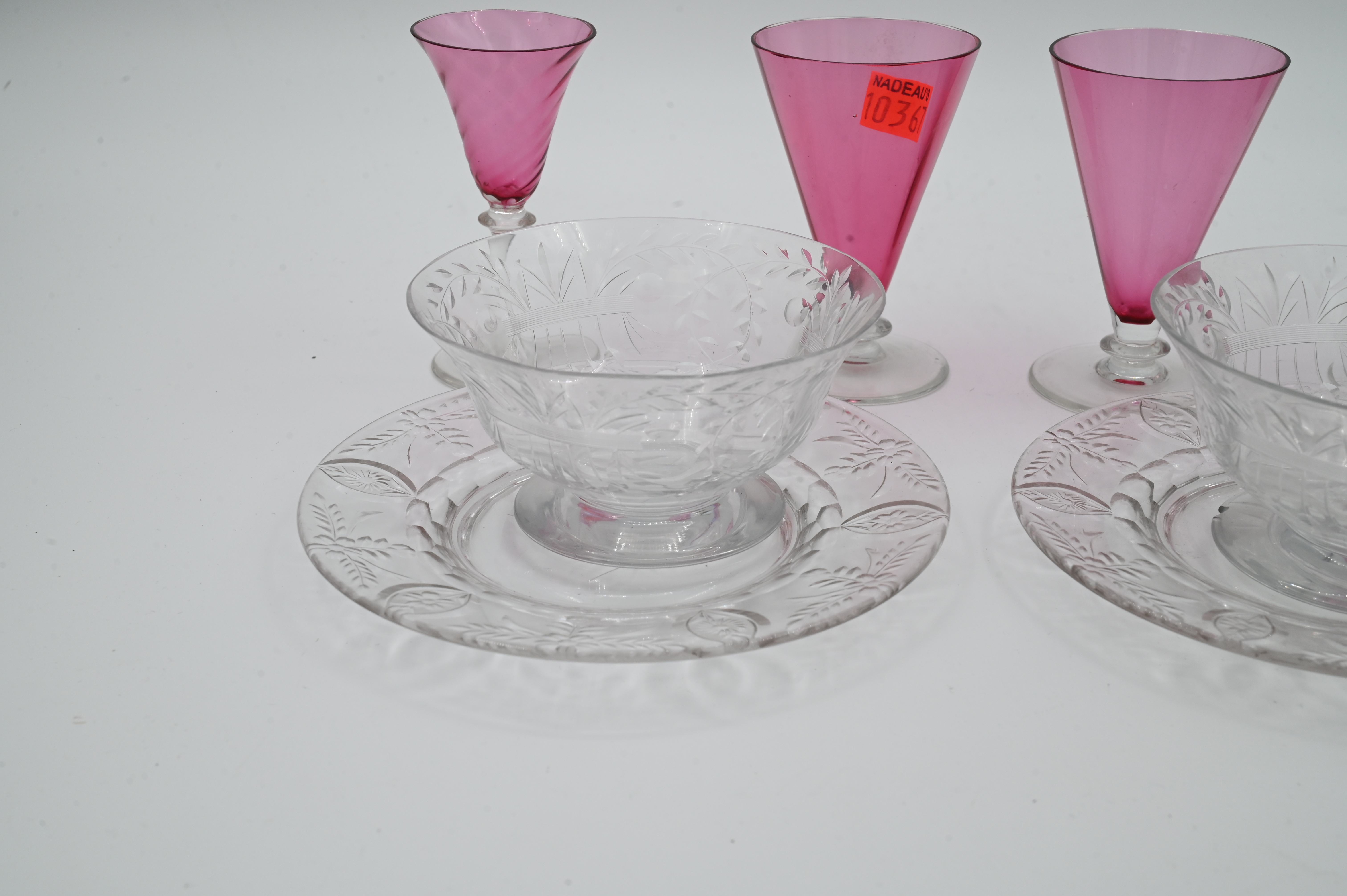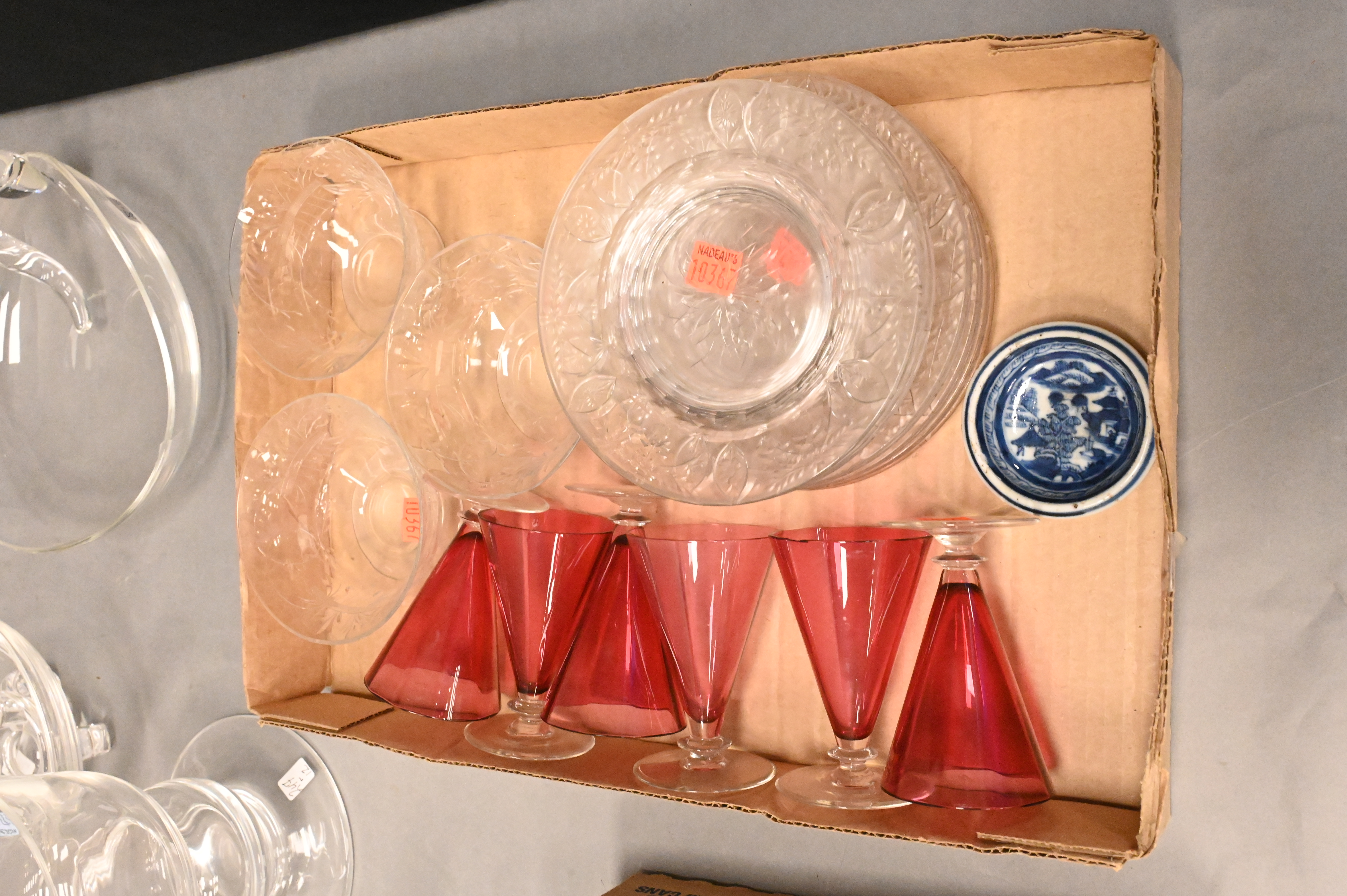 to include 12 Libby underplates, five Libby finger bowls, eight cranberry to clear glasses, plus 11 cranberry swirl to clear cordials
