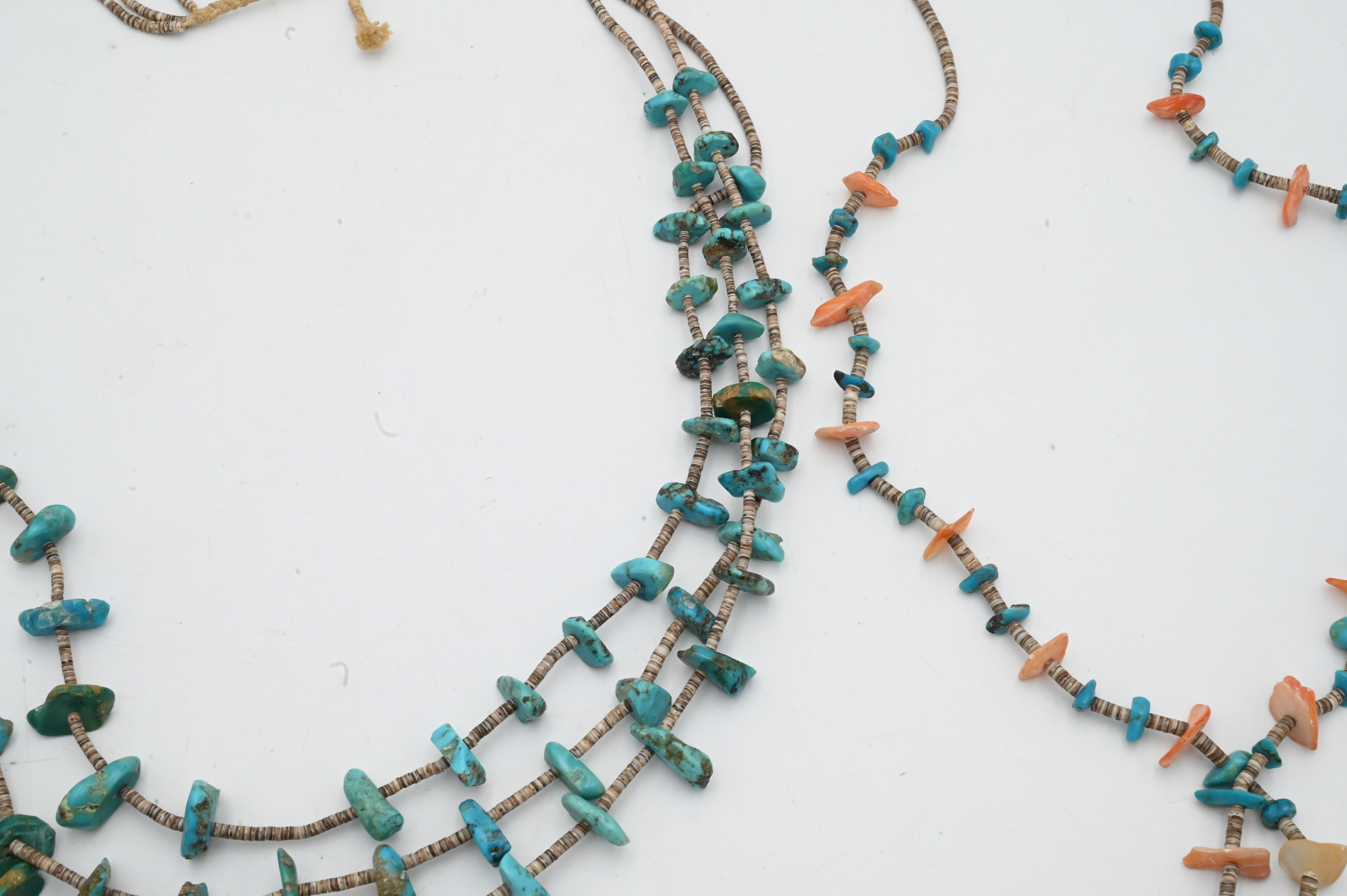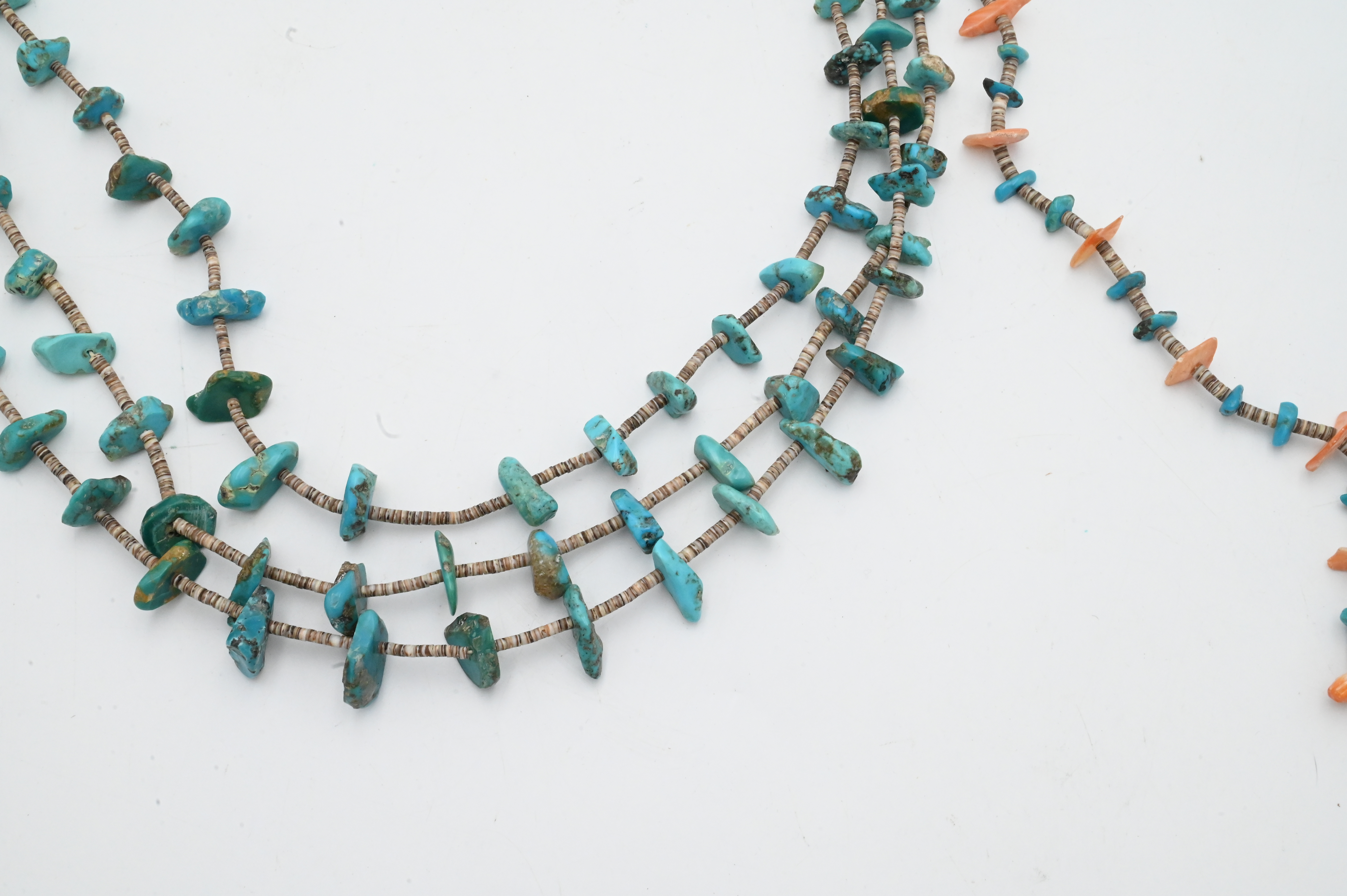 Two Turquoise Necklaces, to include one having some shell, one triple strand, one single strand.