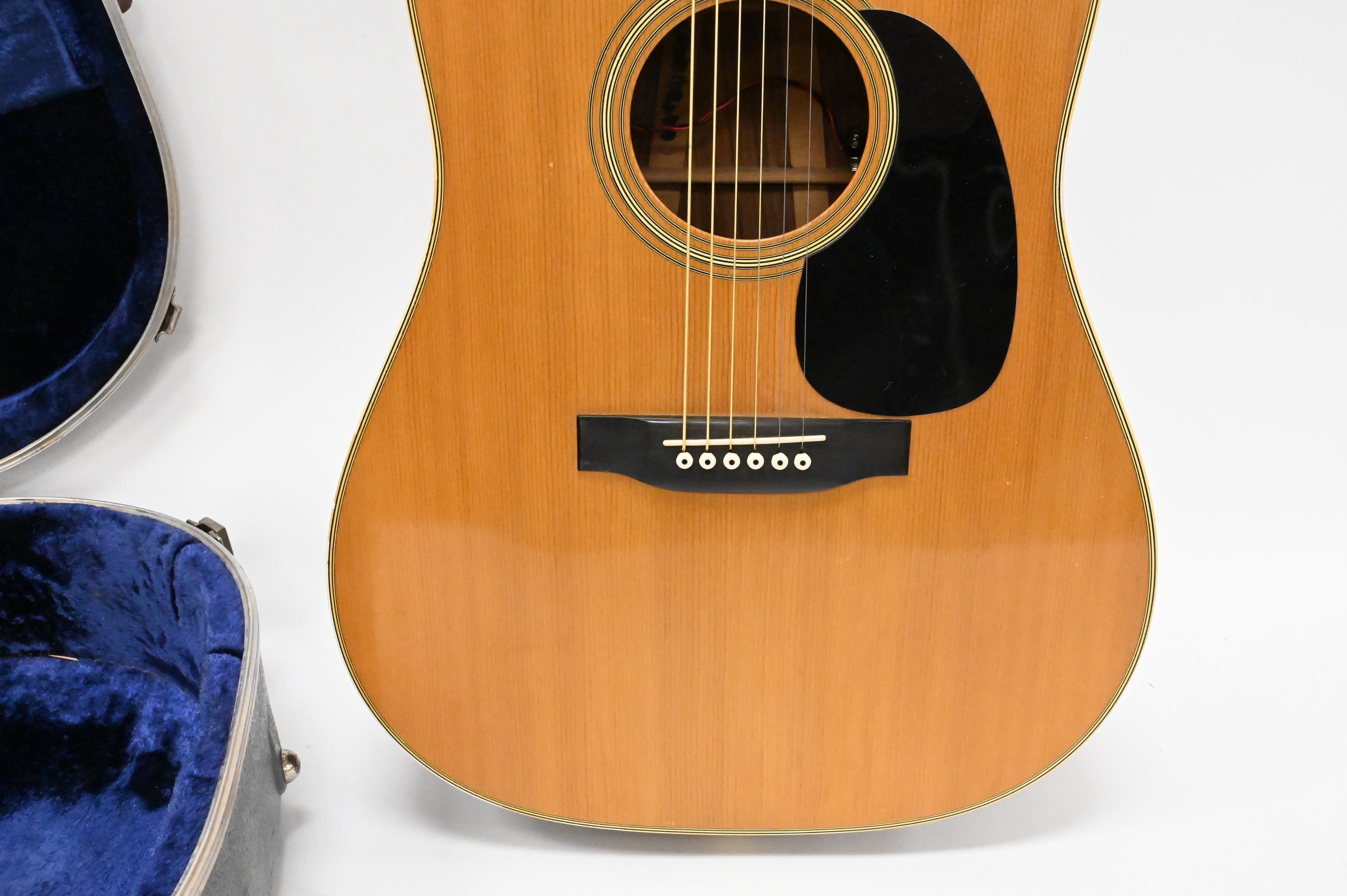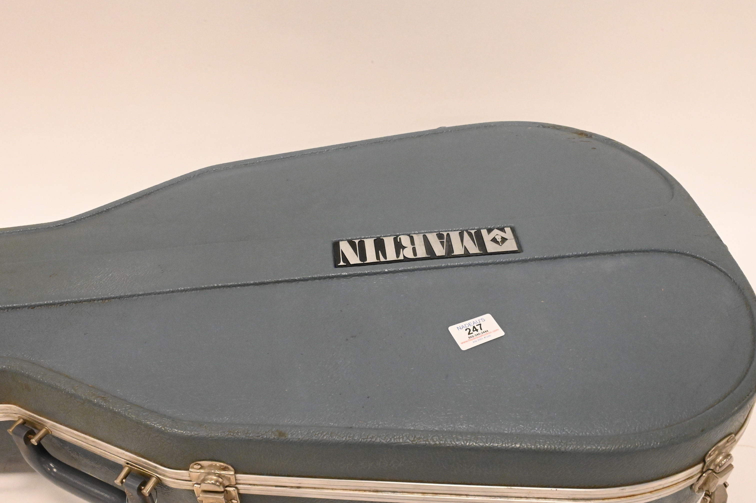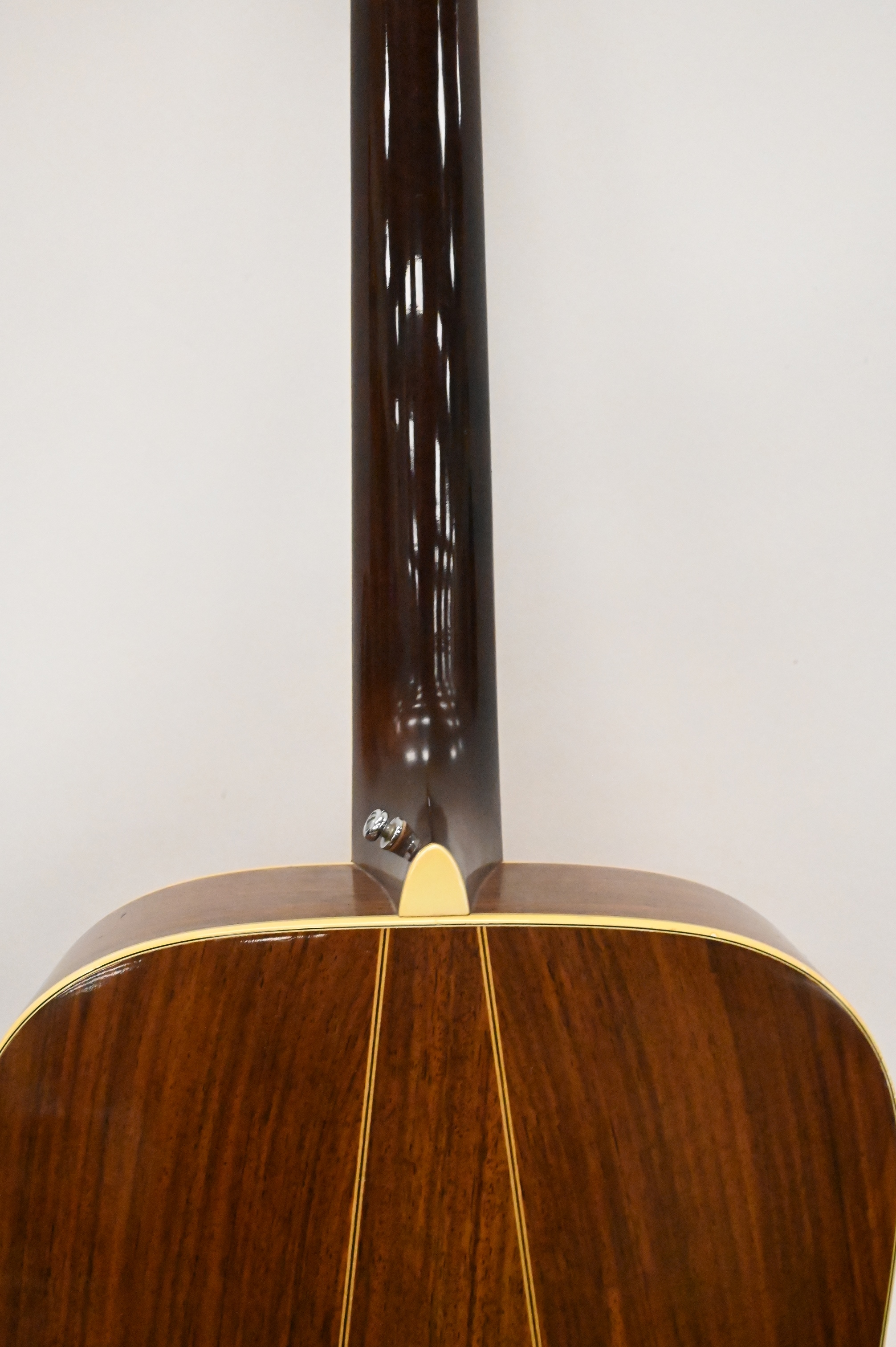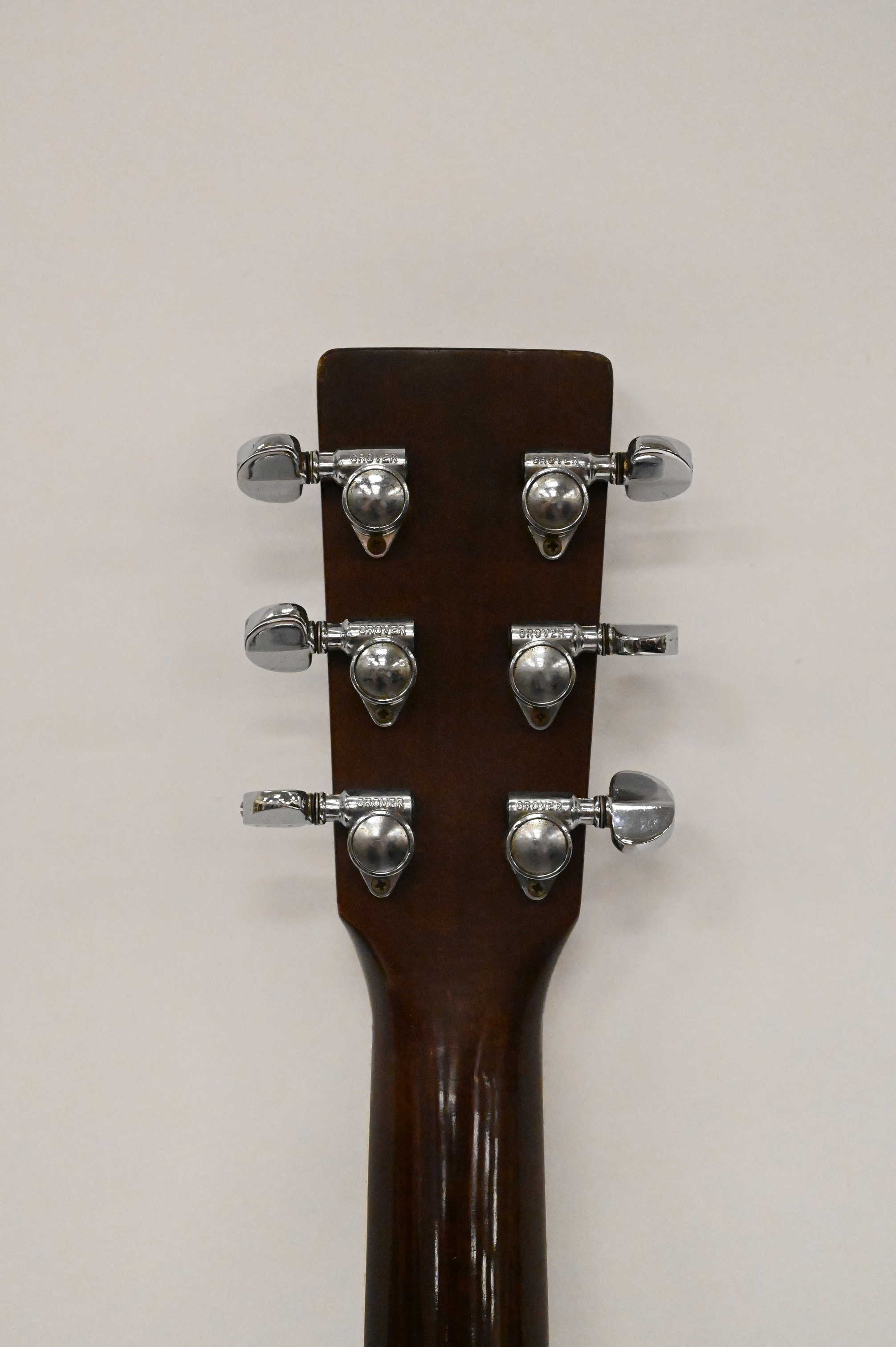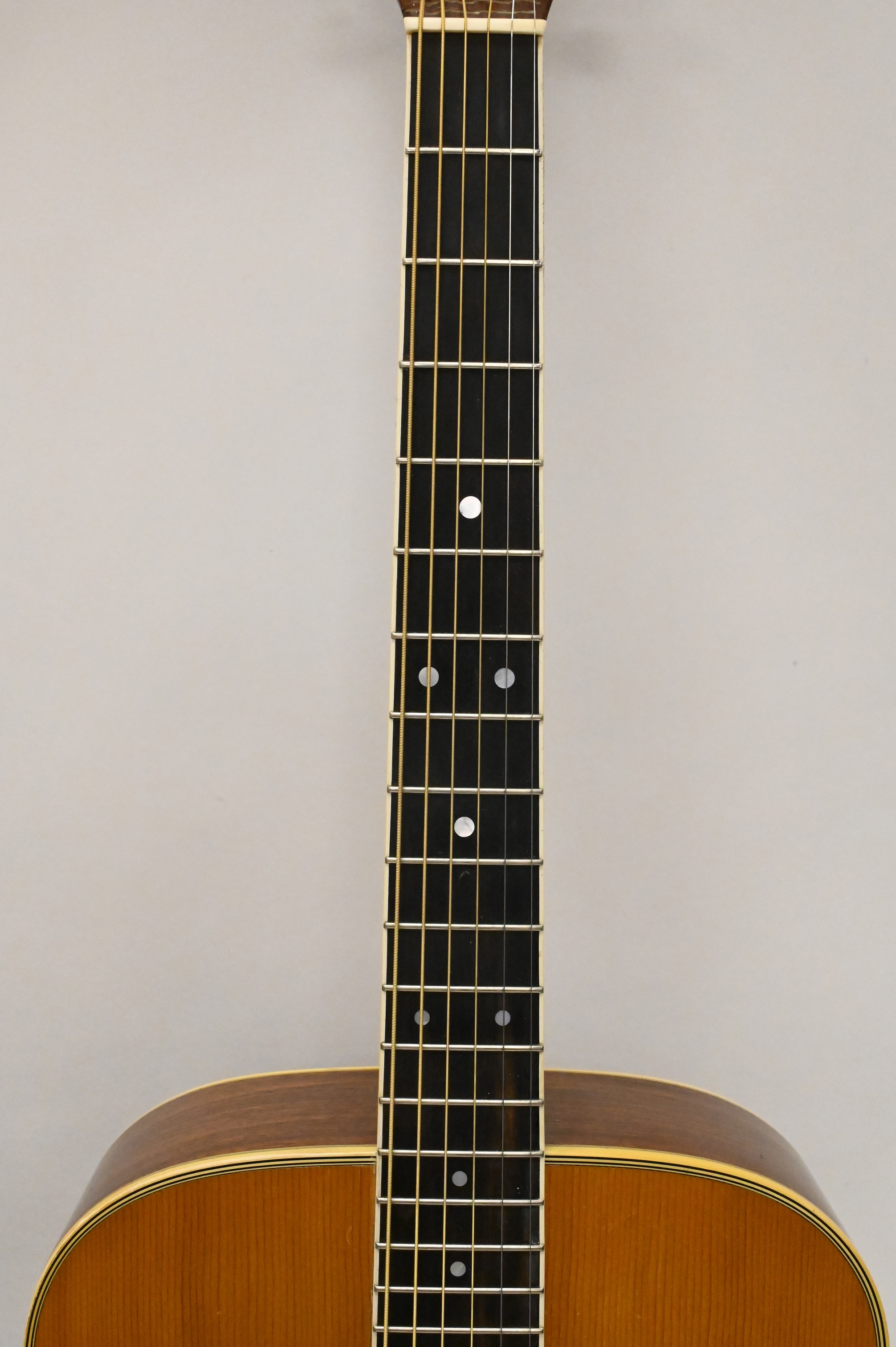 1973 Martin D-35 Guitar, serial #330709 with original hard shell case, Luthier installed Fishman Acoustic matrix pickup, and carved Native American design headstock, height 43 1/2 inches, width 17 inches.