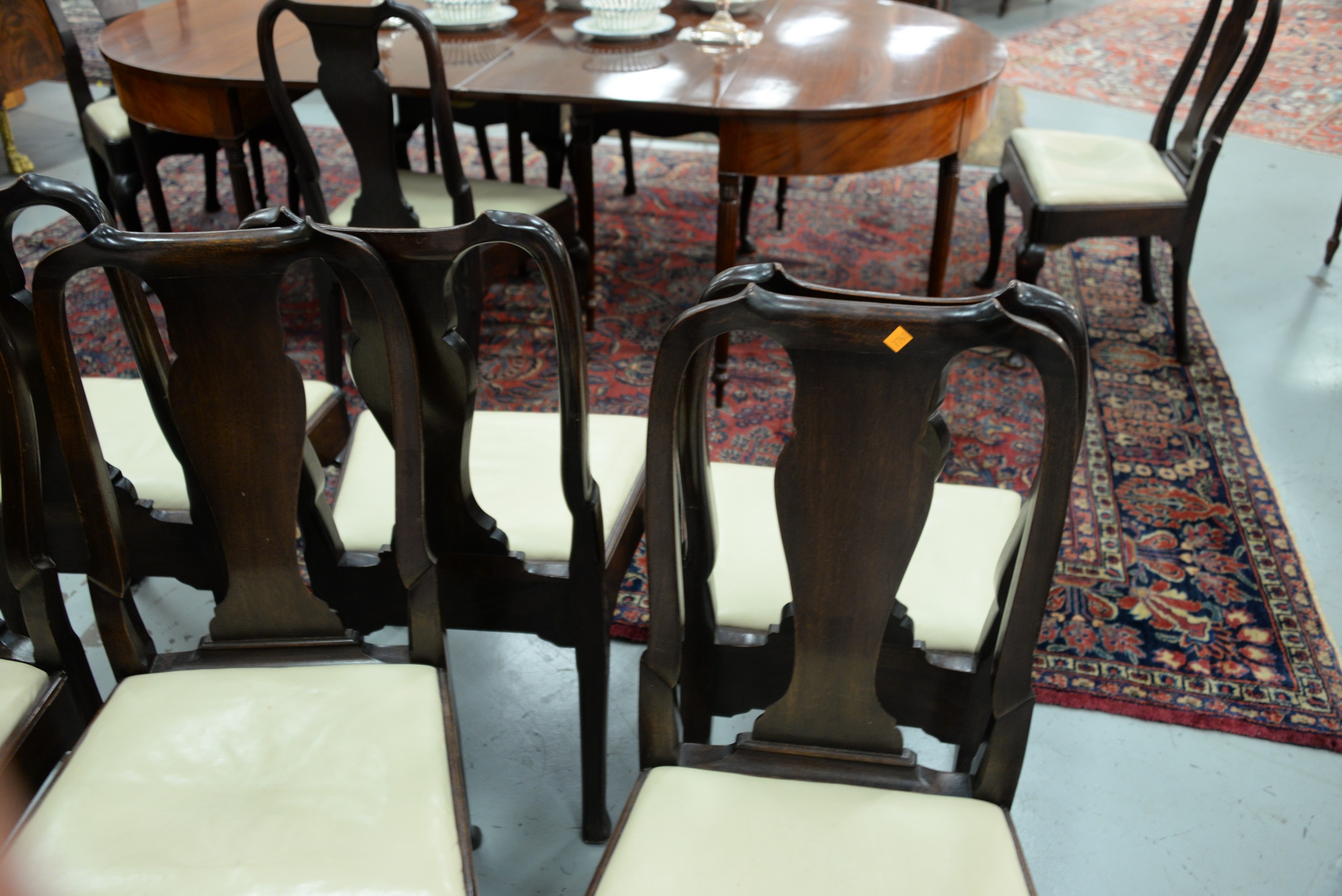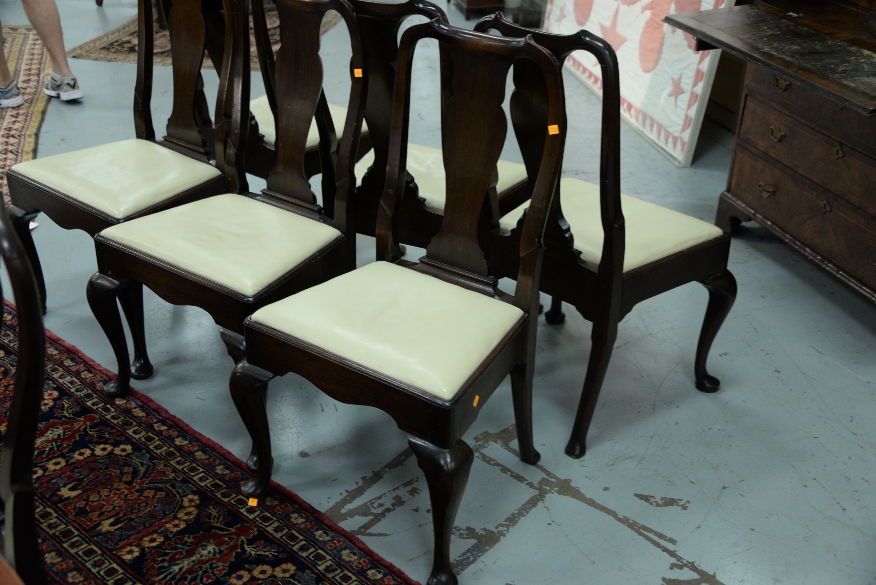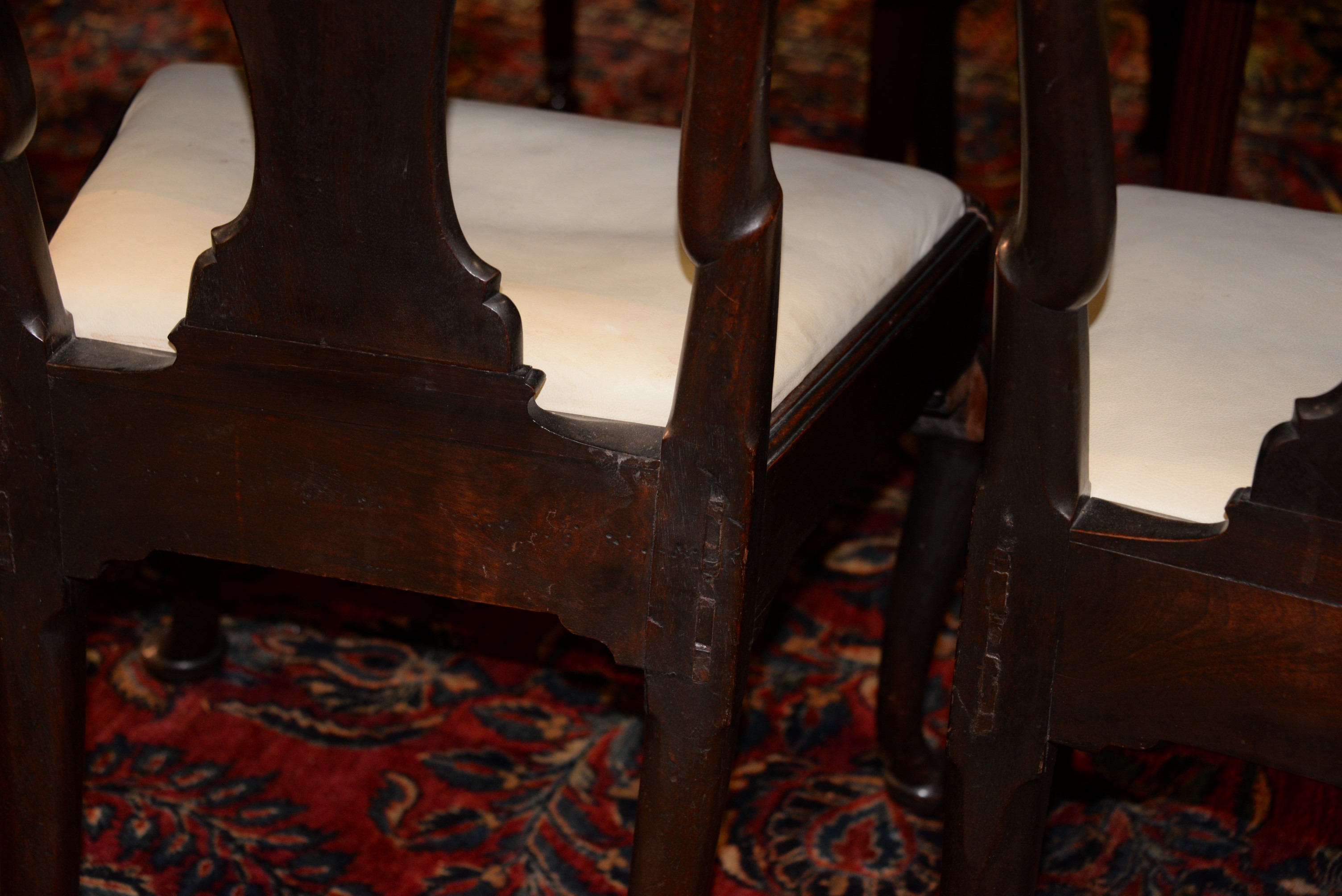 Assembled set of eleven Georgian side chairs, five George II and six reproduction made to match. Provenance: The Estate of Natalie Rafferty