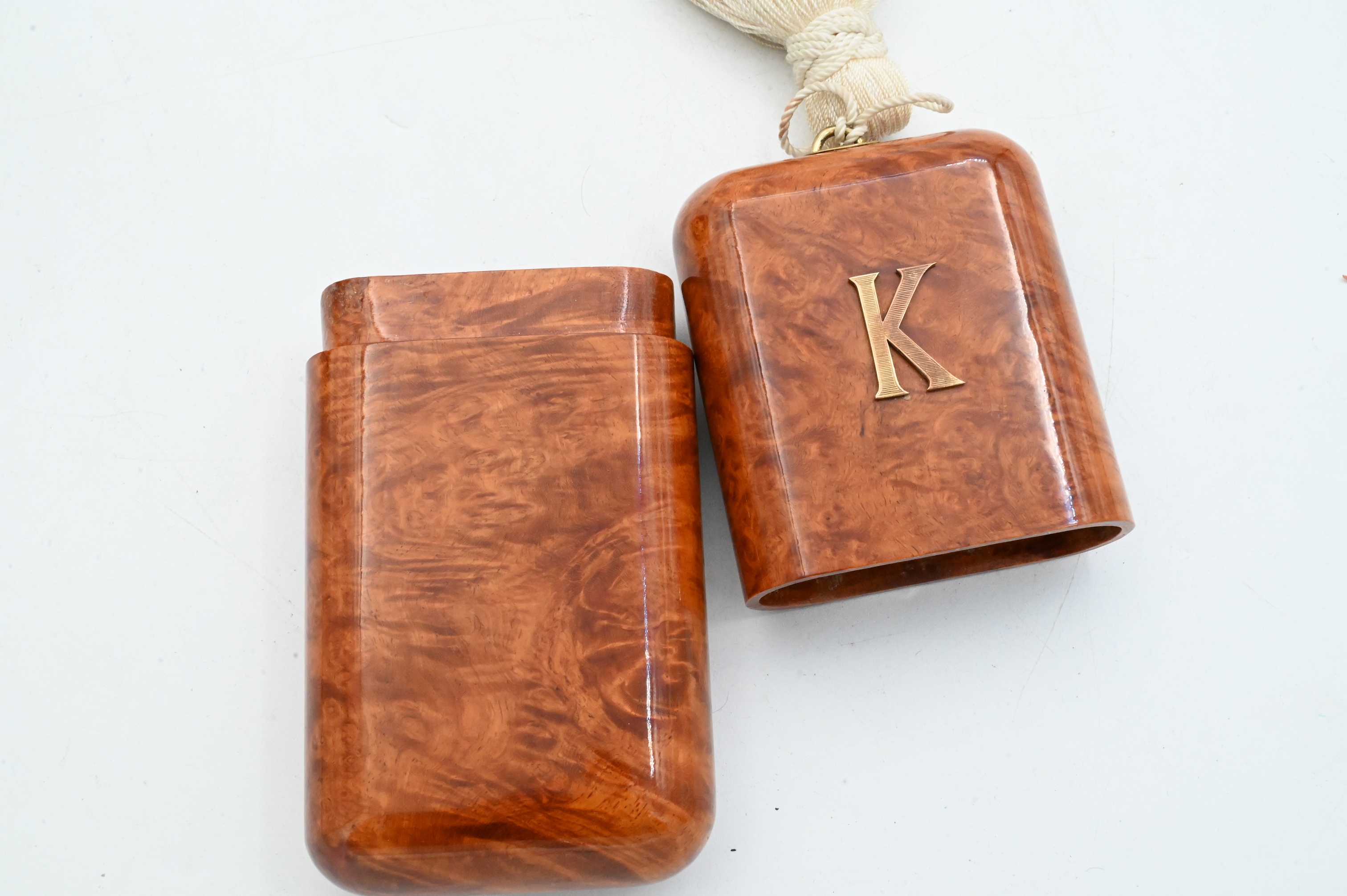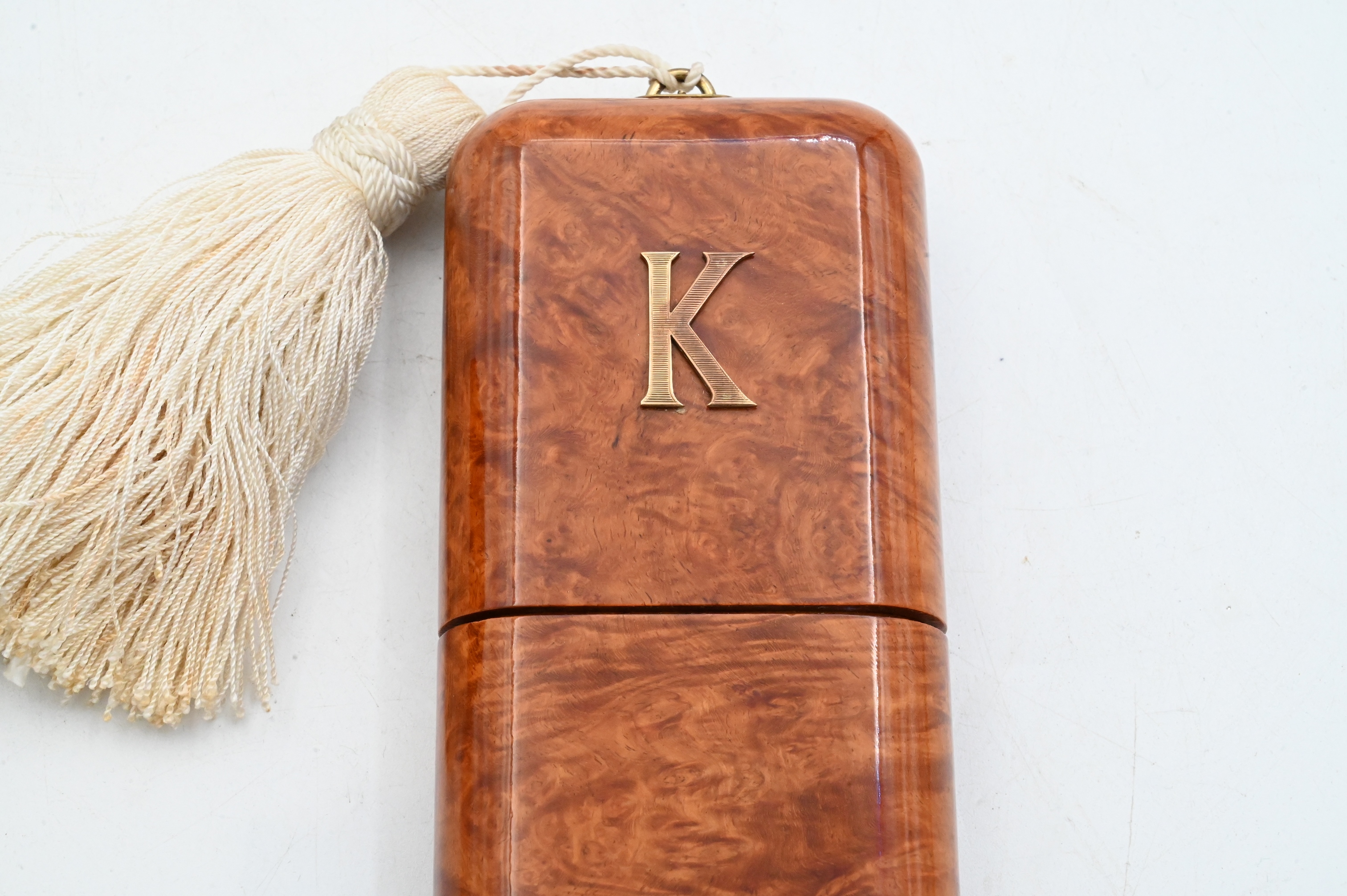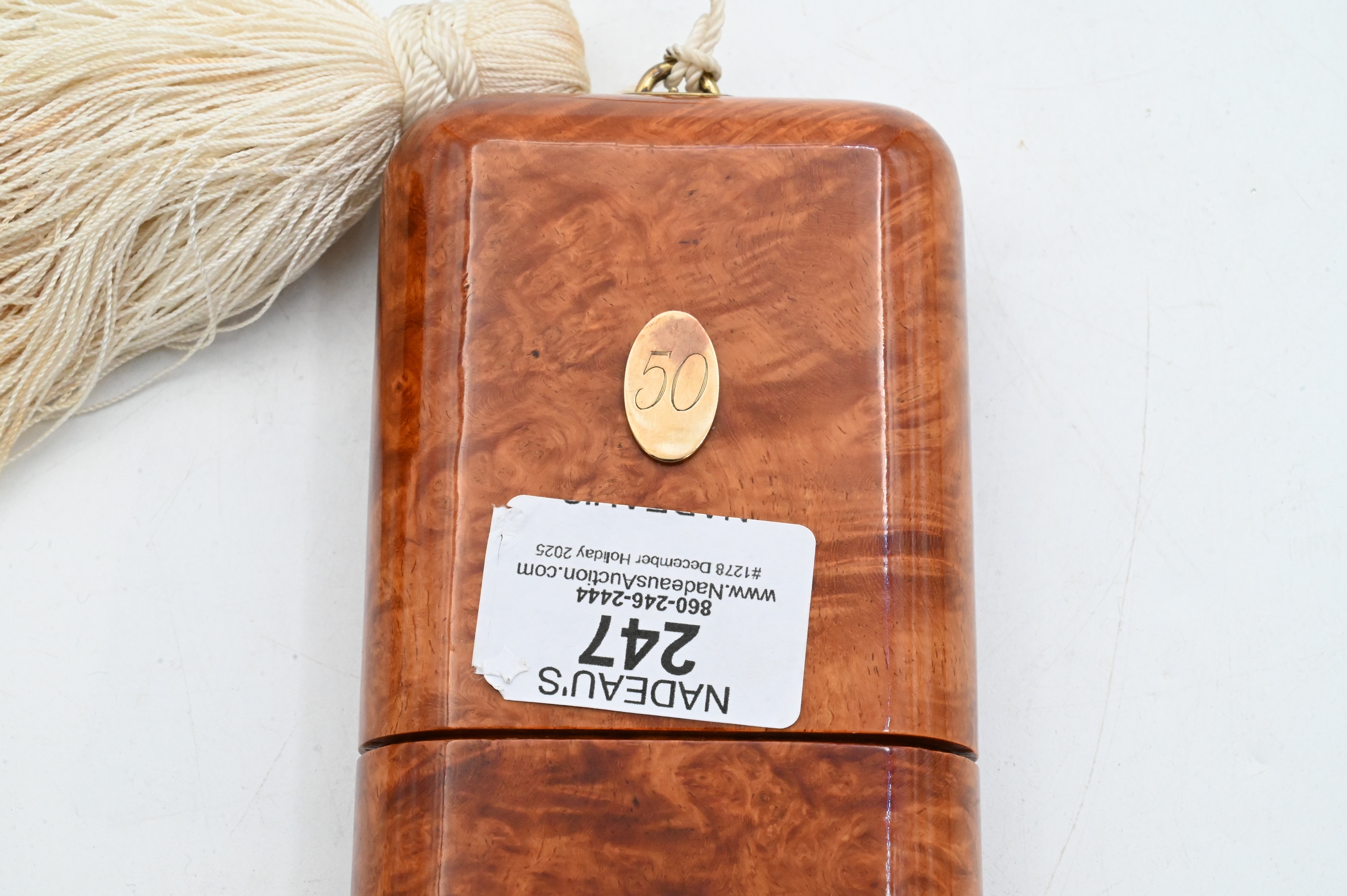 Lot 247: Burlwood Cigar Case with Monogram and Tassel