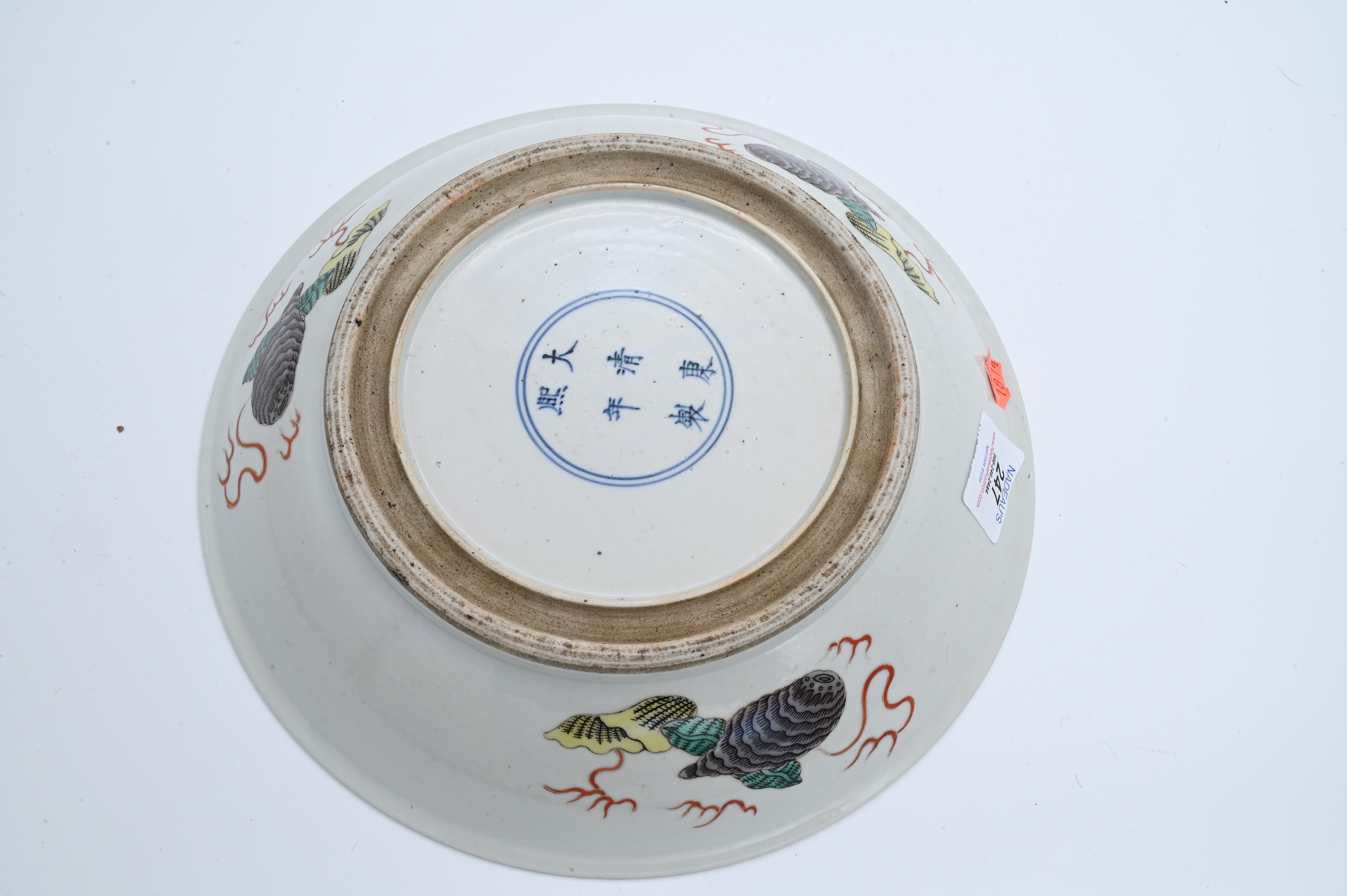 featuring a four clawed dragon amongst crashing waves having Qing Dynasty Kangxi six character marks to base