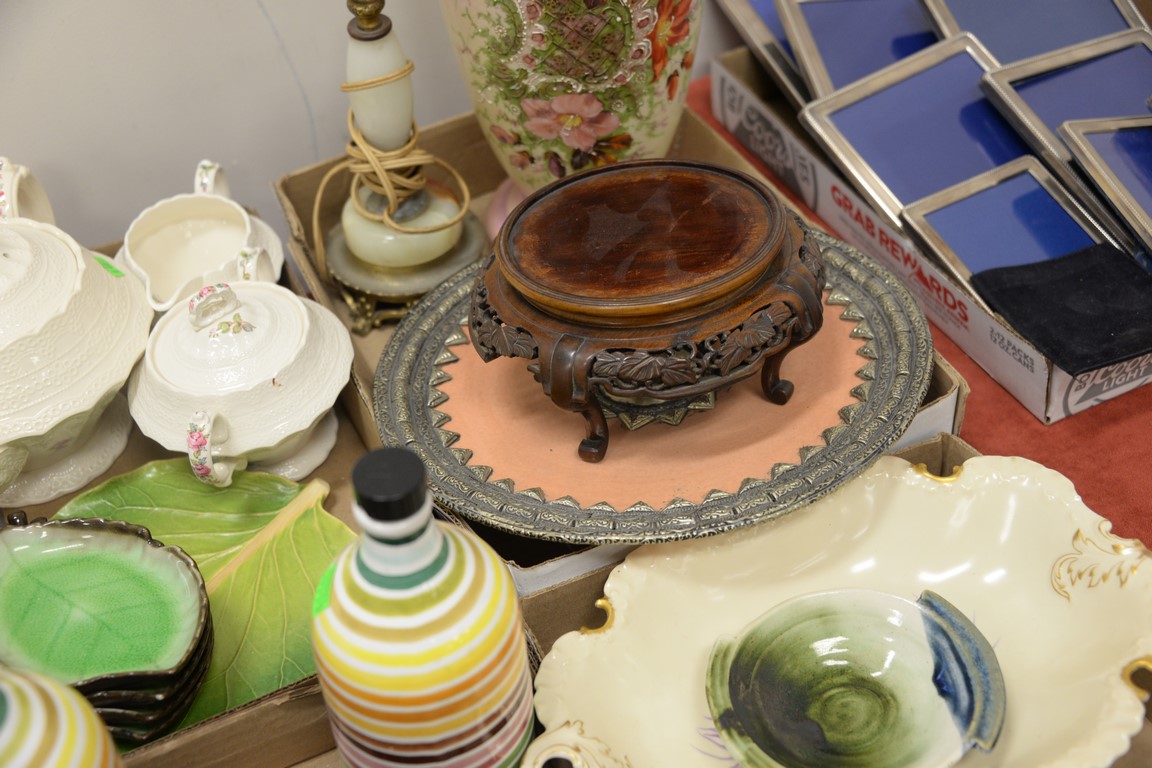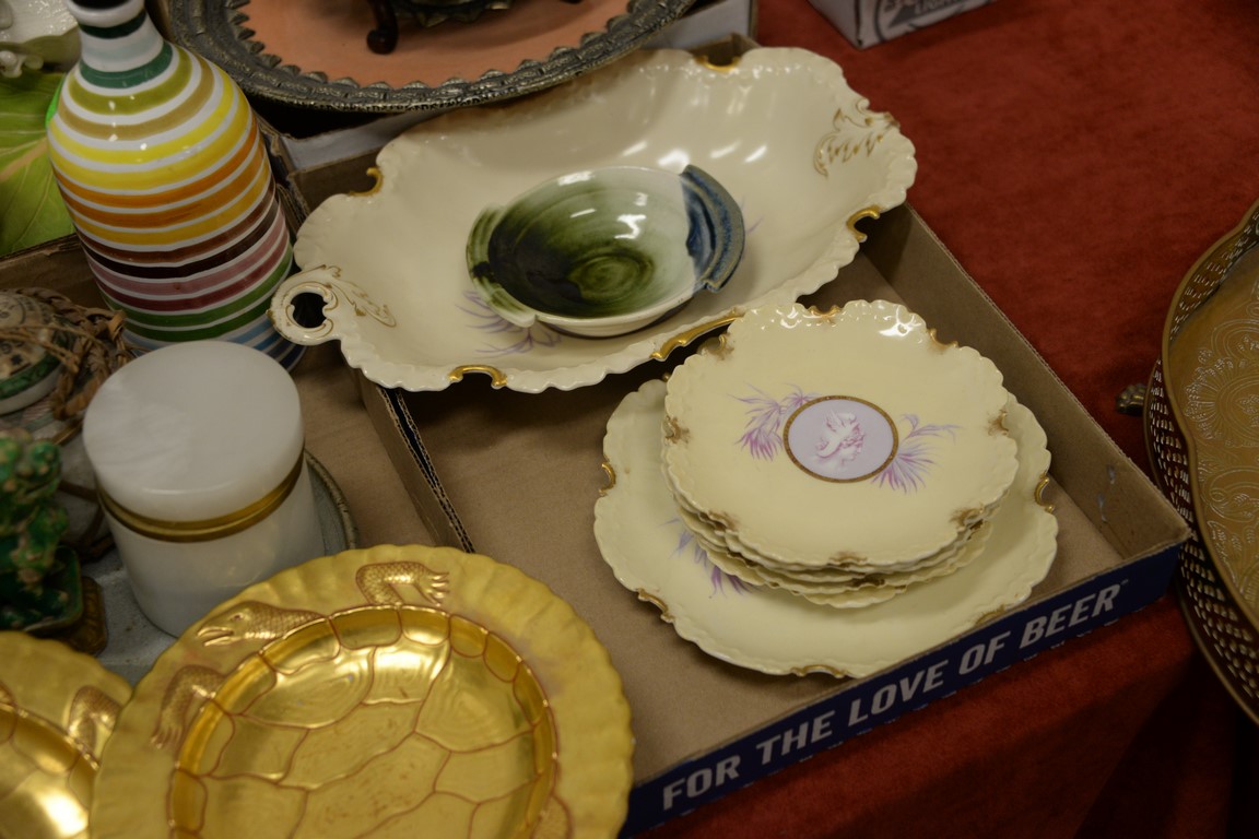 Four box lots to include gilt turtle plates, cameo porcelain set, Bristol glass vase, Mid-Eastern dish, etc.