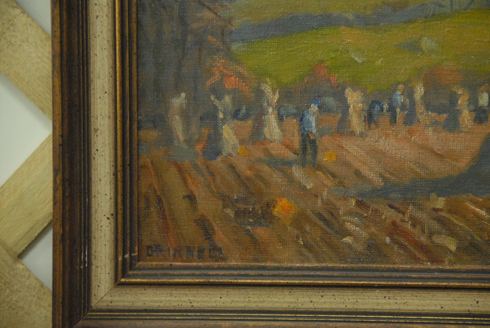George Victor Grinnel 1878-1946 HARVEST TIME oil on canvas signed lower left Grinnell. 15 x 12