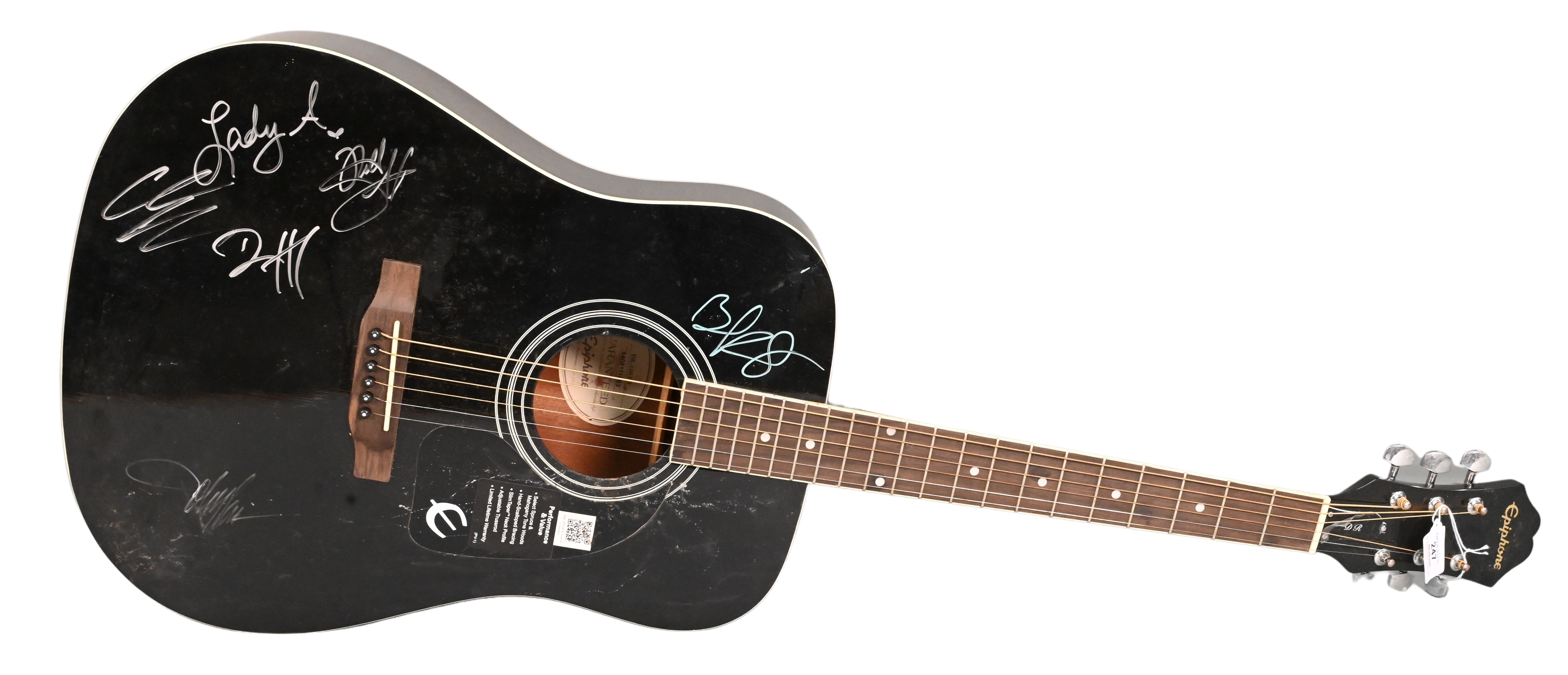 Lady Antebellum Autographed Epiphone DR-100EB Guitar, along with a certificate of authenticity and in original box, serial #1408111863, length 42 inches.