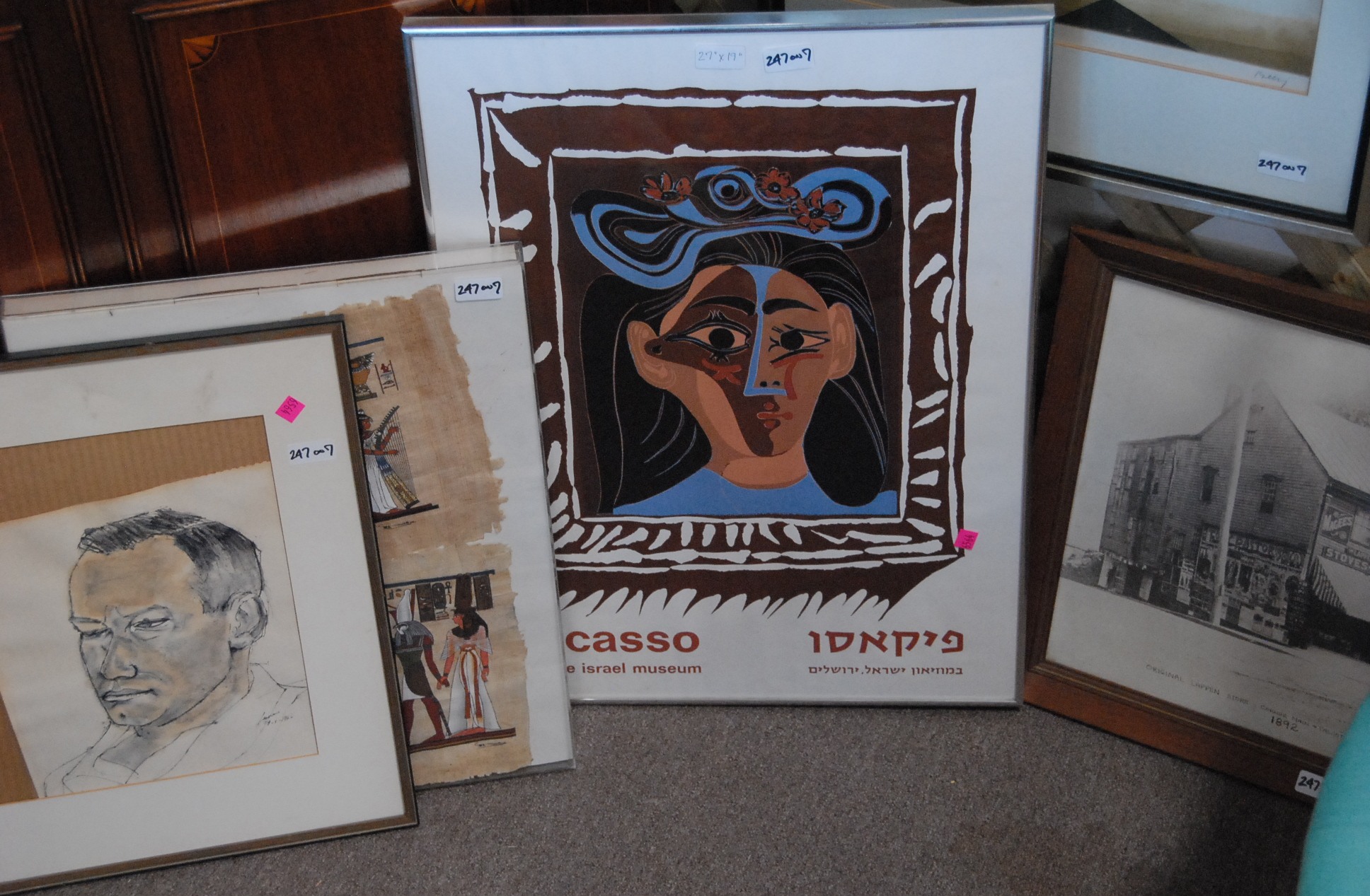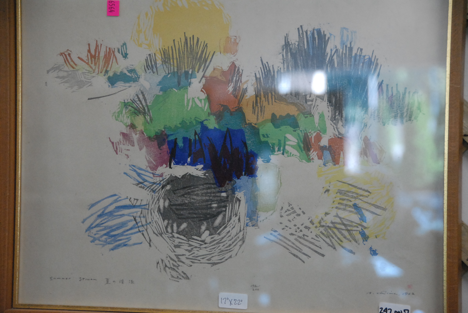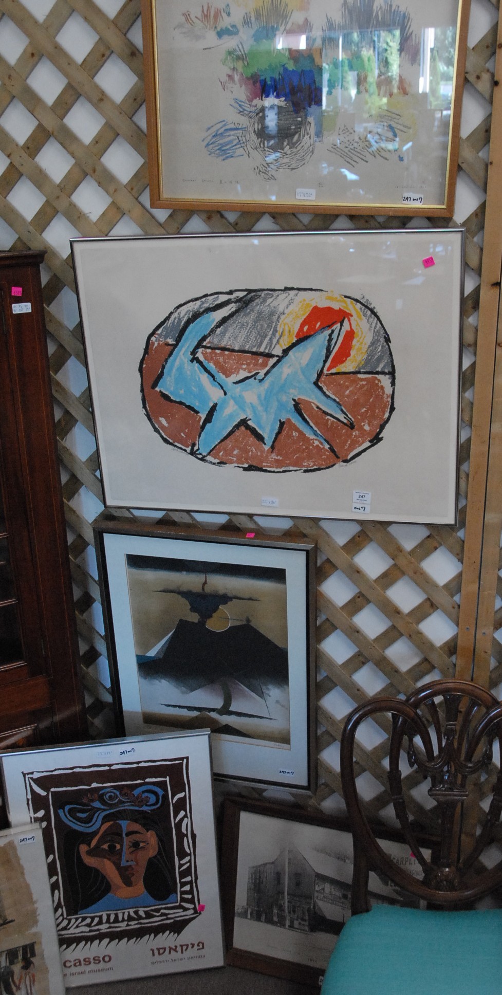 Seven prints Tuvia Beeri Israel 1929, A. Udine 1962 Summer Stream 192/200, Marcel Janco Shapes 22 x 30, and four miscellaneous prints.
