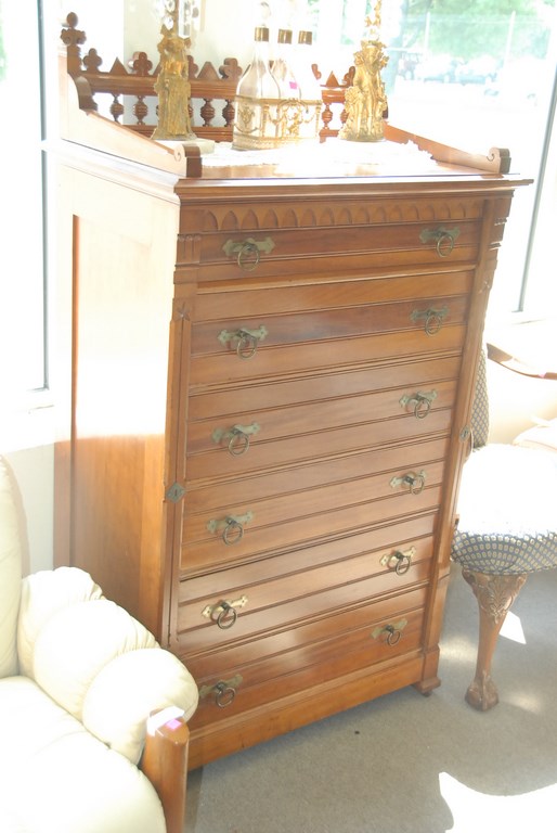 Victorian lockside chest with gallery, ht. 60in. wd. 35in.