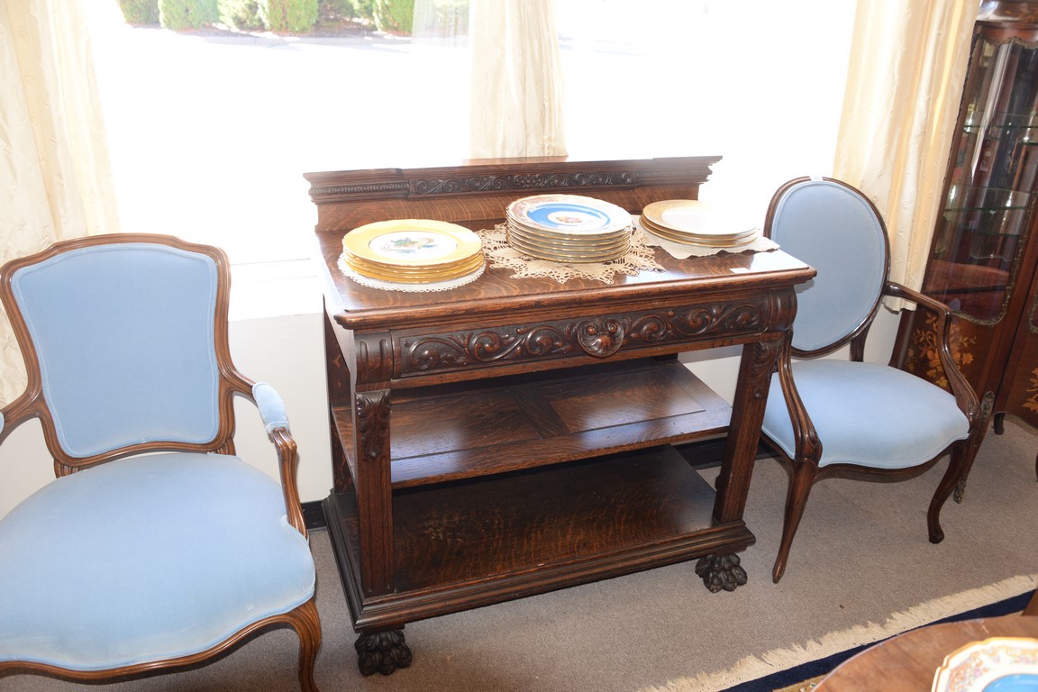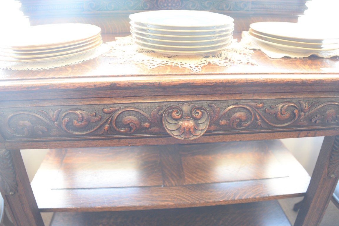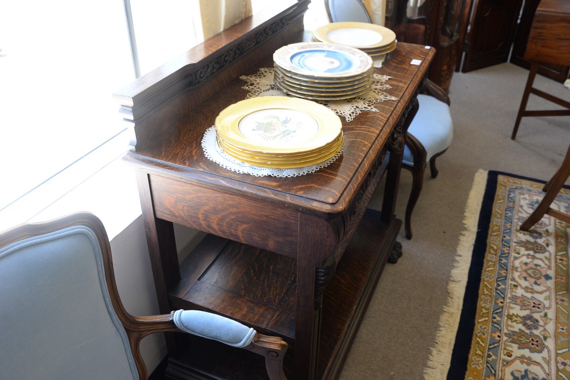 Victorian oak server. ht. 40in., wd. 40in., dp. 19in.
