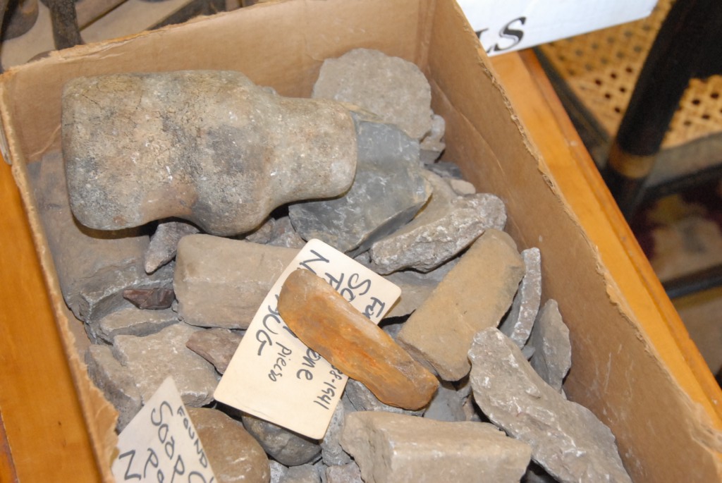 Box lot of various stone and Indian tools found in Nayaug, CT. and fragments.