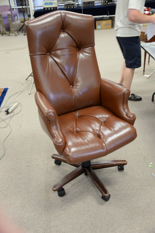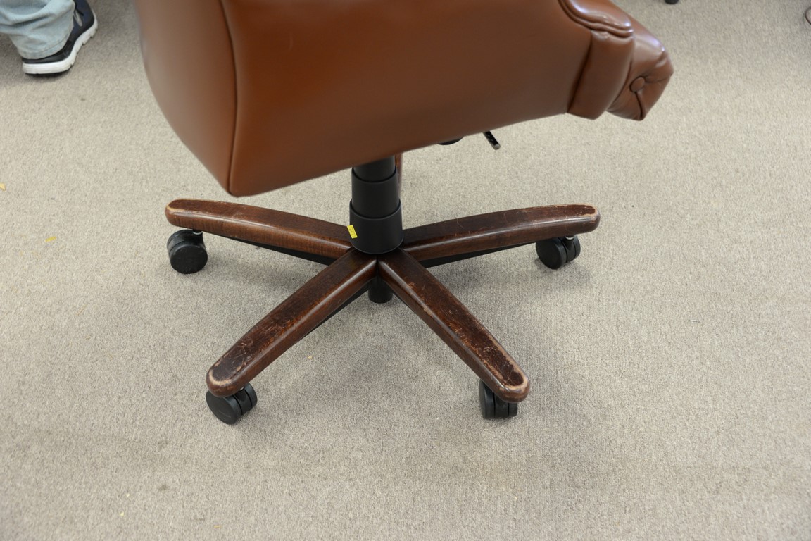Lot 248: Cabot Wrenn tufted leather armchair having high back and a swivel base.